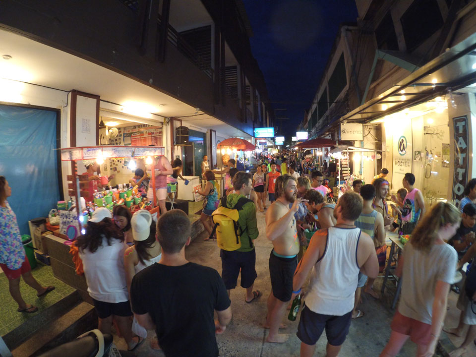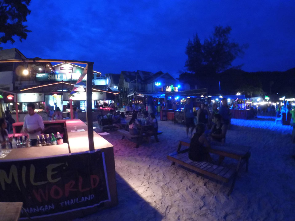 Vor einigen Monden war ich hier auf Koh Phangang – heute gab’s wieder die bekannte Vollmond Party auf Haad Rin. Erst mal stärkte ich mich mit einem guten Pad Thai (nur 50 THB) und badete am immer voller werdenden Strand.