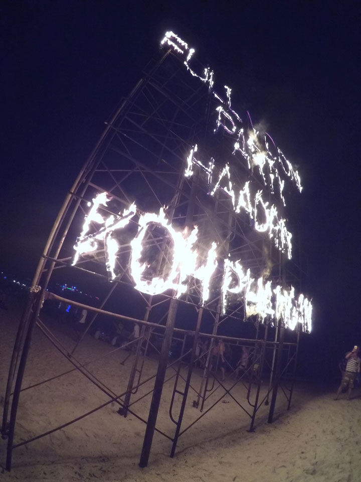 Die Party ging lang. Irgendwann verloren wir uns doch ich machte bis nach 6 weiter. Photos gibt’s da keine mehr – alle Akkus alle. Mit Goa/Psy Trance am Strand hatte ich eine echt gute Zeit. Der Sand weich, es wurde langsam hell und der harte Kern tanzte noch weiter. Ich schlief letztendlich gut ein. Tolle Party!