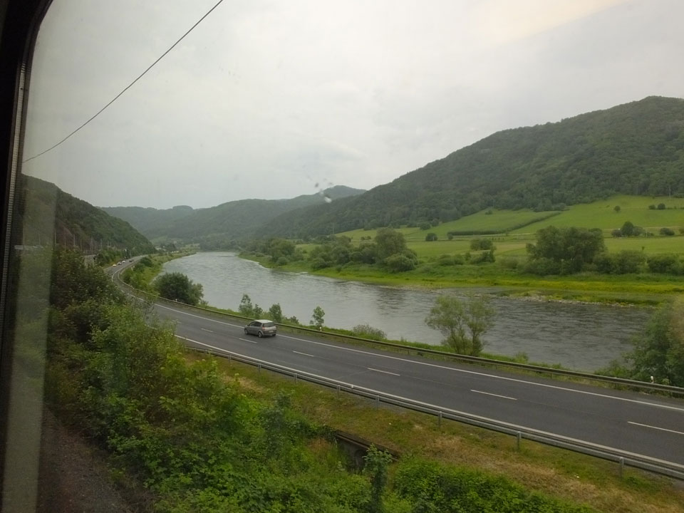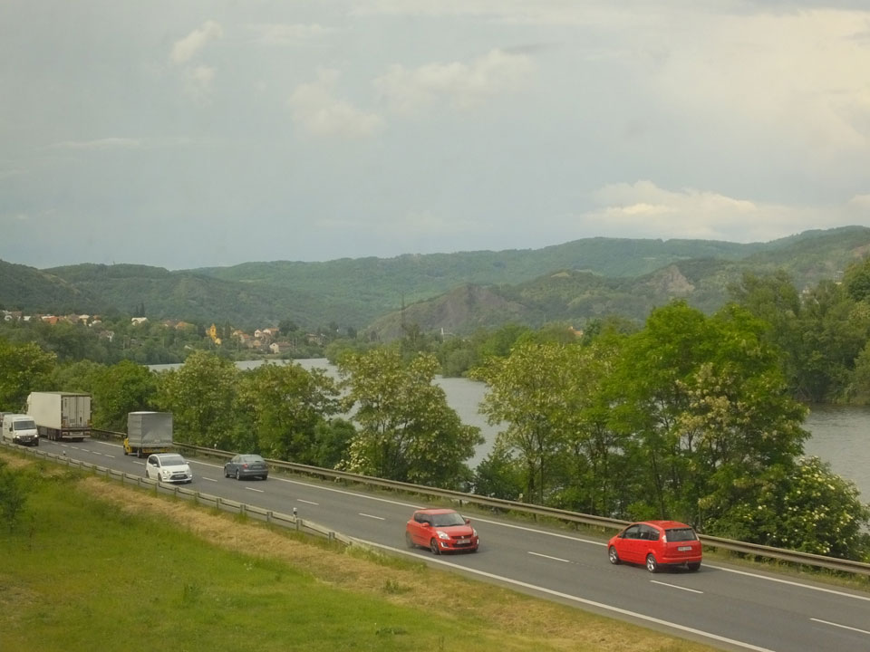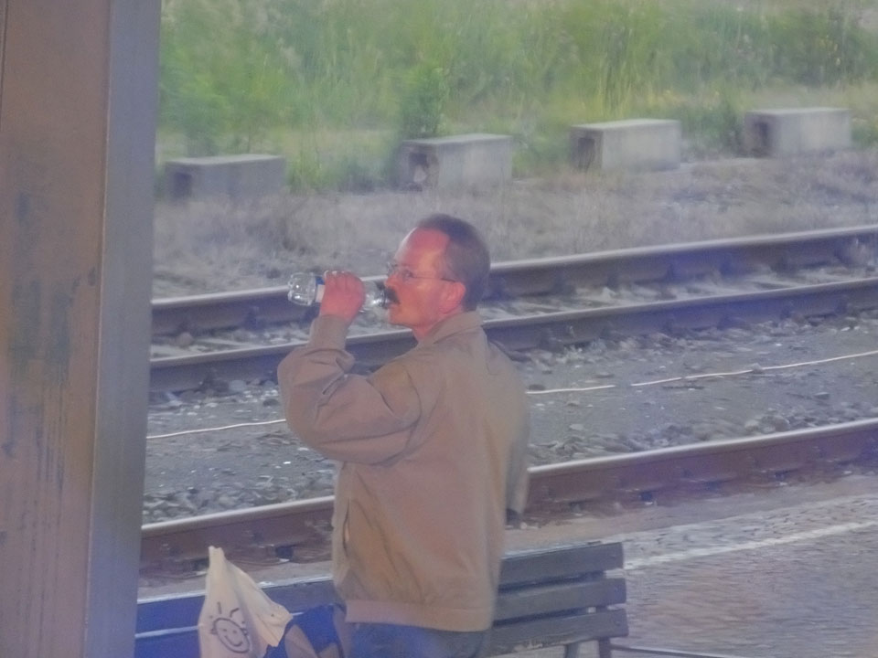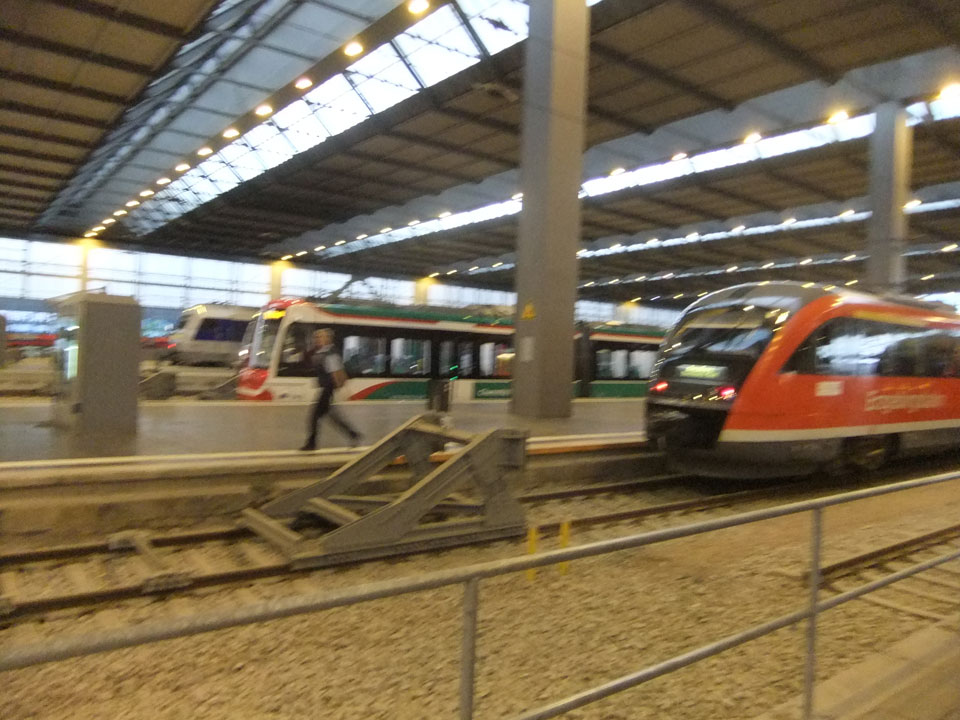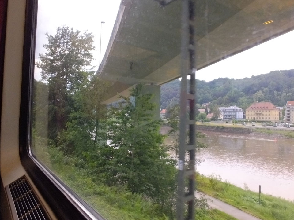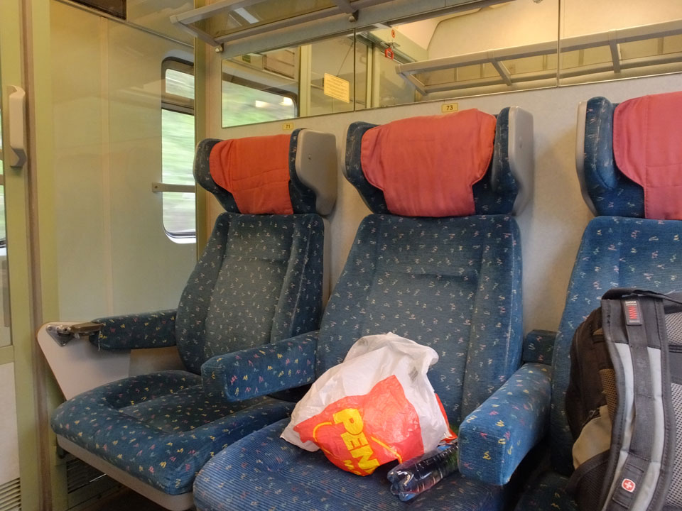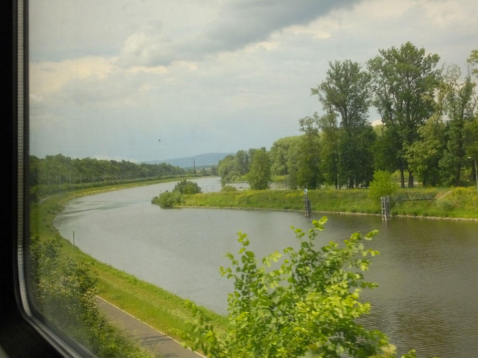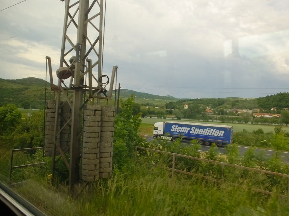 Ich tiefelte bei schönem Wetter Richtung Hauptbahnhof und kam dort gegen 14:00 an. Zehn Minuten später trudelte der Eurocity aus Budapest Richtung Hamburg ein. Wenig leer, Fensterplatz, Knipsgelegenheiten.