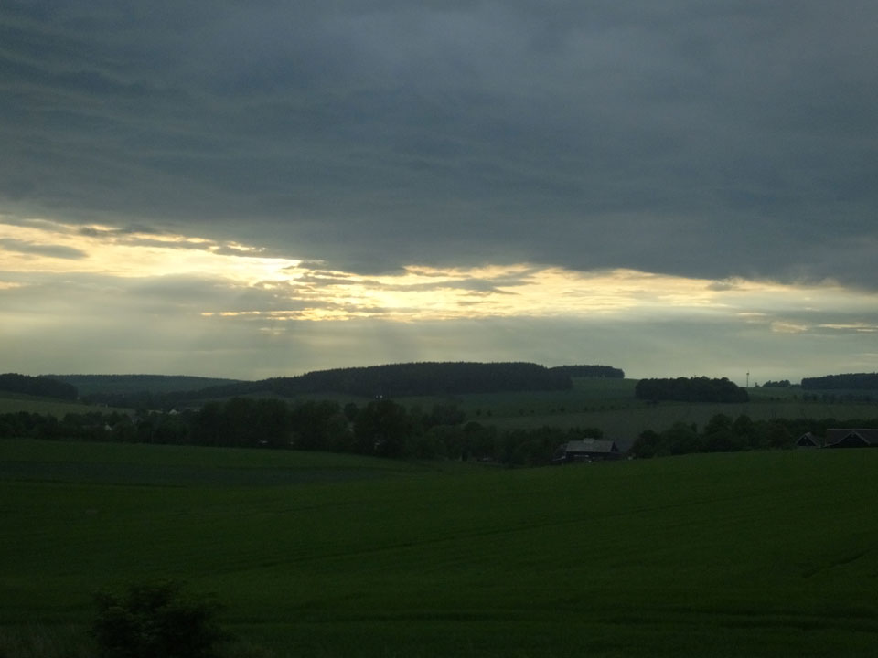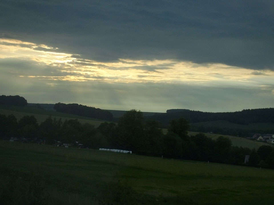 Der nächste Zug war auch noch eine Regionalbahn, die geschlagene 1 1/2h bis Chemnitz tuckerte. Gut, die Wolken und der Sonnenuntergang waren nett. Ich hatte nichts besseres zu tun, als endlos herumzuknipsen.