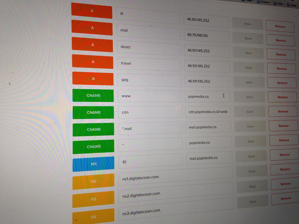 Ich setzte die A Records auf dem DNS, weil ich wohl keinen Wildcard A-Record nehmen kann, wenn ich mail auf eine andere IP weiterleite. Dann machte ich die erste pop*.de domain auch um mit den Site-Ids. Das klappte noch nicht ganz – nur die nginx Startseite kam da.