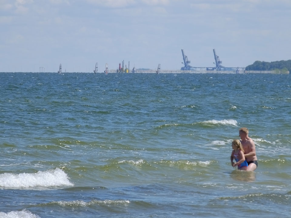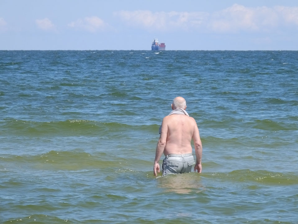 Mit Hot Dog und Cappuccino ging’s an den Strand. Die Fuji dabei knipste ich etwas herum bei herrlichem Sonnenschein. Der Sommer braucht noch etwas Zeit, nur eine handvoll Leute traute sich in’s kalte Wasser.