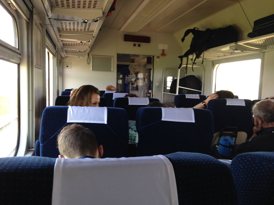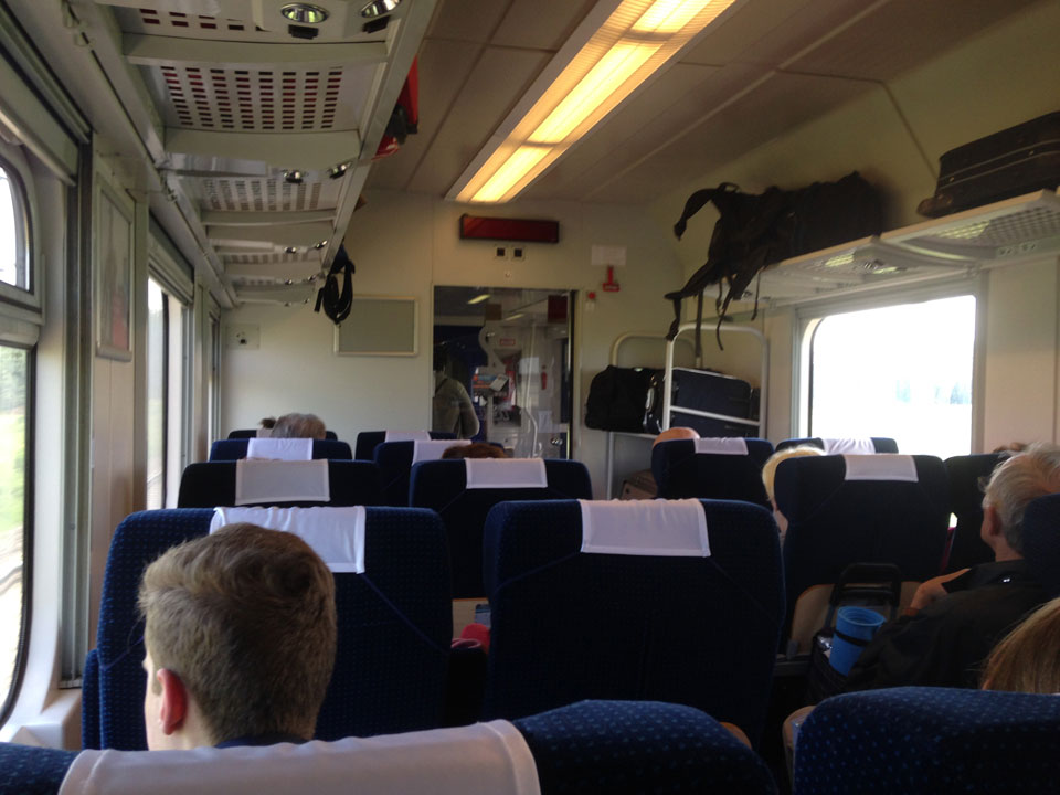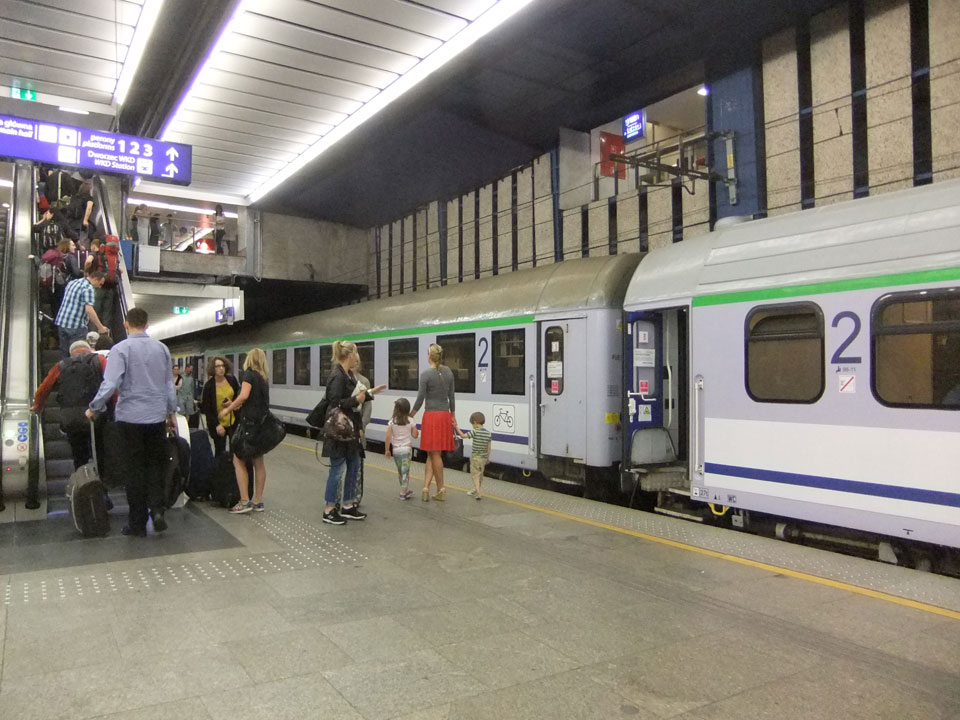 Eine Portugiesin hatte den gleichen Zug nach Warschau gebucht. Wir waren etwas zu zeitig da, weil ich recht schnell mit meinem Rucksack unterwegs bin. Dann auf der Fahrt nach Warschau holte ich ein paar Minuten Schlaf nach.