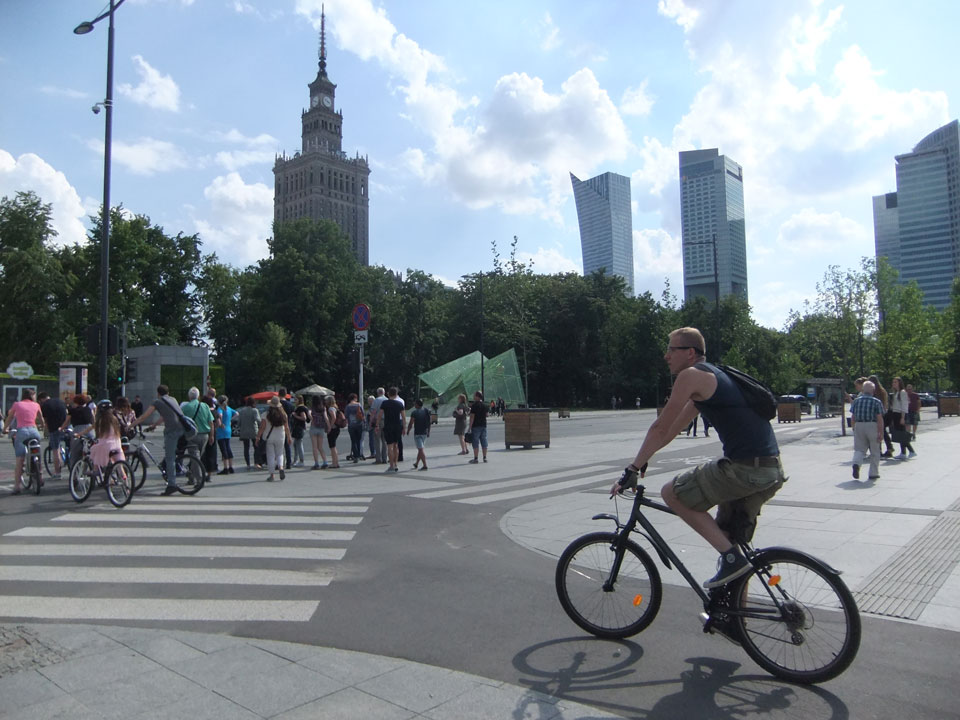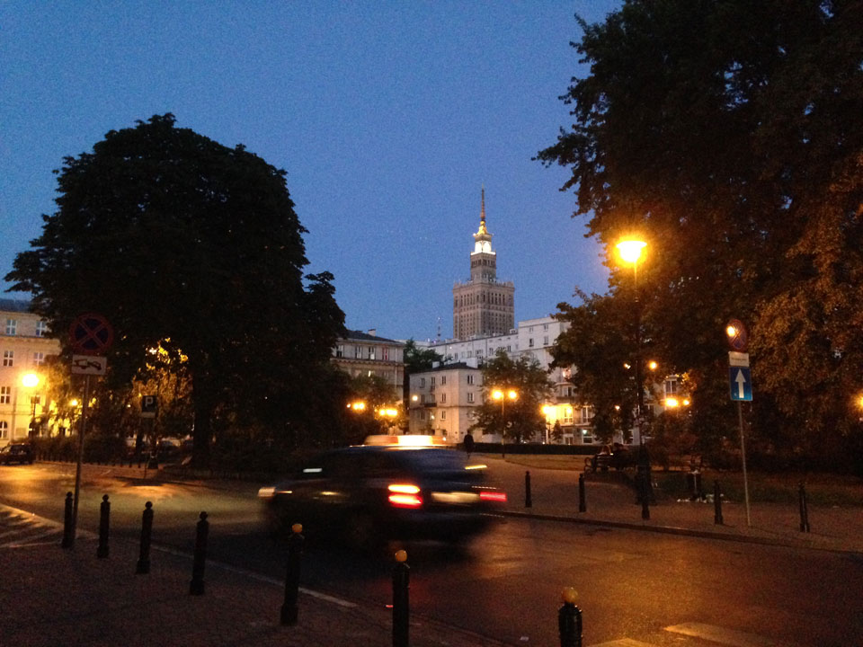 Gute und bekannte Fahrt nach Süden. In Warschau dann war’s merklich wärmer als noch oben an der Küste. Zu Fuß spazierte ich in’s Hostel und brauchte nicht mal Google Maps dafür. Sonnenschein, war und eben Warschau mit den großen Straßen.