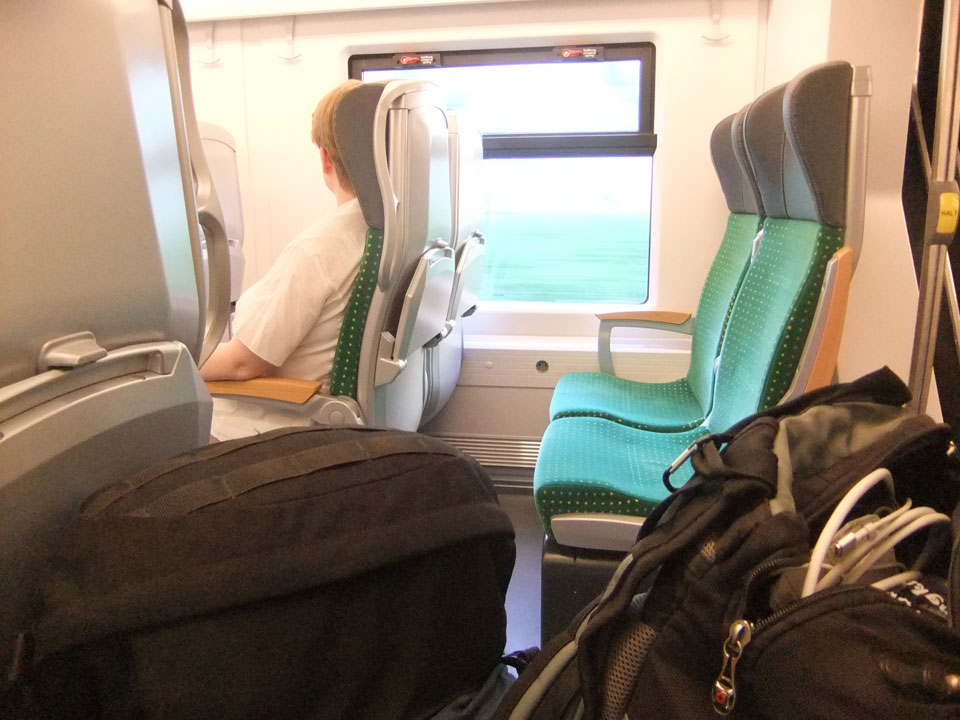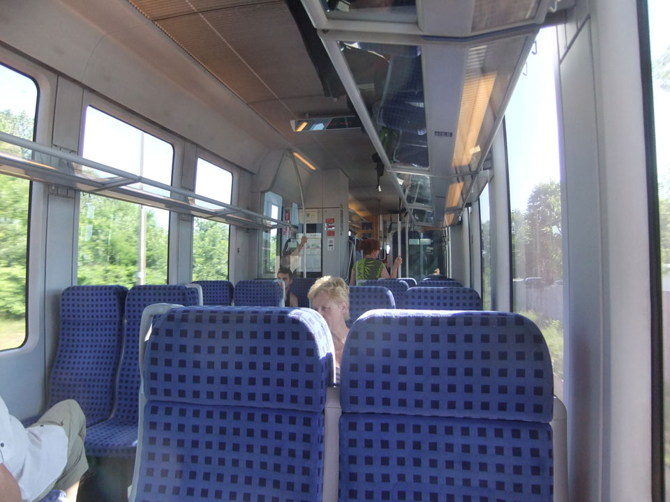 Der Zug war übervoll, Megahitze. Neben zu hohen Ticketpreisen war die Klimaanlage das nächste Problem. Fenster kann man im Zug nicht öffnen, die Klimaanlage ist unterdimensioniert und so schwitze ich, wie alle anderen irre in dem Saunawagon. An der Grenze zu Polen hatte ich schließlich einen richtigen Sitzplatz – bis Dresden war dann alles einfacher.