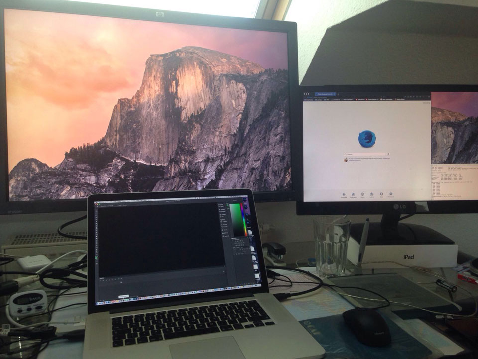 Echt gigantisch großer Mnitor, der irgendwie auch Hitze oder so abstrahlt. Ich räumte das Teil schlielich zur Seite und habe jetzt Full HD und QHD neben dem Retina-Display am Mac hängen. Übertreiben könnte ich’s mit einem weiteren iPad Mini und Duet aber das ließ ich.