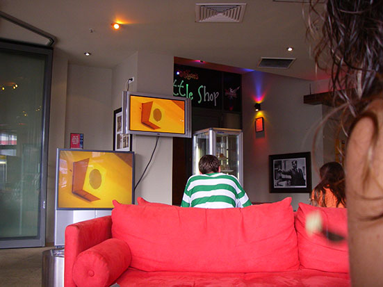 Morgens fuhren wir mit dem Taxi zu Rusty’s. Im Gilligans wurde dann doch das Frühstück bestellt, mehr Appetit auf etwas Fruchtsalat und Café. Im Café haben sie neue Plasma TVs. Neben dem Rückprojektsteil gibt es gerade einen Overkill an Screens. Überall Musikvdeos, mag ich ja.