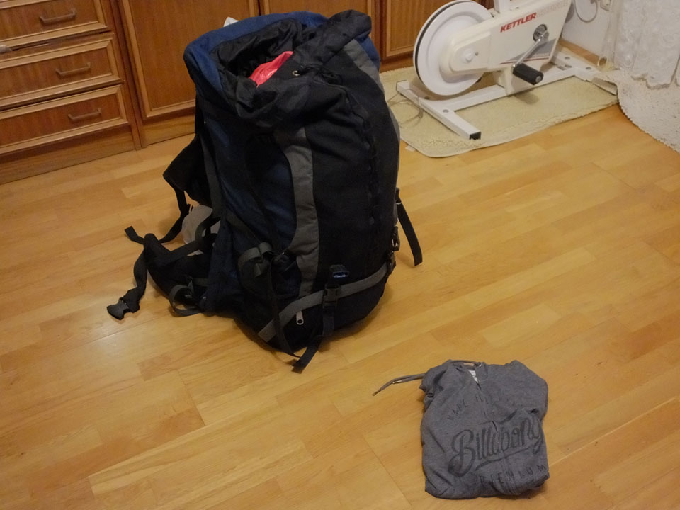 Ansonsten hatte ich heute nur mit restlichen Steuersachen und Packen zu tun. Mein Rucksack wird so schwer wie selten. Wieder einmal passte alles nur mit Mühe.