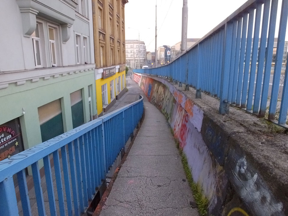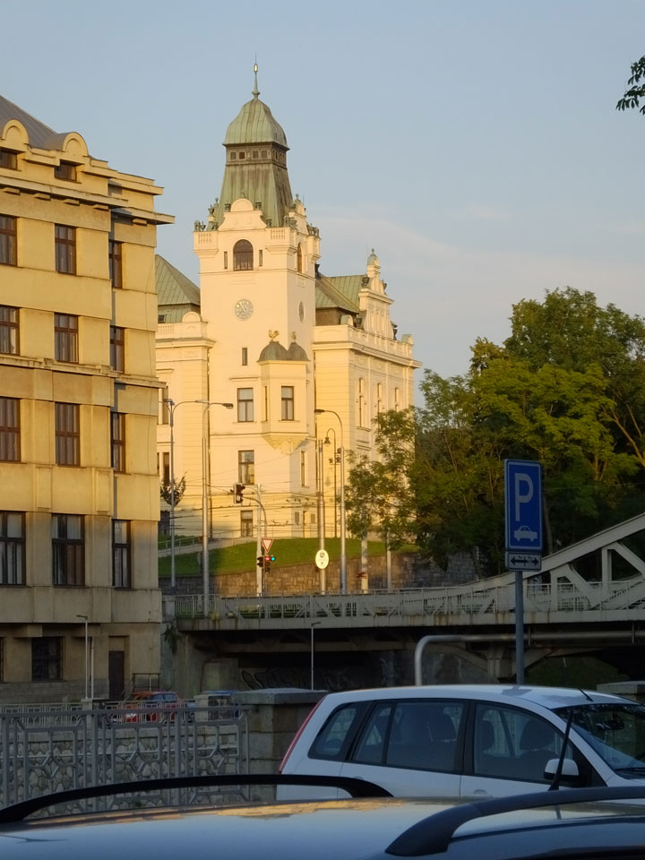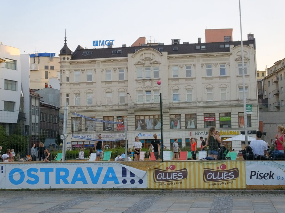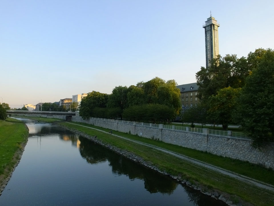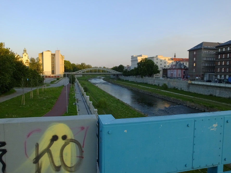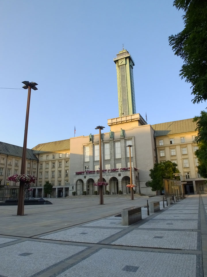 So drehte ich meine Runde und ging zur neuen Stadt-Halle mit dem Aussichtsturm. Der hatte wohl auch schon geschlossen. Über den Fluss, entlang und wieder zurück über den Marktplatz usw.. Alles ganz nett, nur halt zu leer. Ostrava hat einige Inline-Skater und ist halt ruhig. Neben bissel Straßenlärm vereinzelter Autos hört man wenig. Auch mal nett.