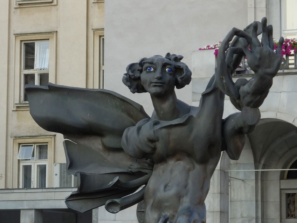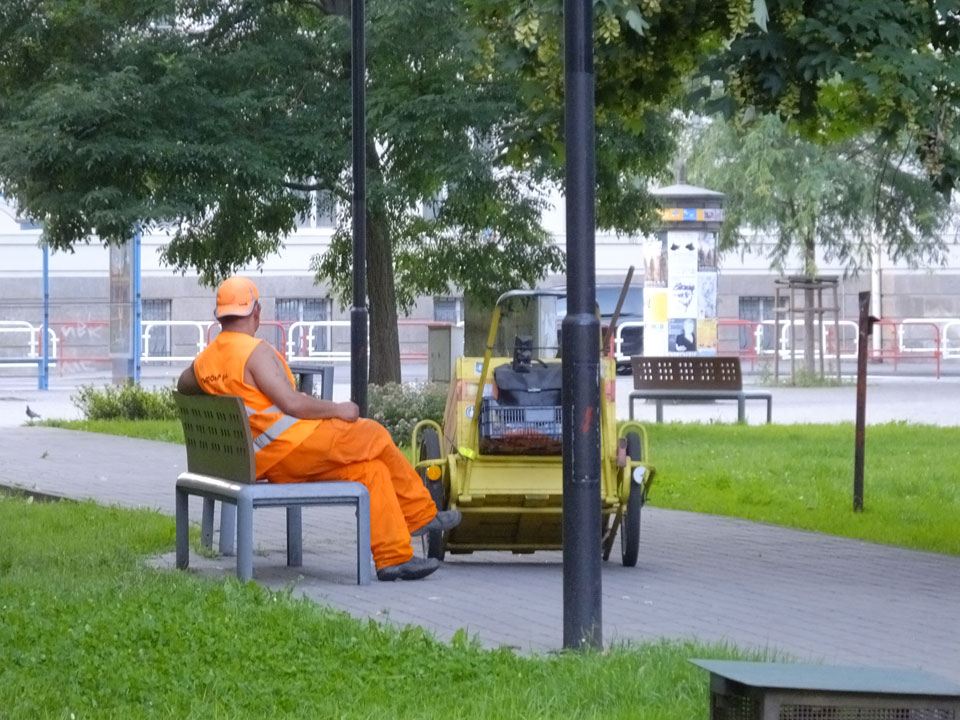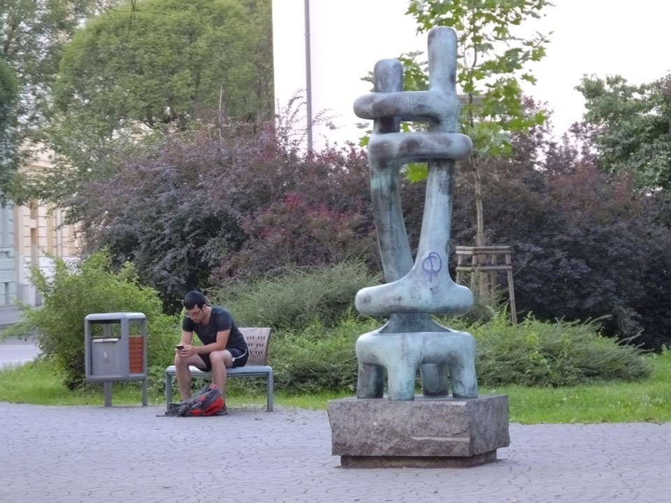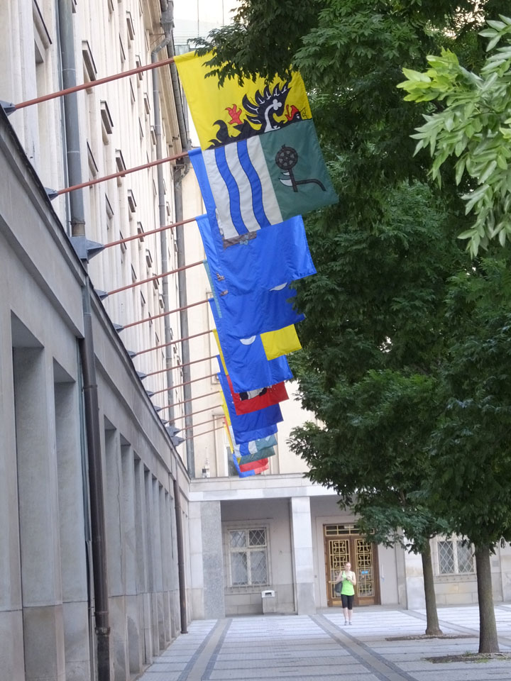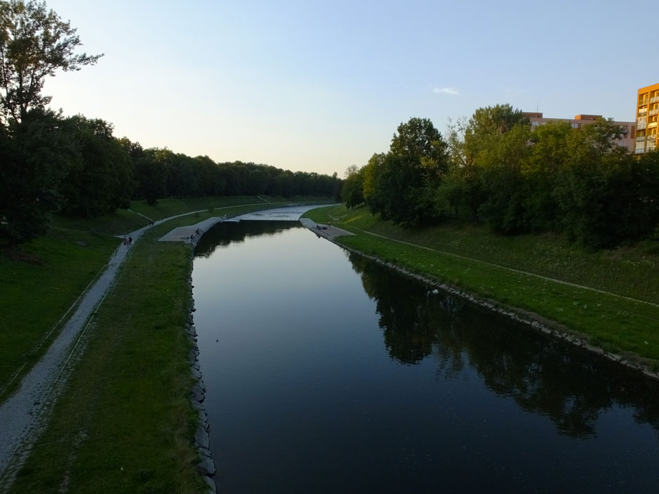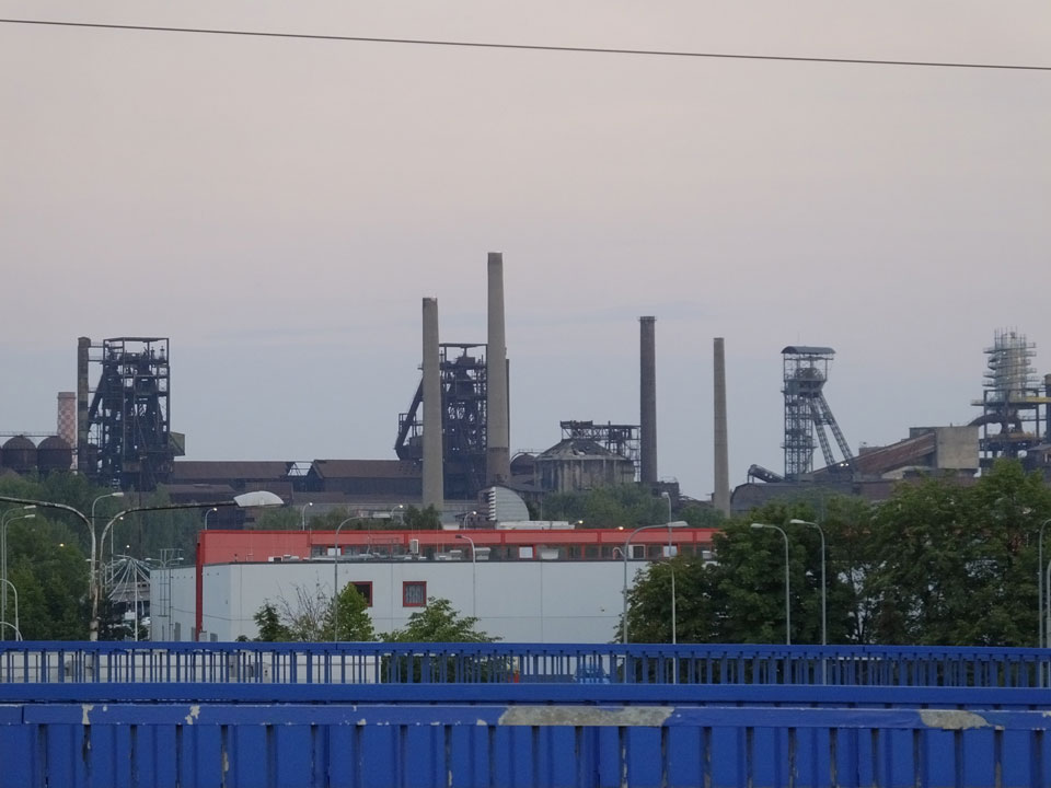 So drehte ich meine Runde und ging zur neuen Stadt-Halle mit dem Aussichtsturm. Der hatte wohl auch schon geschlossen. Über den Fluss, entlang und wieder zurück über den Marktplatz usw.. Alles ganz nett, nur halt zu leer. Ostrava hat einige Inline-Skater und ist halt ruhig. Neben bissel Straßenlärm vereinzelter Autos hört man wenig. Auch mal nett.