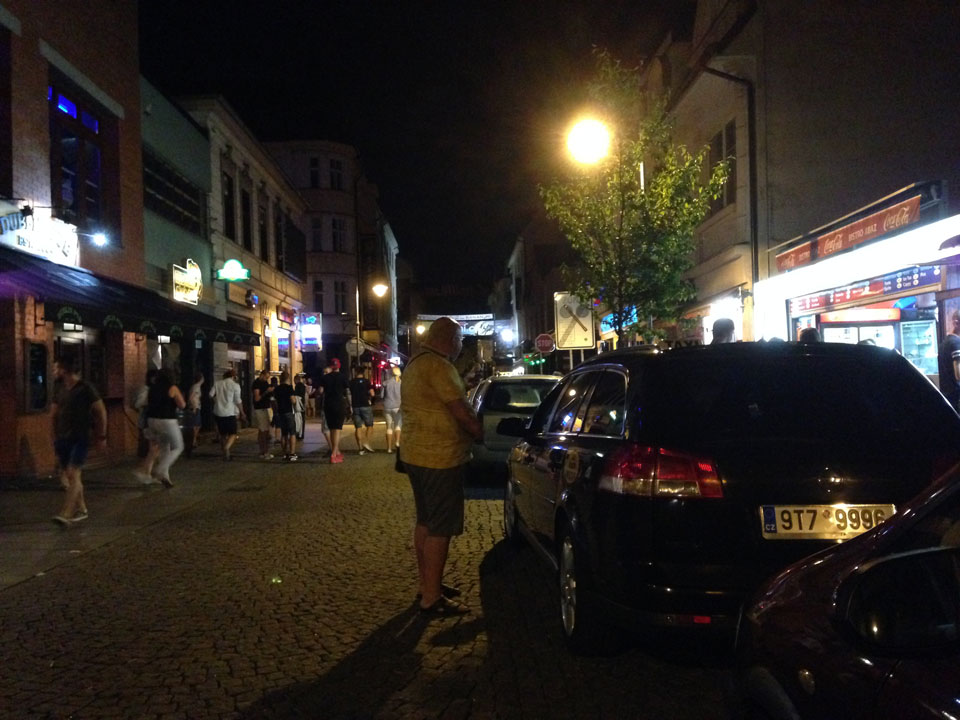 Bis weit nach 1 dann am Mac wegen Photos. Ich ging aus und da war auf der Stodolni doch noch was los. Die Bars hatten geöffnet, einige Leute jetzt auf der Straße. Ich ging zuerst in den Irish Pub, dann in eine Mexikanische Sache, dann noch in eine andere. Auf der Toilette saß in der Ecke ein Typ, der vor sich sein Gebröseltes hatte. Sein Kumpel fing ein Gespräch mit mir an, war Deutsch/Englisch-Lehrer und so redete ich deutsch. Um 4 ist in den meisten Bars Schluss. Der After-Hour Place ist die „Blaue Nudel“ – „Modrá Nudel“. So war’s dann auch und ich blieb bis in den Morgen da. Man müsste nochmal 20 sein, ha.
