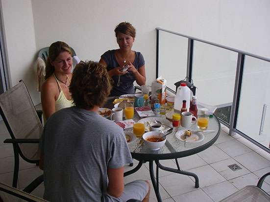 Wieder ein schönes Frühstück zu viert. Mit nur zwei Betten und mir alleine in einem, ists’s in der Nacht etwas eng. Alles locker für Backpacker.