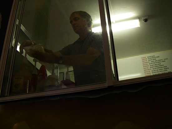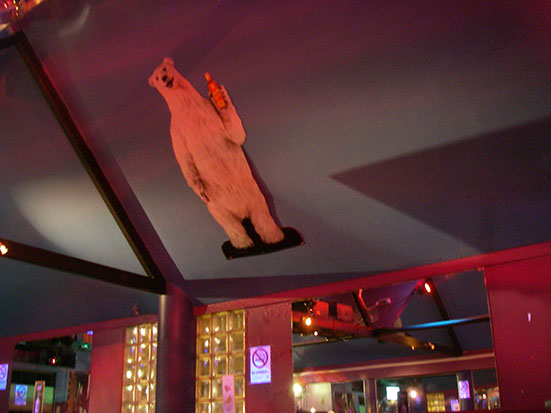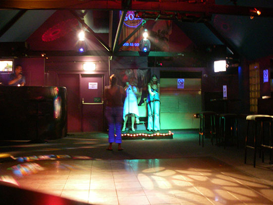 Die Mädels trafen sich zum Abschied mit Schweizern. Der Amerikaner und ich schauten etwas in der Gegend herum. Vor der MyBar und ein paar anderen Clubs, wurde gerade jemand im Krankenwagen abtransportiert. In der Mybar war magetote Hose. Diese Karaoka Bar macht etwas Werbung. Das haben sie meganötig. Die einzigen Gäste waren 3 Mädchen, di wohl irgendwas feierten; Geburtstag oder so. Dann nur noch wir zwei. Ich holte ein paar Bier und hielt die Szene fest.