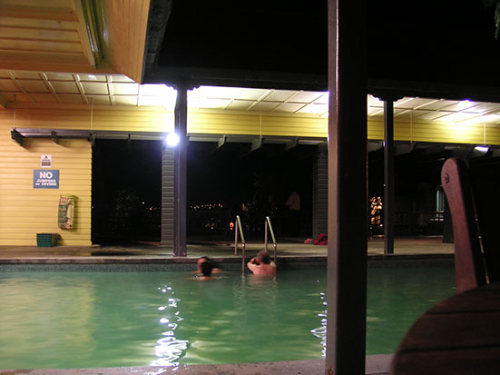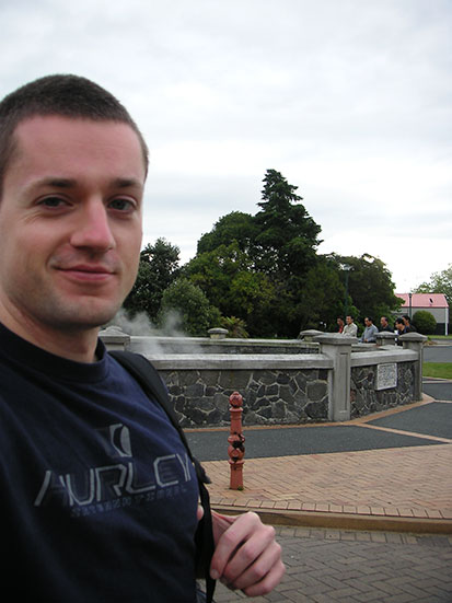 Es war bereits dunkel und da bin ich ein Stückchen weiter ins Polynesian Spa. Meine Badeachen hatte ich mit. Die ganzen Pools waren unterschiedlich heiß und salzig mit verschiedenen Mineralien. Jeder Pool war für etwas anderes „gut“ – gegen Muskelverspannungen oder sonstwas. Ich badete also im Dunkeln in heißem Wasser direkt am See. Von dort überblickt man den Uferstreifen mit weiteren kleinen Orten mit dem Vulkan im Hintergund. Überall fand Feuerwerk statt. Man sah die Raketen aufsteigen und viele Sekunden später kam der Sound an. Einfach wunderschön!