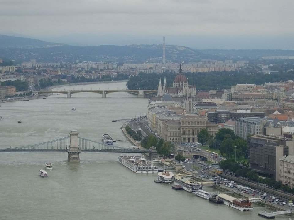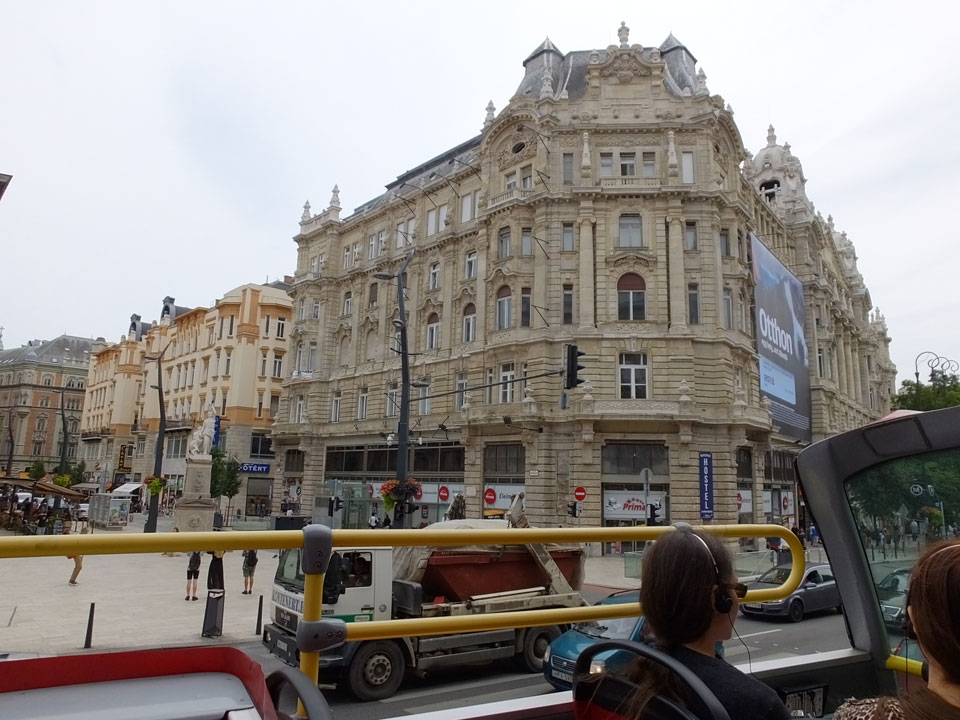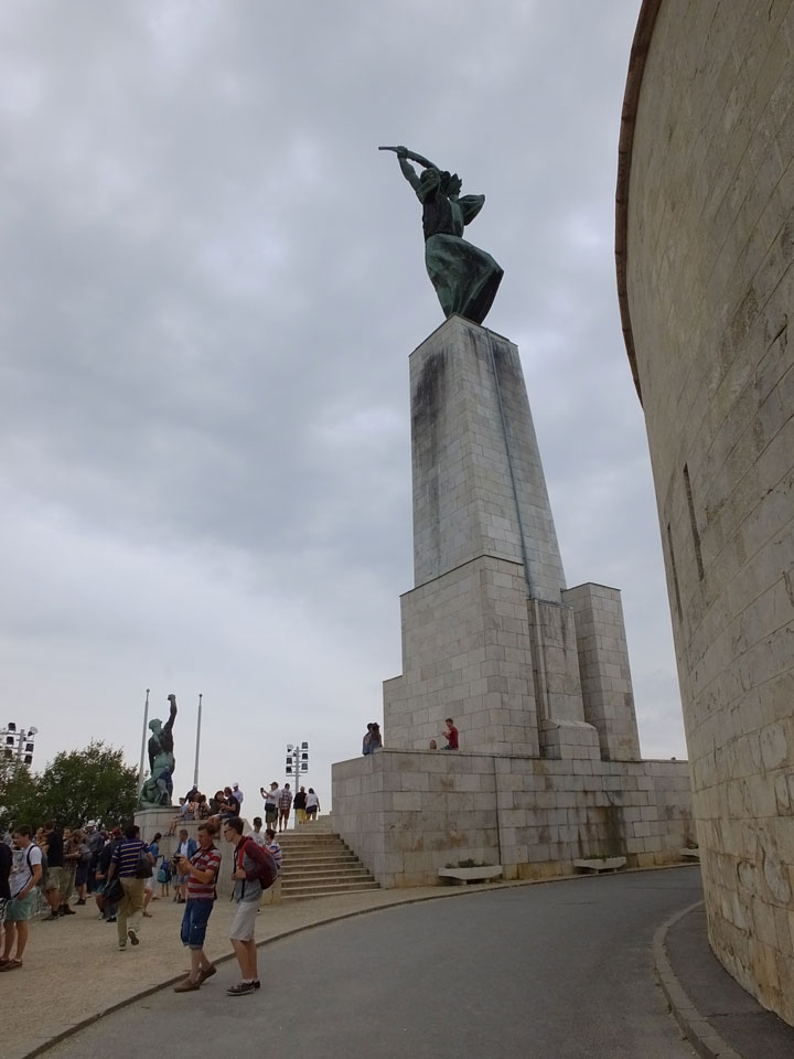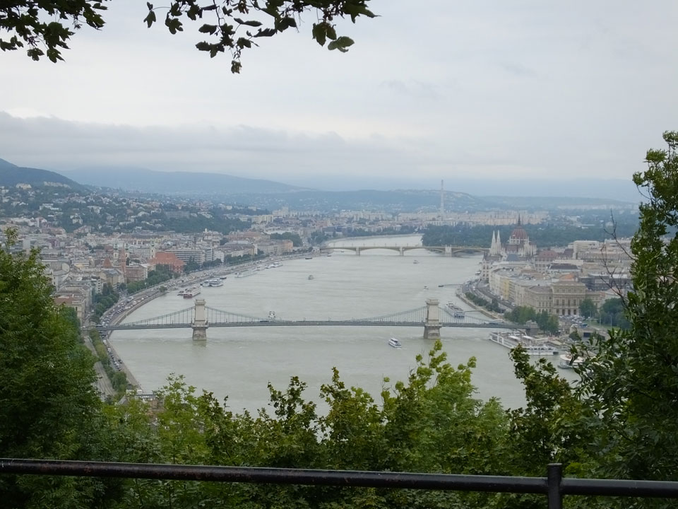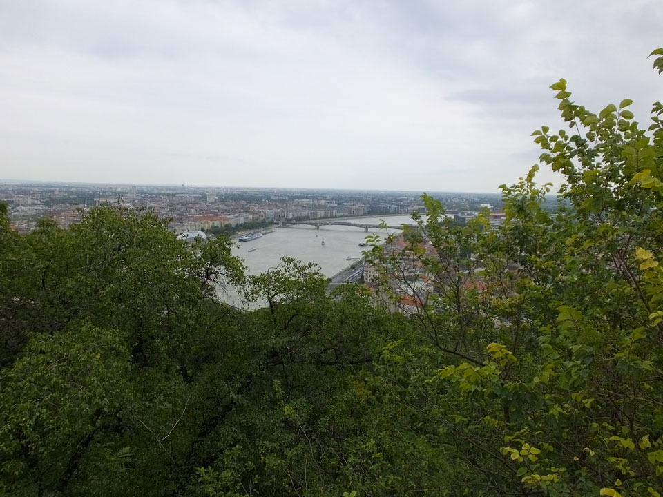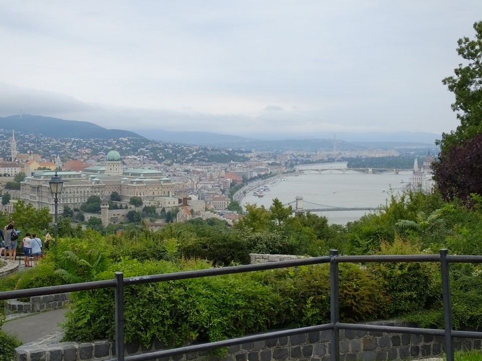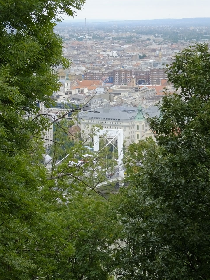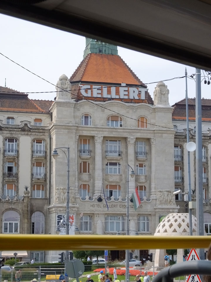 Vorbei an gestrigen Attraktionen kamen wir schließlich Nähe des Westbahnhofs an einen Umstiegspunkt auf die rote Route. Ichhatte mcih erst etwas in der Haltestelle geirrt, dann ging’s aber los. Um die 3 Hop On Hop Off Firmen fahren in Budapest. Wir fuhren auf die Citadelle. Da oben in 235m Höhe war es noch frischer. Ich knipste ein paar Bilder und wollte dann doch nicht groß herumlaufen. Mein Haus und die Kirche sah ich aber da oben, der Balkon ist auf der anderen Seite.