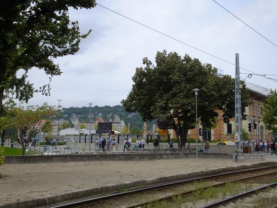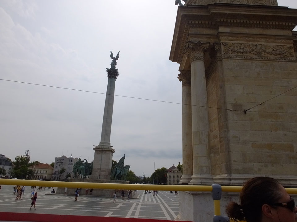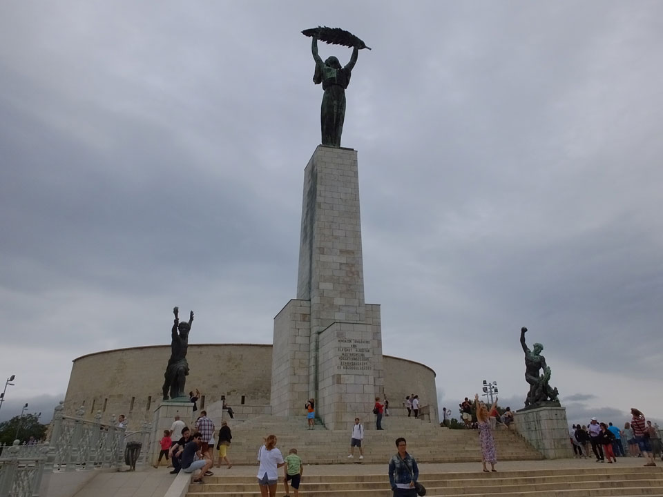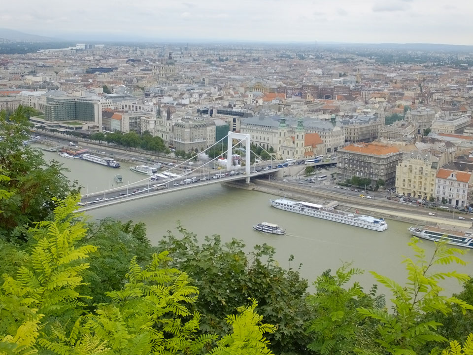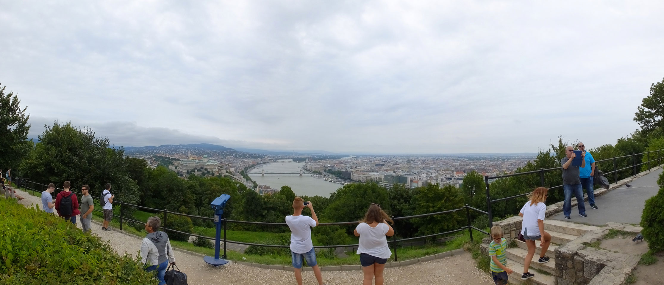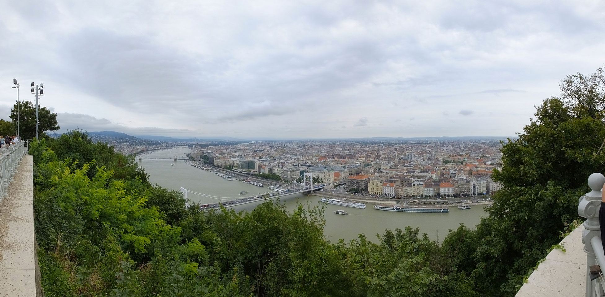 Vorbei an gestrigen Attraktionen kamen wir schließlich Nähe des Westbahnhofs an einen Umstiegspunkt auf die rote Route. Ichhatte mcih erst etwas in der Haltestelle geirrt, dann ging’s aber los. Um die 3 Hop On Hop Off Firmen fahren in Budapest. Wir fuhren auf die Citadelle. Da oben in 235m Höhe war es noch frischer. Ich knipste ein paar Bilder und wollte dann doch nicht groß herumlaufen. Mein Haus und die Kirche sah ich aber da oben, der Balkon ist auf der anderen Seite.