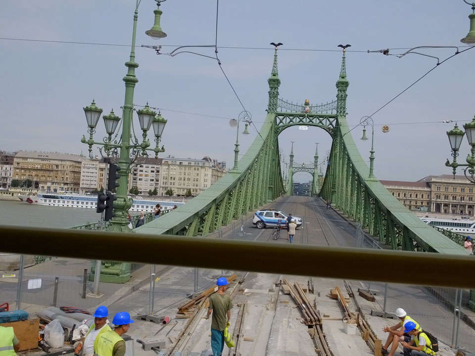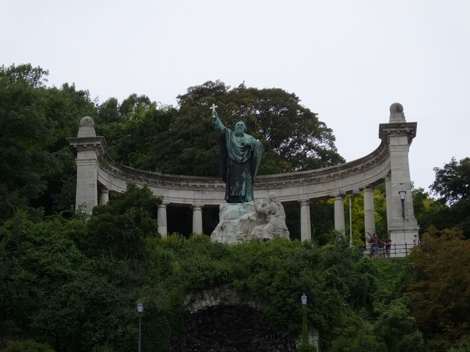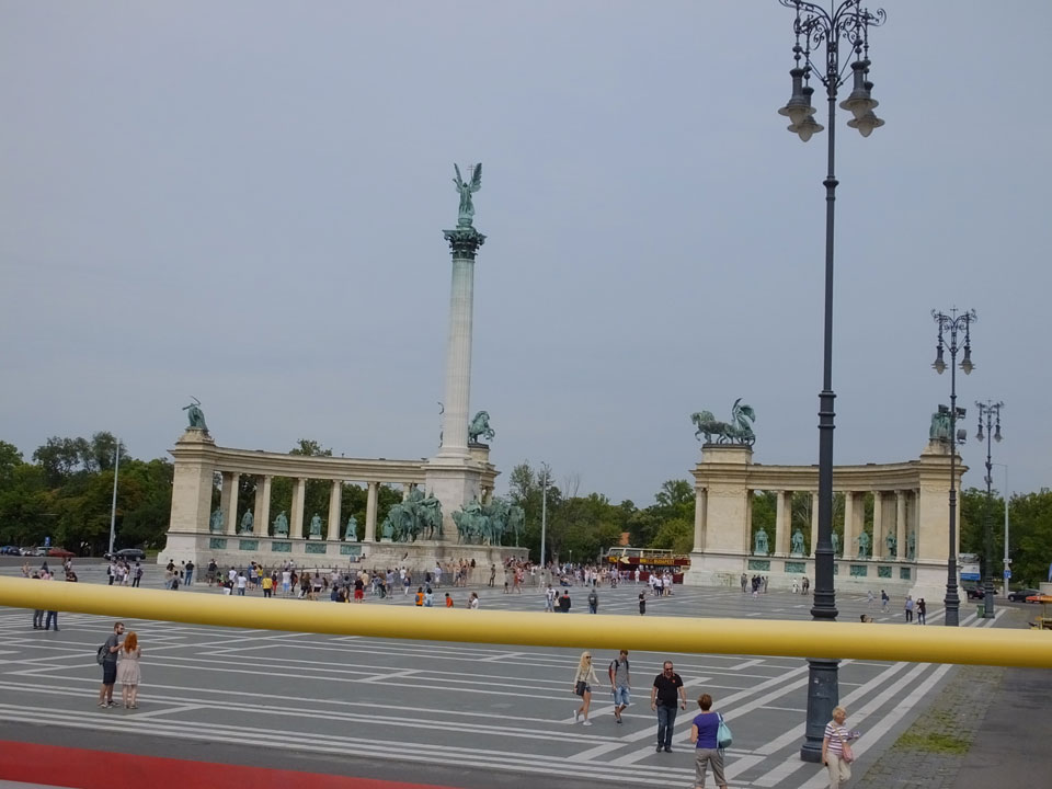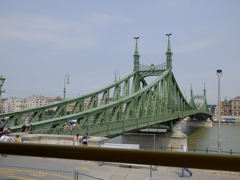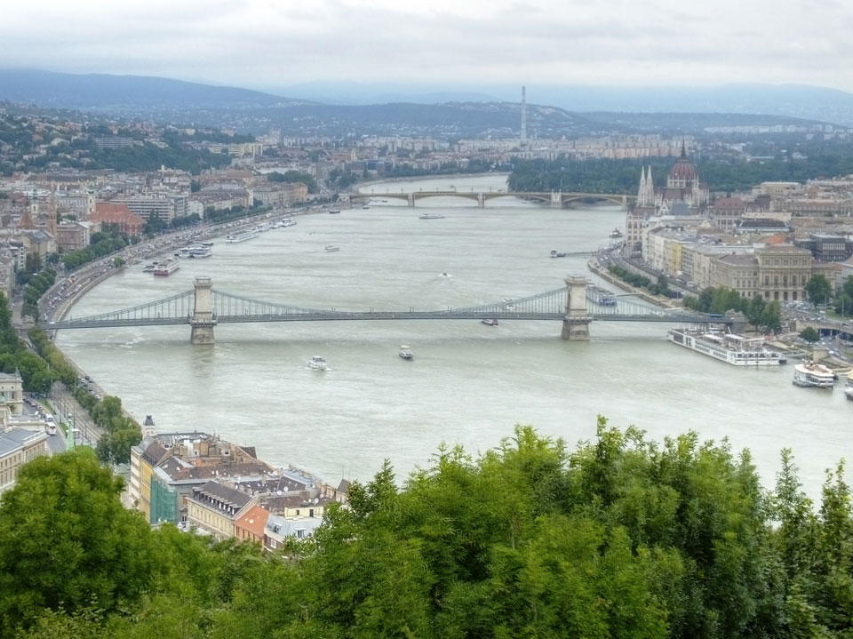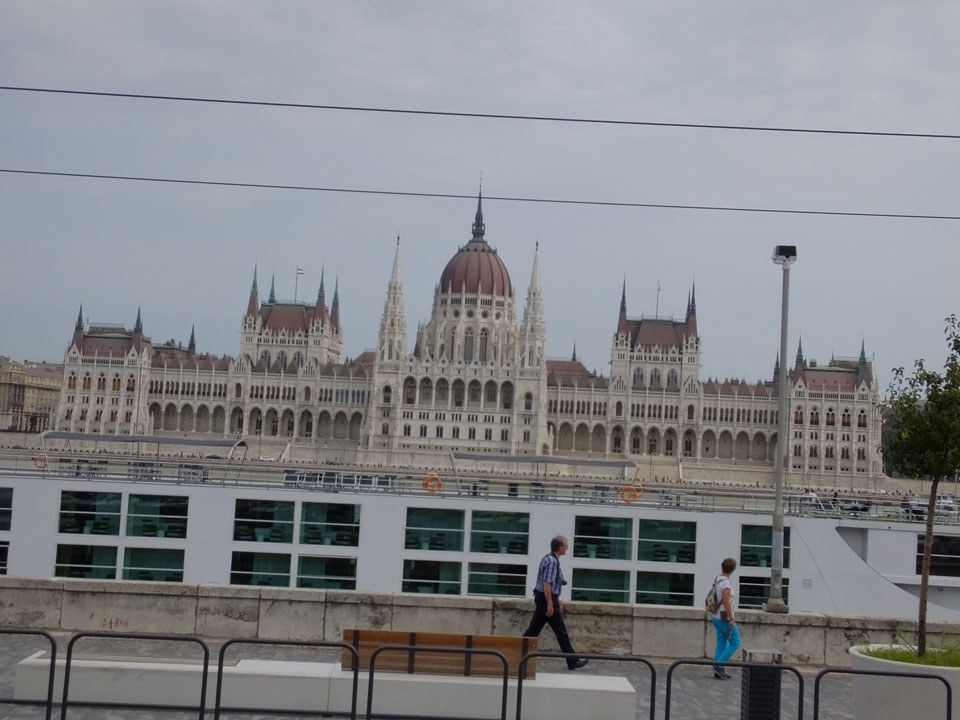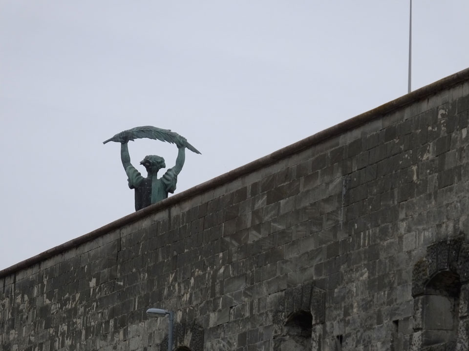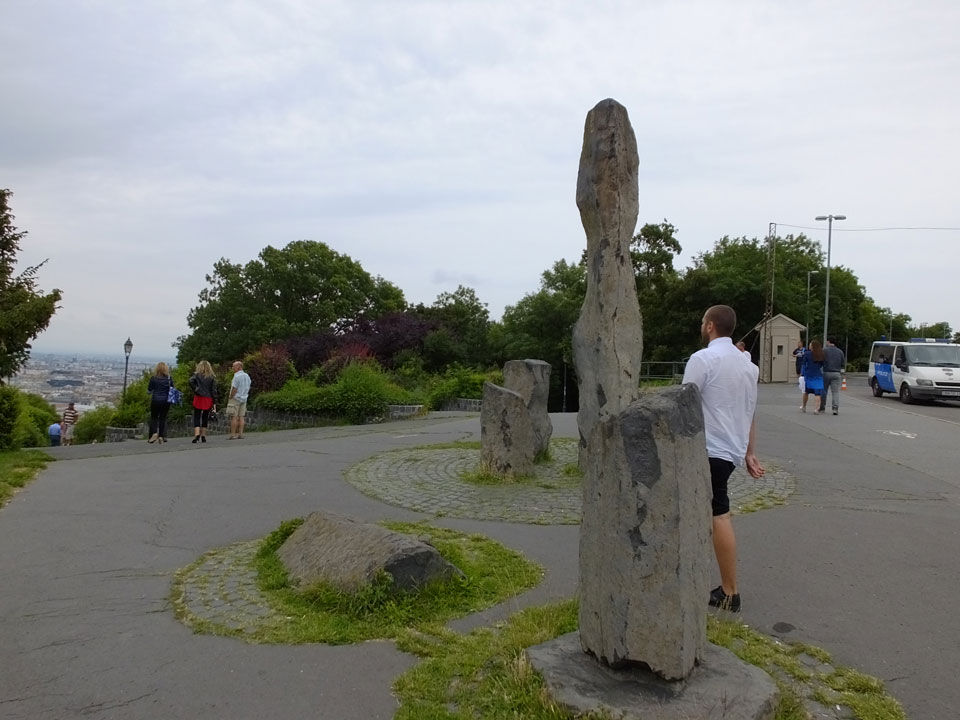 Vorbei an gestrigen Attraktionen kamen wir schließlich Nähe des Westbahnhofs an einen Umstiegspunkt auf die rote Route. Ichhatte mcih erst etwas in der Haltestelle geirrt, dann ging’s aber los. Um die 3 Hop On Hop Off Firmen fahren in Budapest. Wir fuhren auf die Citadelle. Da oben in 235m Höhe war es noch frischer. Ich knipste ein paar Bilder und wollte dann doch nicht groß herumlaufen. Mein Haus und die Kirche sah ich aber da oben, der Balkon ist auf der anderen Seite.