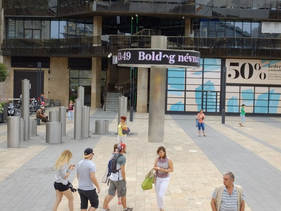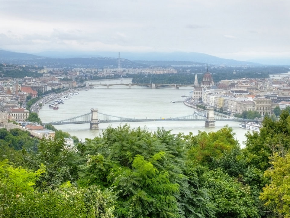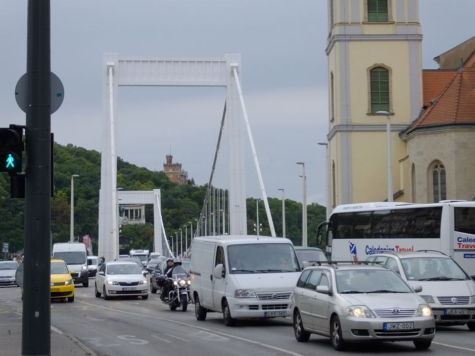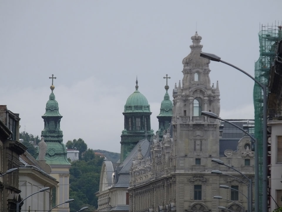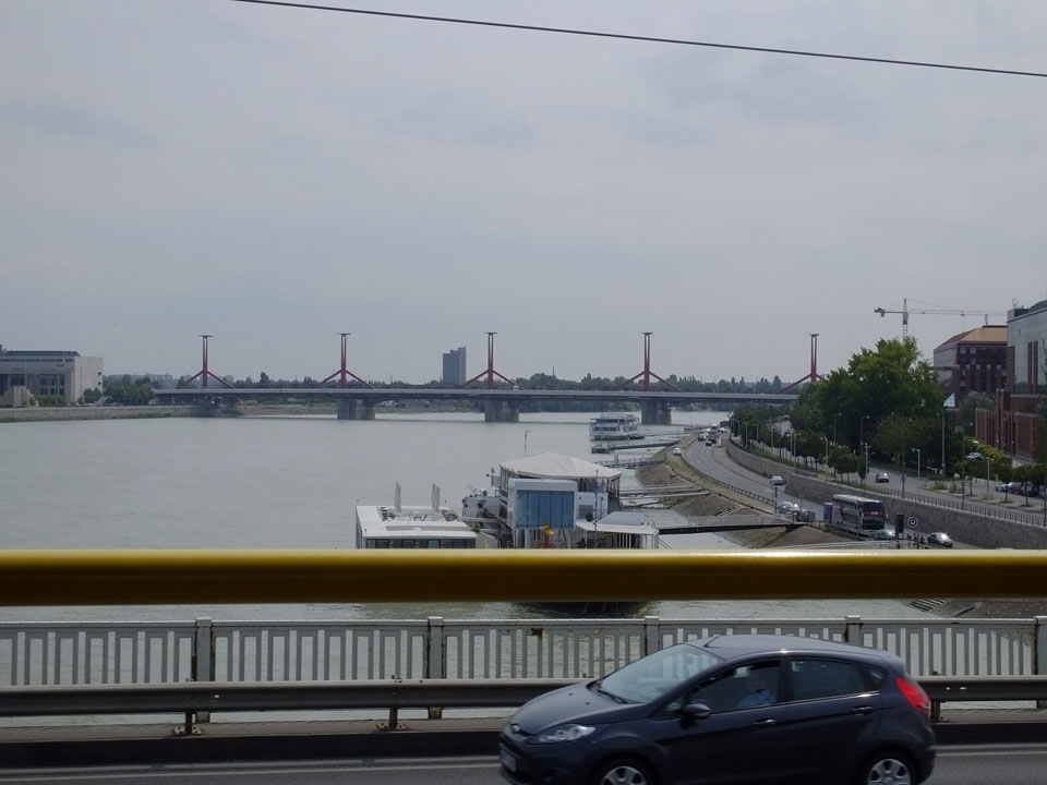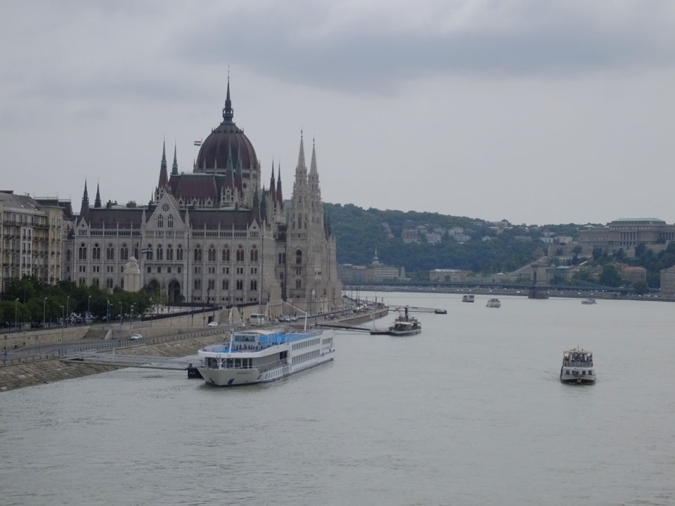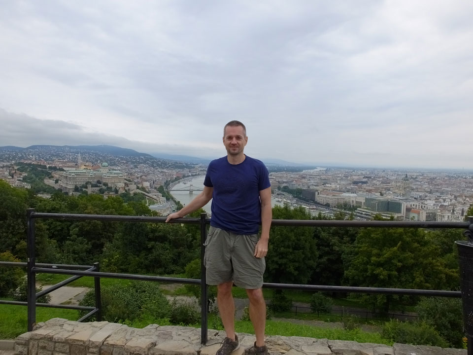 Vorbei an gestrigen Attraktionen kamen wir schließlich Nähe des Westbahnhofs an einen Umstiegspunkt auf die rote Route. Ichhatte mcih erst etwas in der Haltestelle geirrt, dann ging’s aber los. Um die 3 Hop On Hop Off Firmen fahren in Budapest. Wir fuhren auf die Citadelle. Da oben in 235m Höhe war es noch frischer. Ich knipste ein paar Bilder und wollte dann doch nicht groß herumlaufen. Mein Haus und die Kirche sah ich aber da oben, der Balkon ist auf der anderen Seite.