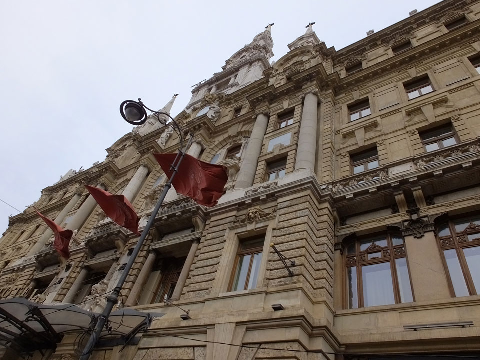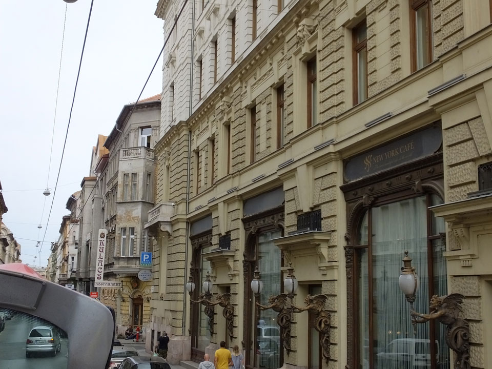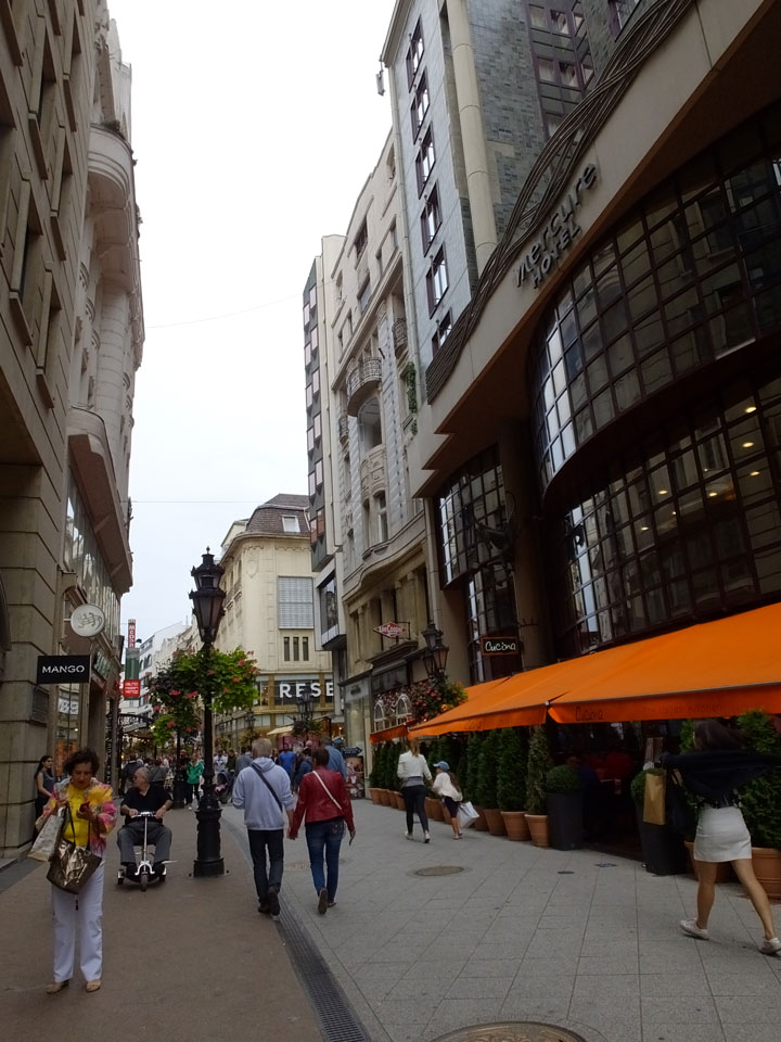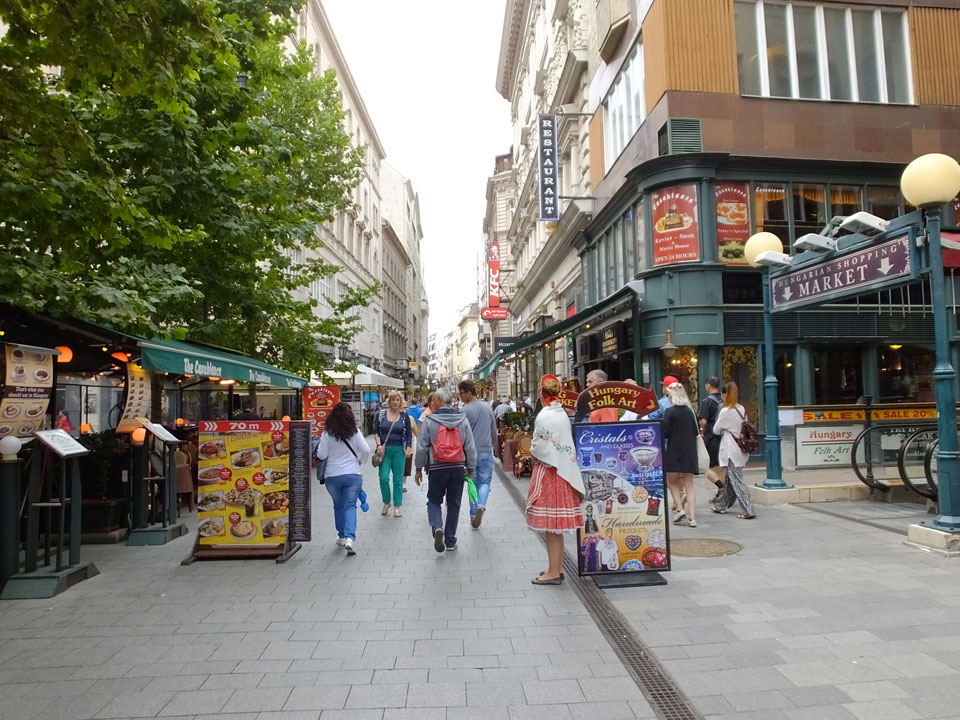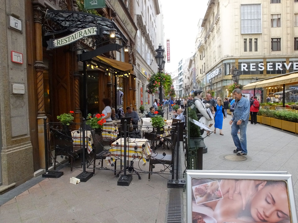 Wieder runter und raus bei der Buddha Bar. Die Váci utca runter kamen wir in’s touristische Zentrum. Nach einigen Souvenirläden fand meine Mutter einen Kalender. Ein normales Restaurant zu finden, gestaltete sich auch schwierig. Schließlich fanden wir ein Café „Patmos“. Das war eine Art religiöser Buchladen aber irgendwie auch griechisch. Hauptsache war, dass da auch normale Ungarn aßen.