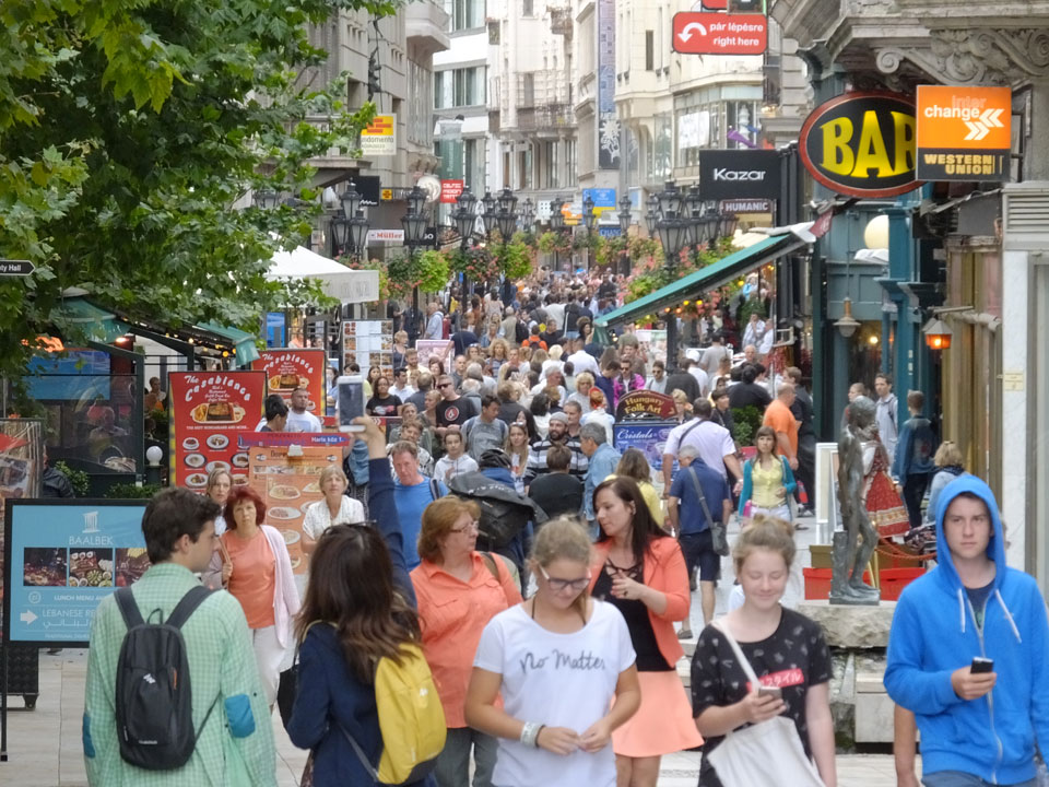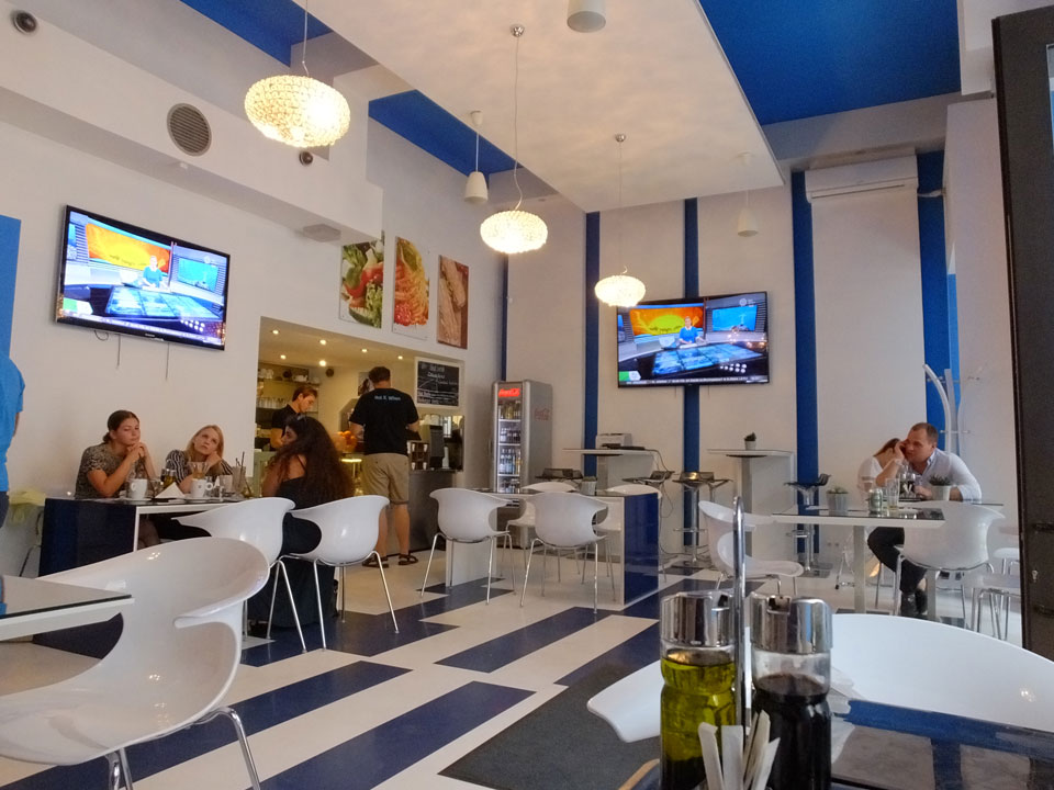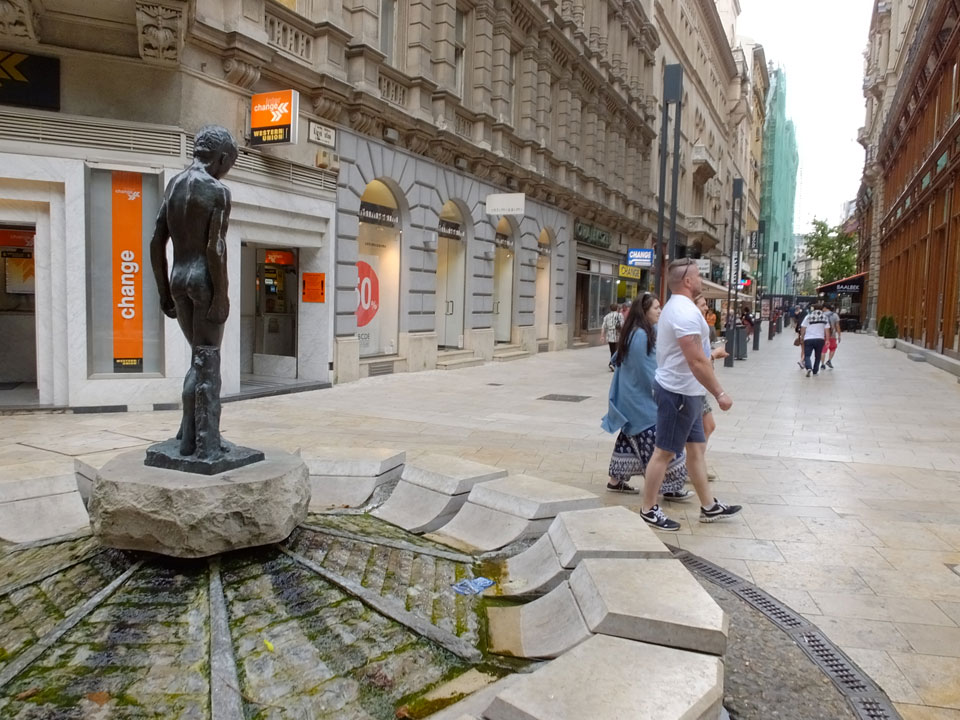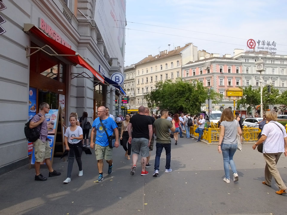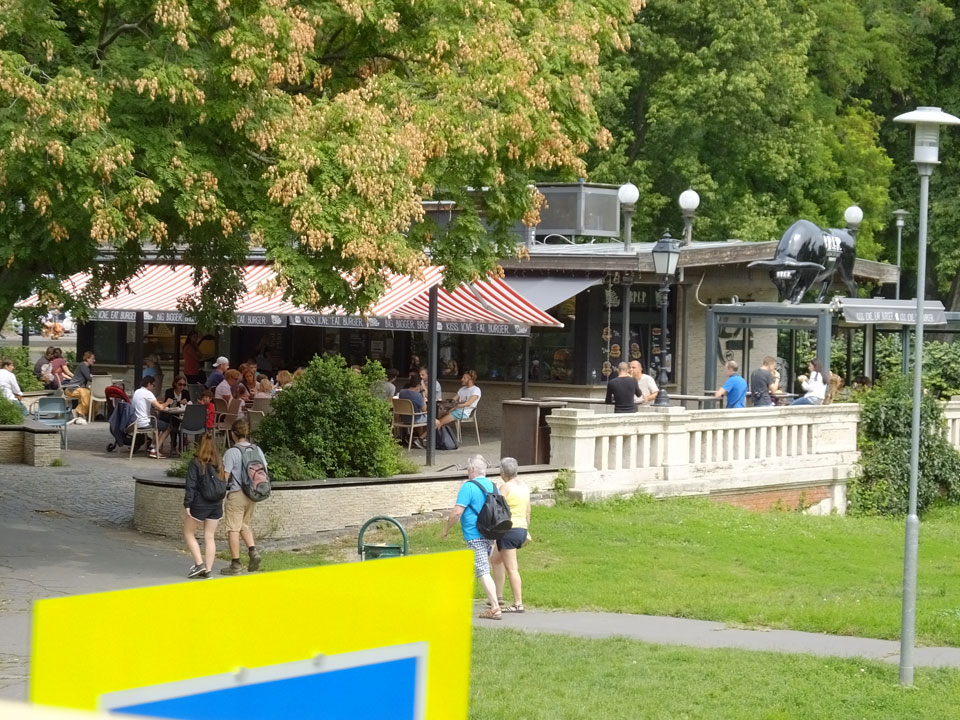 Wieder runter und raus bei der Buddha Bar. Die Váci utca runter kamen wir in’s touristische Zentrum. Nach einigen Souvenirläden fand meine Mutter einen Kalender. Ein normales Restaurant zu finden, gestaltete sich auch schwierig. Schließlich fanden wir ein Café „Patmos“. Das war eine Art religiöser Buchladen aber irgendwie auch griechisch. Hauptsache war, dass da auch normale Ungarn aßen.