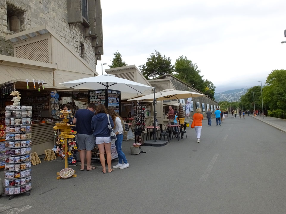 Der Wetterbericht hatte doch recht. Stark bewölkt und frischer. Wir stiegen um die Ecke wieder in den Touristenbus. Das 48h Ticket war nun erst 24h benutzt. An der ersten Station, der Unicum Fabrik, stiegen wir aus, wollten das Museum checken.