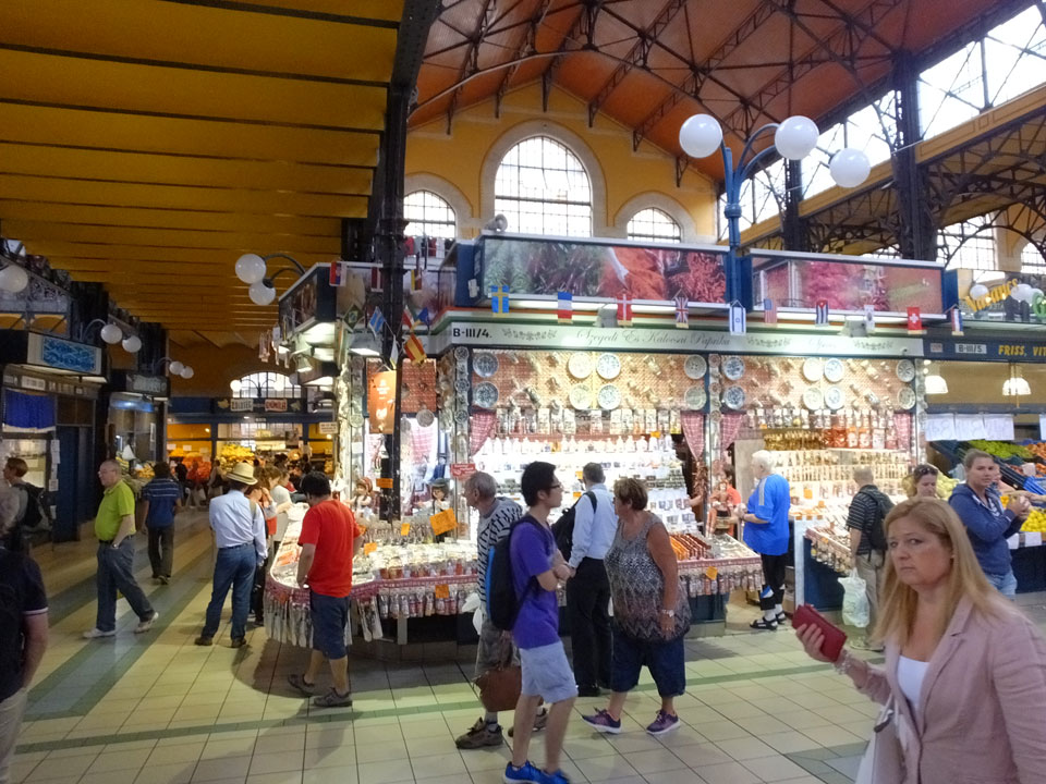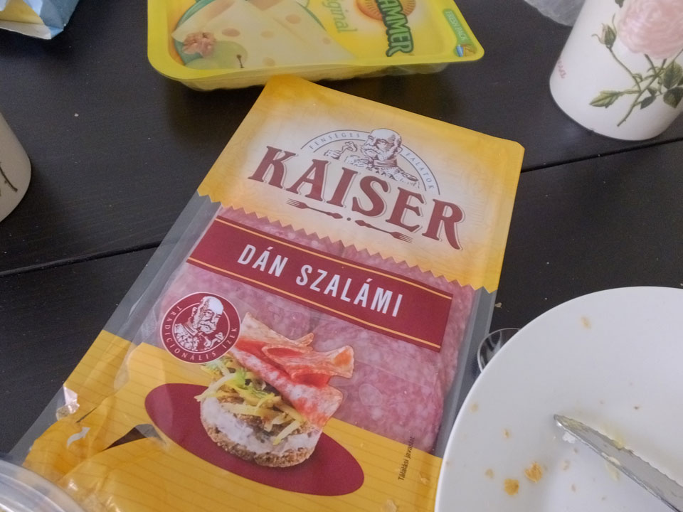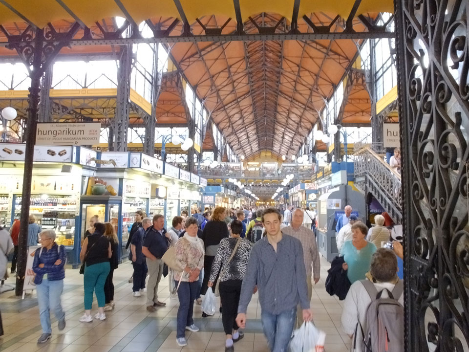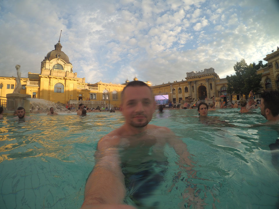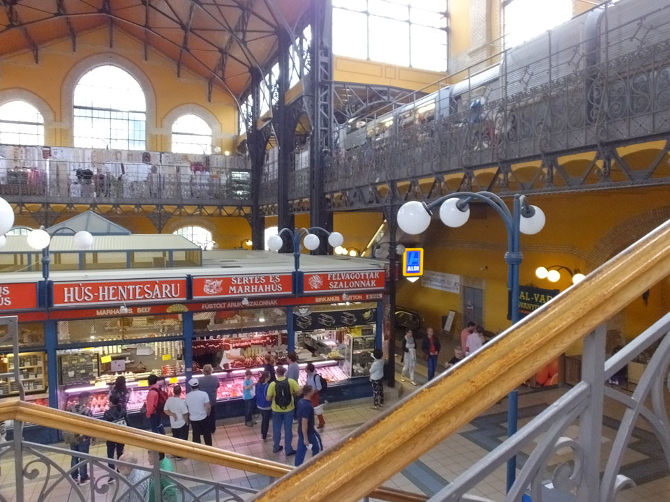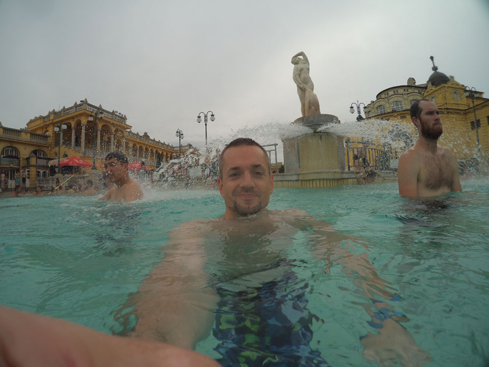Schließlich kamen wir zur Markthalle, die auch touristisch ausgestattet war. Ich hatte heute eine leichte Abneigung zu Toury-Sachen aber das legte sich langsam, als ich mal eine Runde in die Hinterstraßen drehen konnte und mal das normale Budapest sah. Mit der Metro nach Széchenyi kamen wir auch irgendwie und aßen dort was vor’m Bad. Ich hatte ein Sandwich und der Salat mit um Camembert gewickelten Bacon sah auch gut aus, schmeckte lecker.