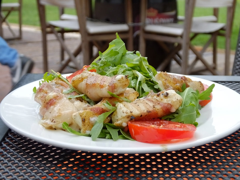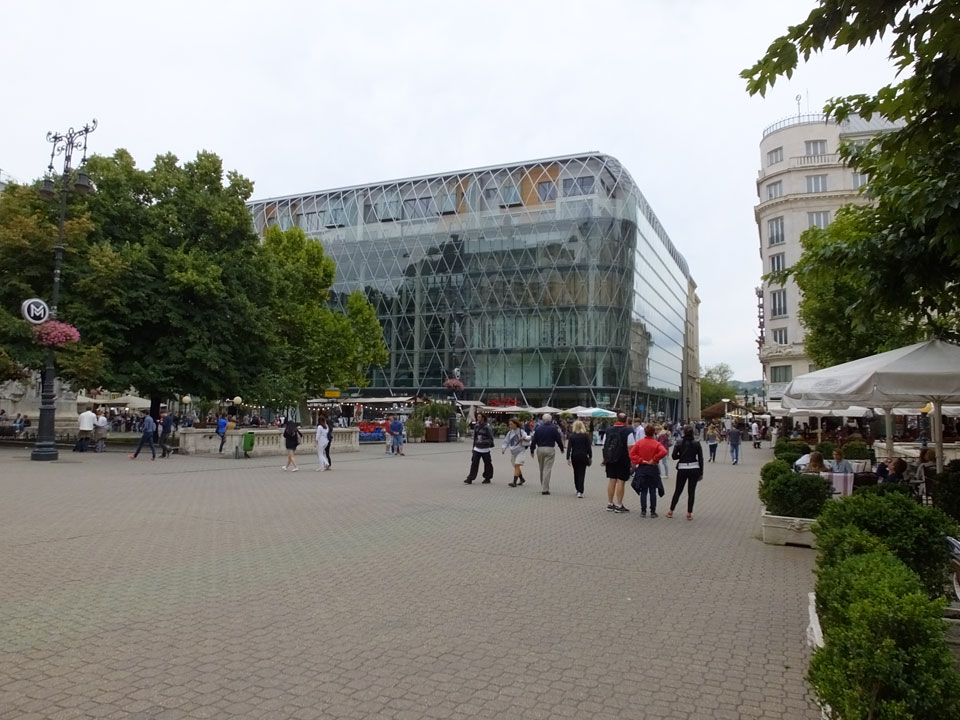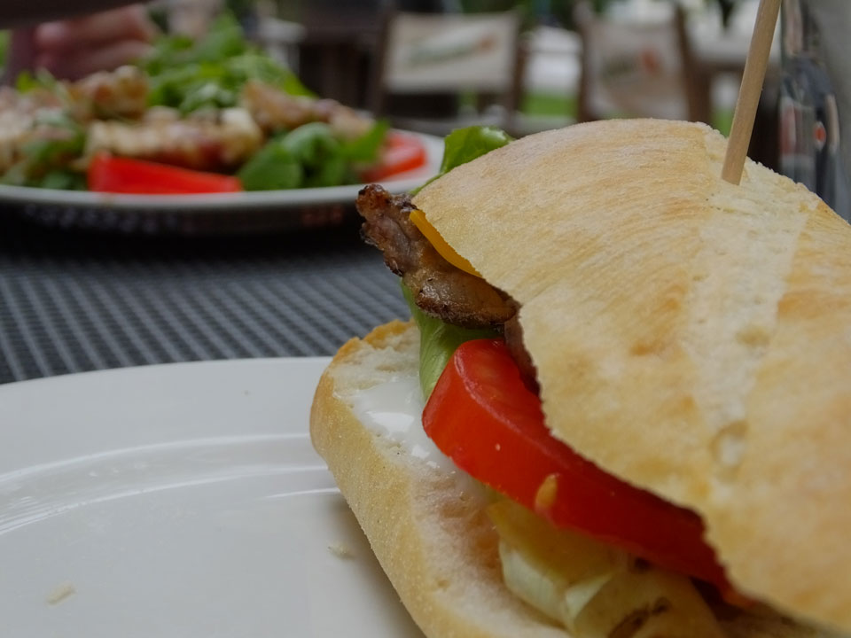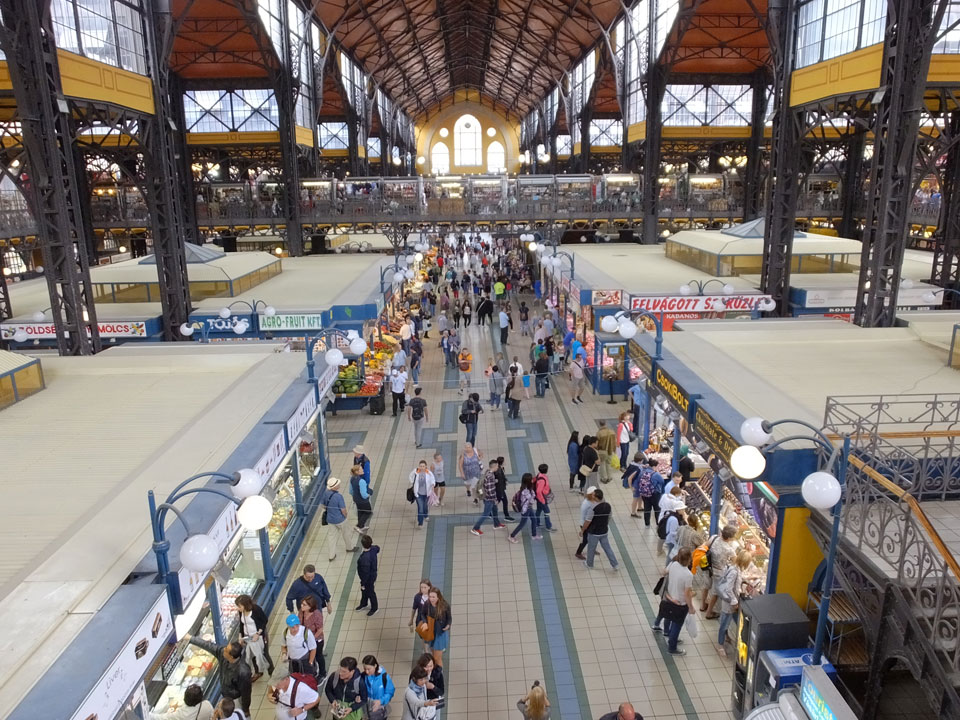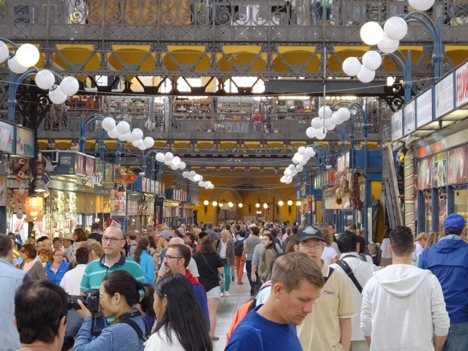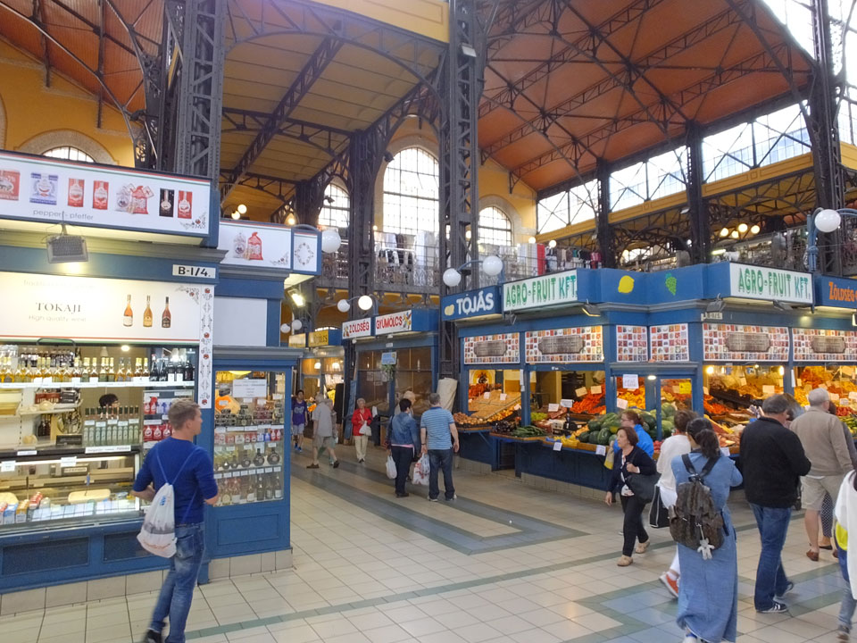 Schließlich kamen wir zur Markthalle, die auch touristisch ausgestattet war. Ich hatte heute eine leichte Abneigung zu Toury-Sachen aber das legte sich langsam, als ich mal eine Runde in die Hinterstraßen drehen konnte und mal das normale Budapest sah. Mit der Metro nach Széchenyi kamen wir auch irgendwie und aßen dort was vor’m Bad. Ich hatte ein Sandwich und der Salat mit um Camembert gewickelten Bacon sah auch gut aus, schmeckte lecker.