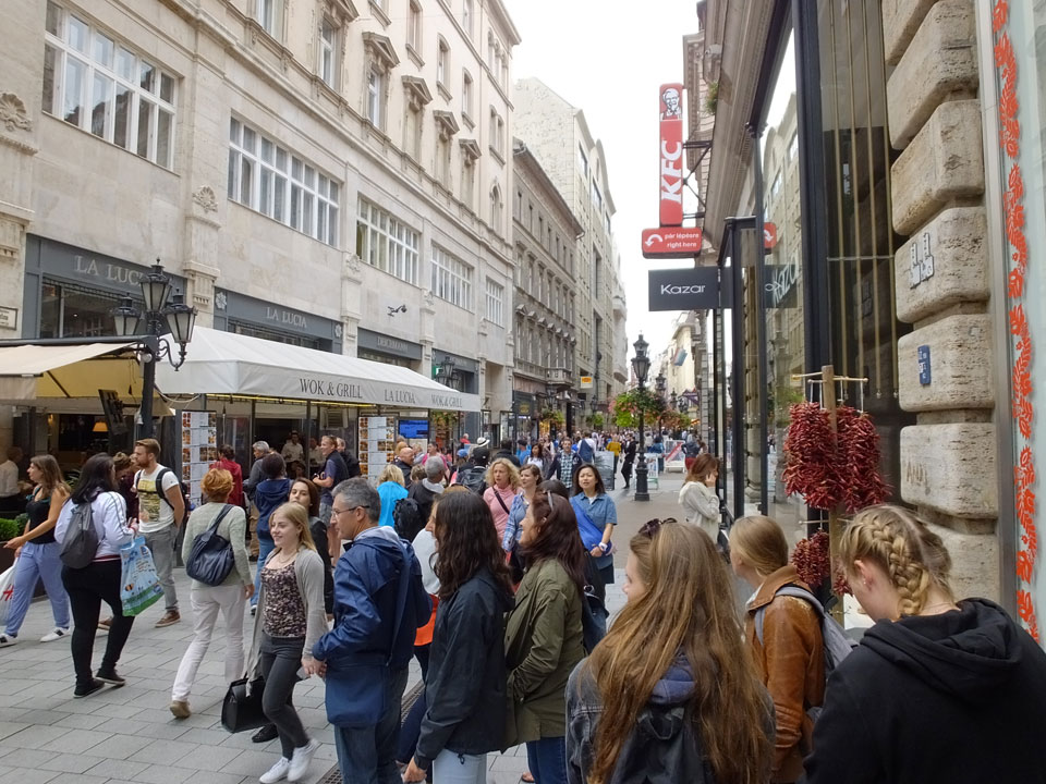 Dann suchten wir nach einem zweiten Kalender und verpassten irgendwie den Zeitungsladen. In den restlichen Souvenirläden auf der Váci utca gab’s überall ungefähr das Gleiche, nur eben nicht dieses einen Kalender. Nur die Nachtversion war noch verfügbar und die angepassten Preise gefielen mir wenig.
