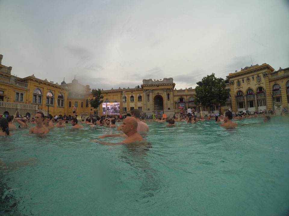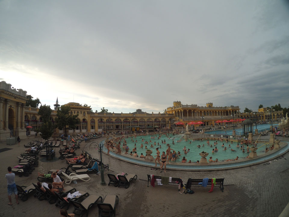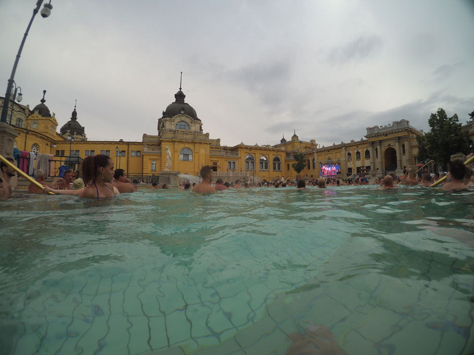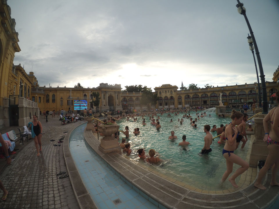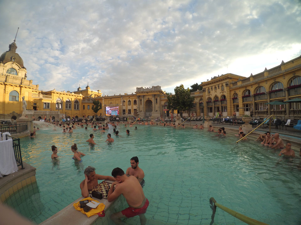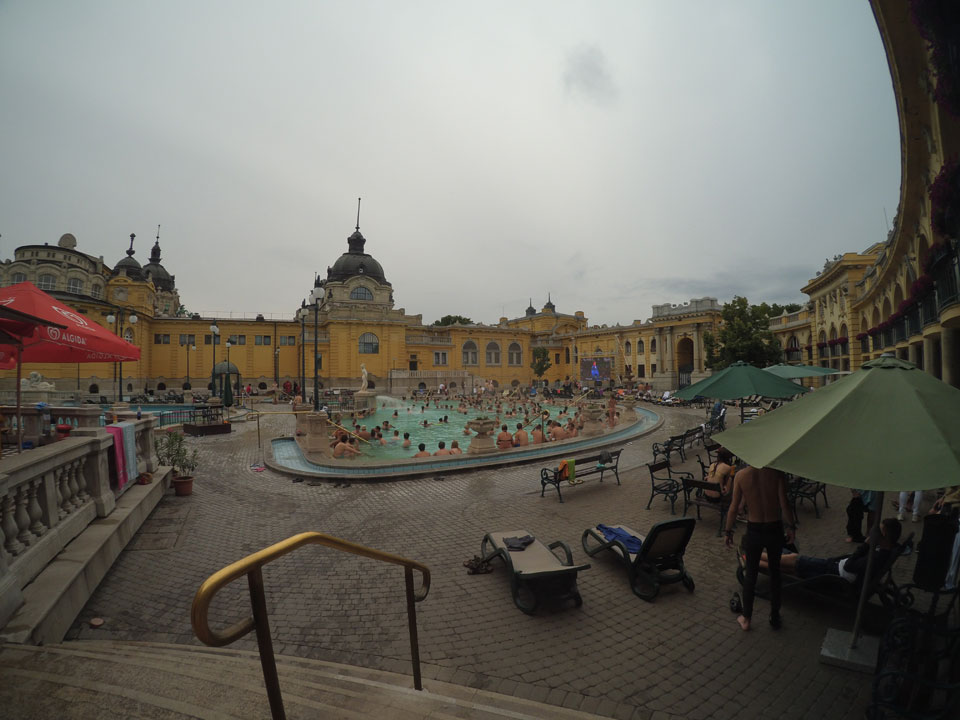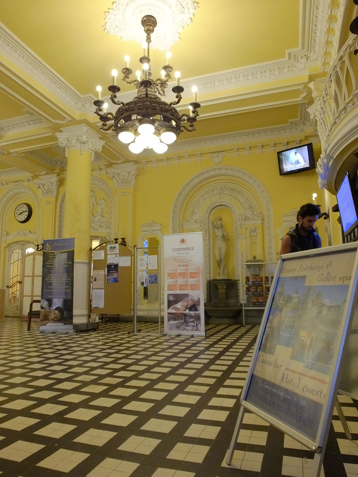 Das Széchenyi Bad war auf der Liste und jetzt schon so spät am Nachmittag warteten wir bis 17:00 zu einem leicht vergünstigten Eintritt. Das Foyer füllte sich, viele wollten ein paar Euro sparen. Die €15 sind doch etwas heftig, doch die Bäder gehören sehr zu Budapest, muss man schon sehen, wenn man mal hier ist.