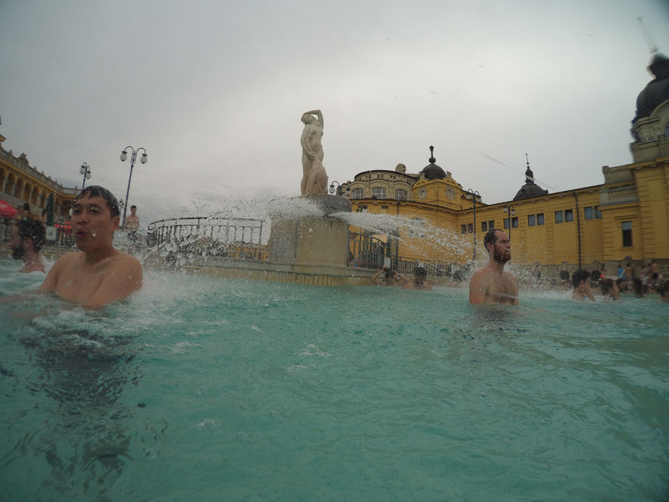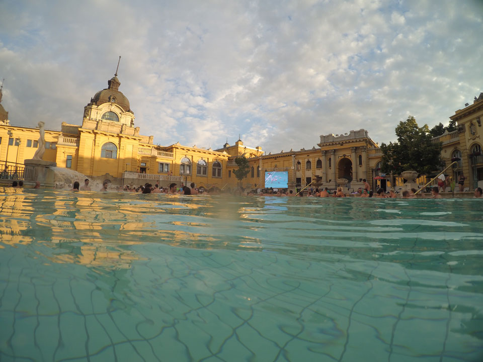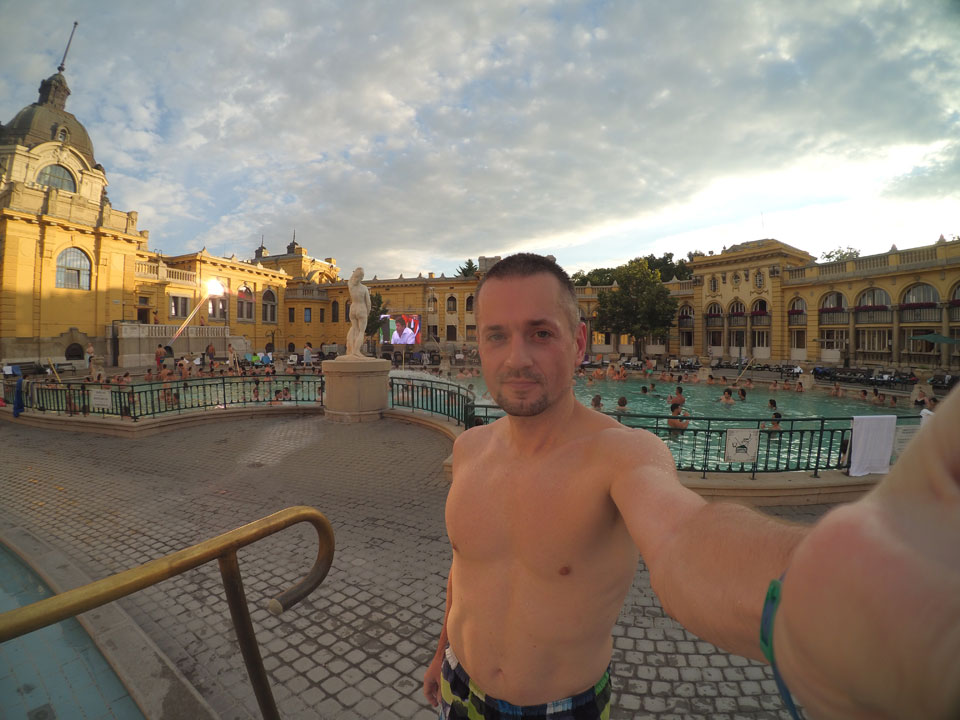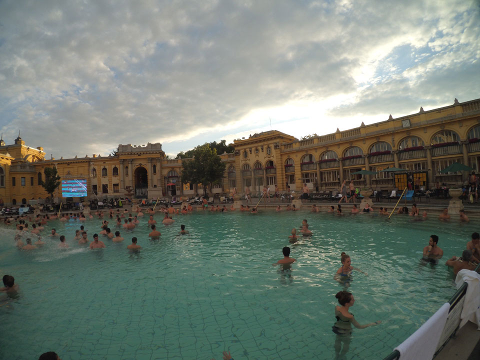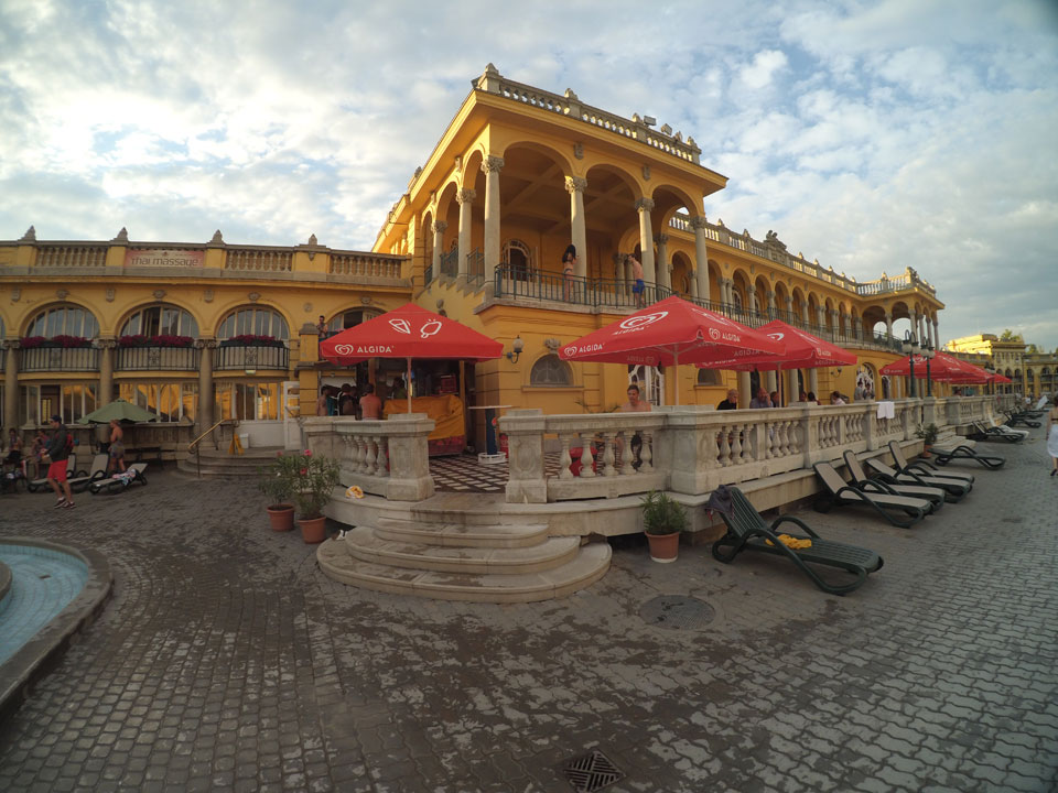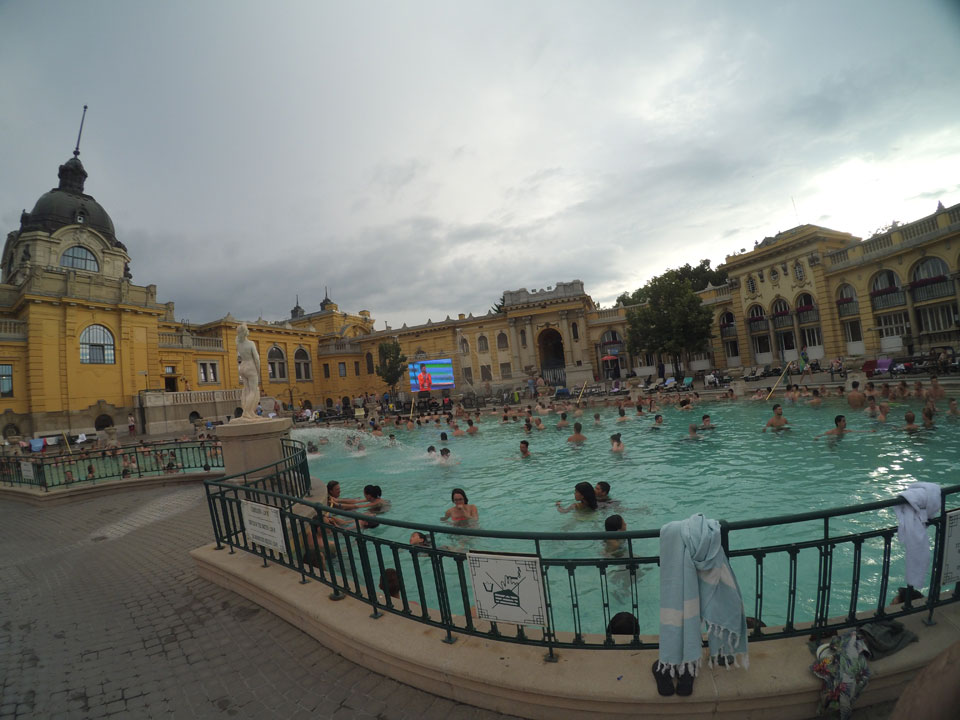 Das Széchenyi Bad war auf der Liste und jetzt schon so spät am Nachmittag warteten wir bis 17:00 zu einem leicht vergünstigten Eintritt. Das Foyer füllte sich, viele wollten ein paar Euro sparen. Die €15 sind doch etwas heftig, doch die Bäder gehören sehr zu Budapest, muss man schon sehen, wenn man mal hier ist.