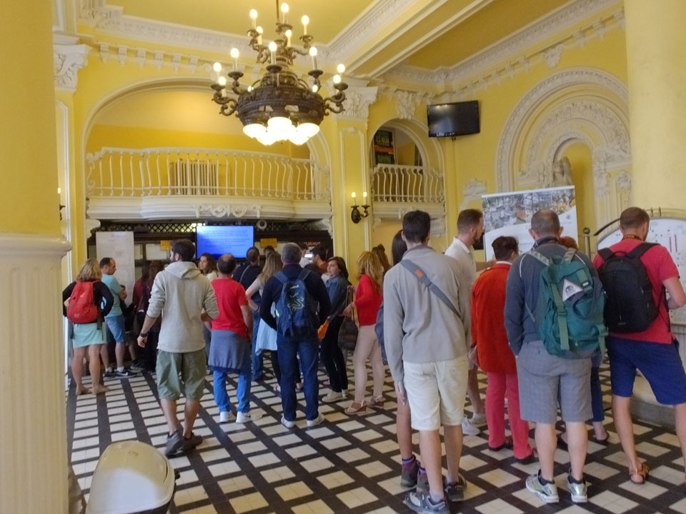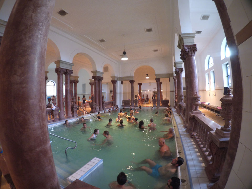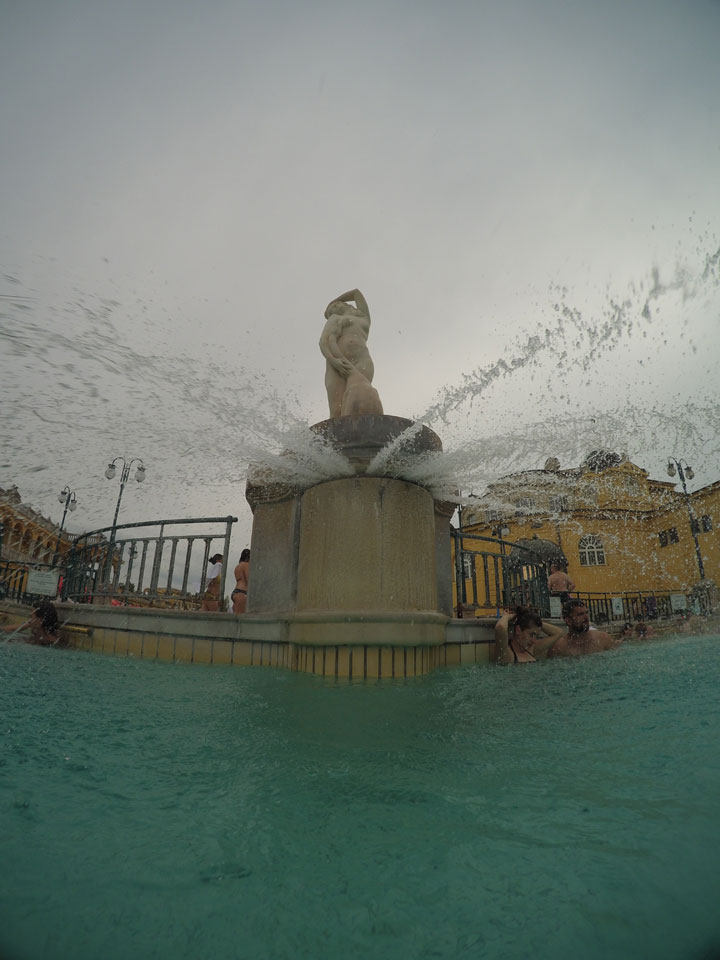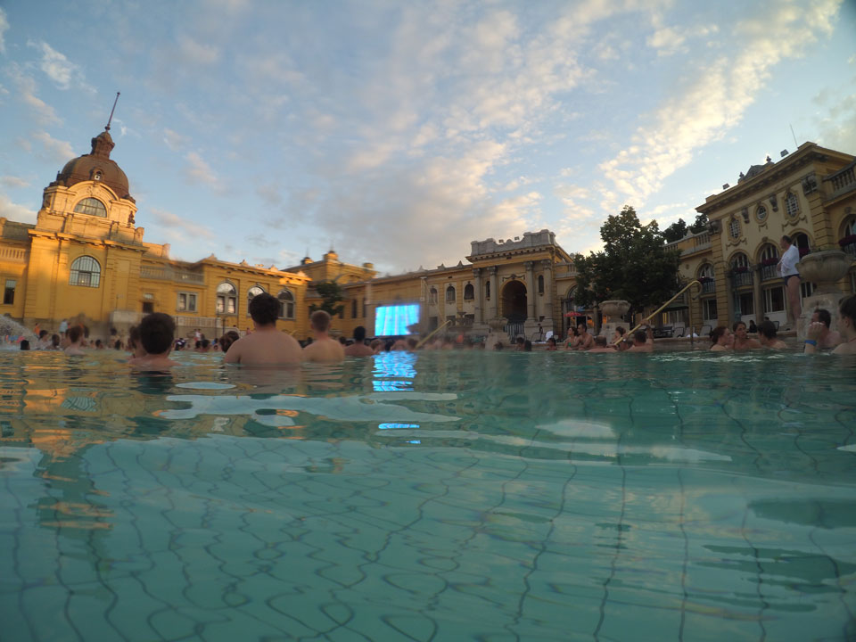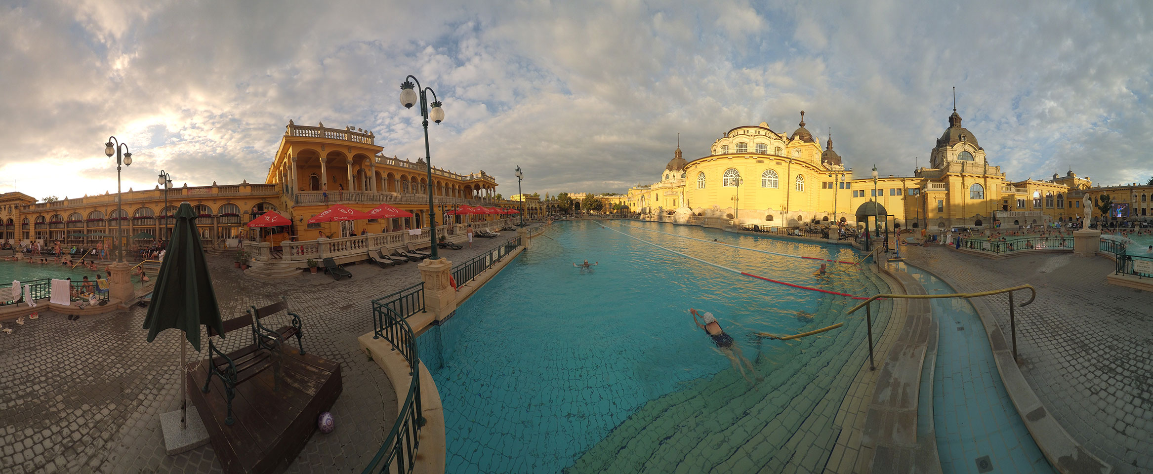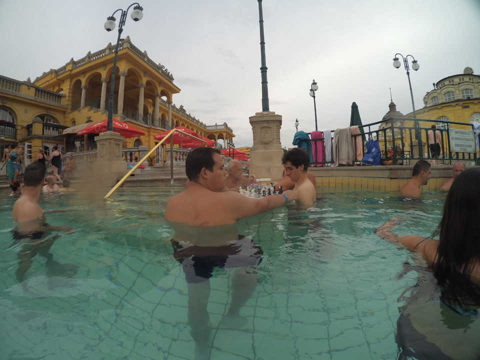 Das Széchenyi Bad war auf der Liste und jetzt schon so spät am Nachmittag warteten wir bis 17:00 zu einem leicht vergünstigten Eintritt. Das Foyer füllte sich, viele wollten ein paar Euro sparen. Die €15 sind doch etwas heftig, doch die Bäder gehören sehr zu Budapest, muss man schon sehen, wenn man mal hier ist.