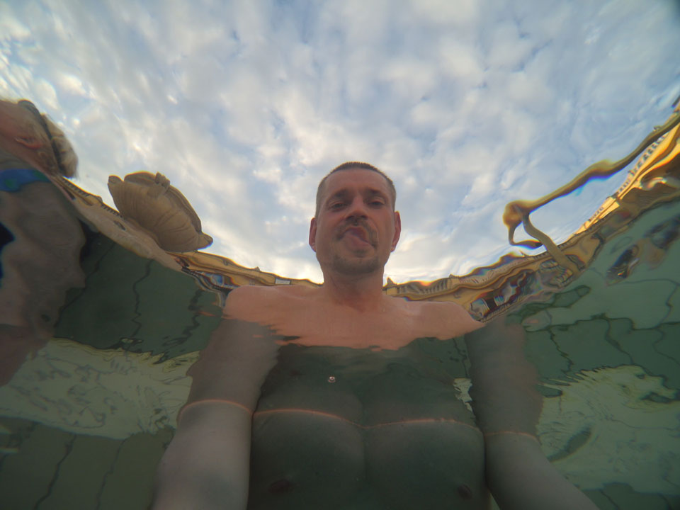 Wir saßen dann auch viel länger, als gedacht dort im warmen Wasser. Olympia lief – Wasserball der Frauen gegen Spanien. So gab’s etwas Unterhaltung und für mich einen kleinen Saunagang. Alles toll, auch weil sich mit der Abenddämmerung der Himmel aufklarte. Bei Wolken im warmen Wasser war man vor Sonnenbrand geschützt. Das passte alles.