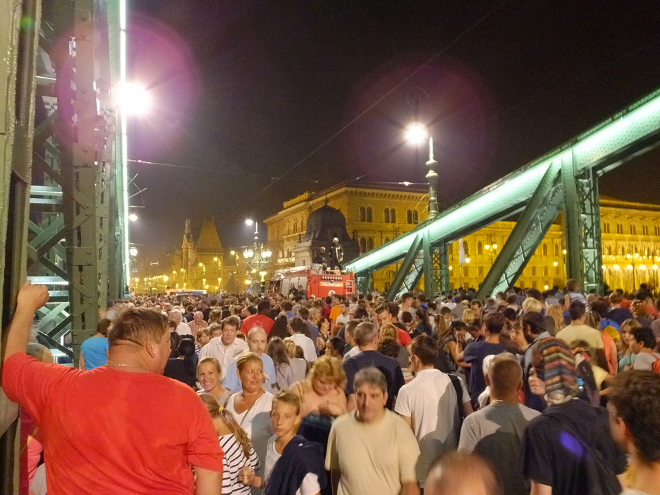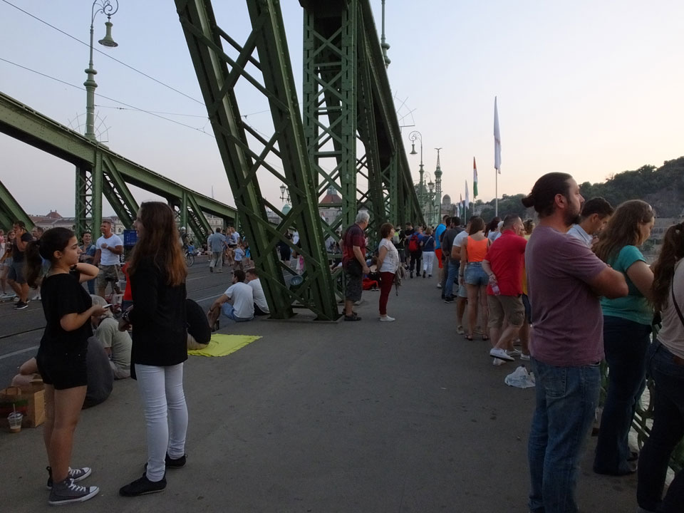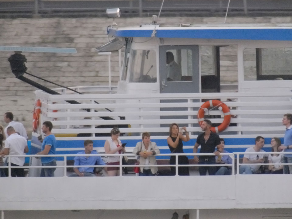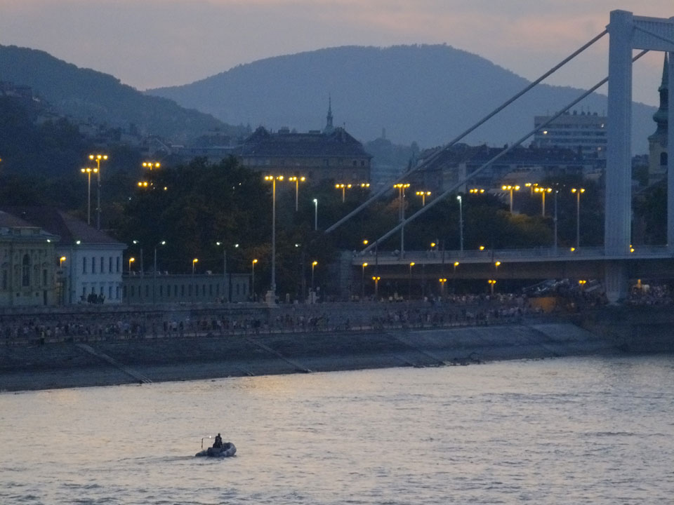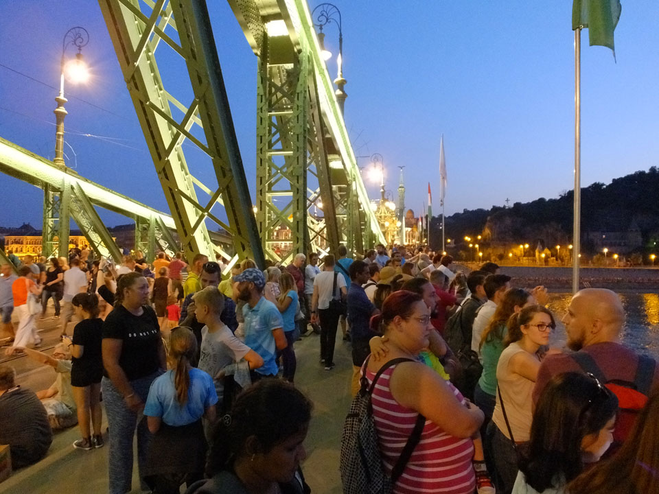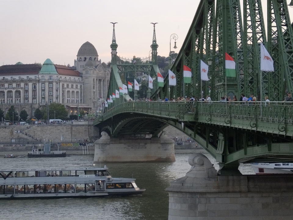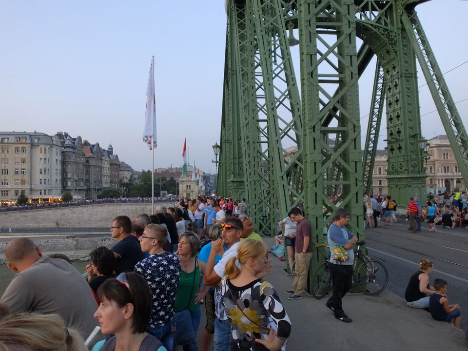 Es war St. Stephans Tag. Auf der grünen Brücke sammelten sich die Leute und erinnerte mich, dass ich etwas Werbung zu Boots-Touren am 20.8. sah. Die Donau war voller Ausflugsschiffe. Leute überall und auf der Brücke dann stand ich in der zweiten Reihe. Und stand.