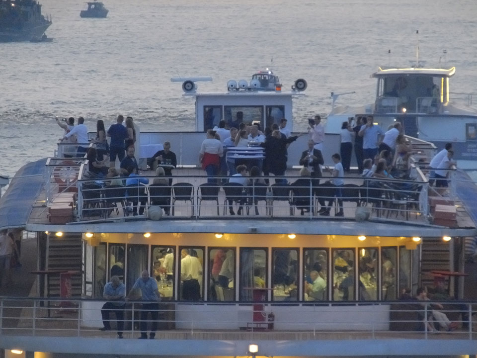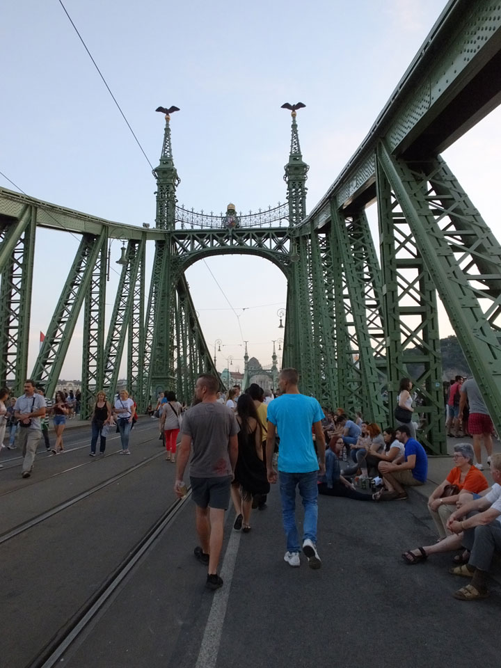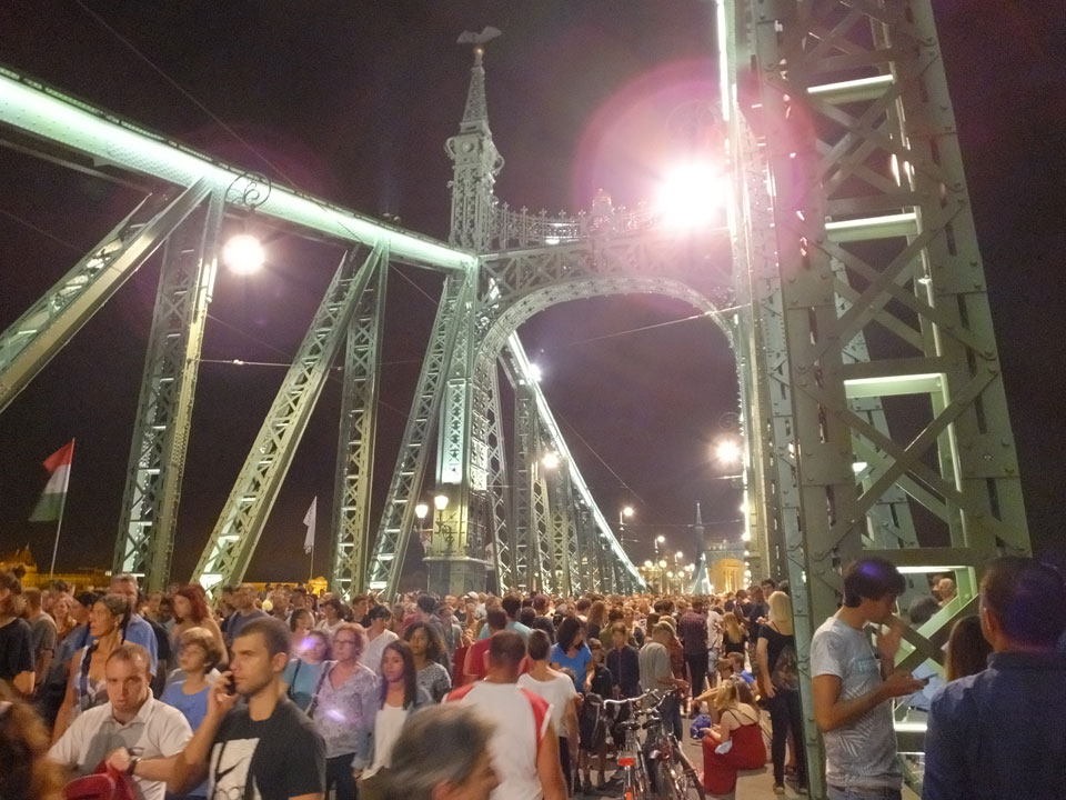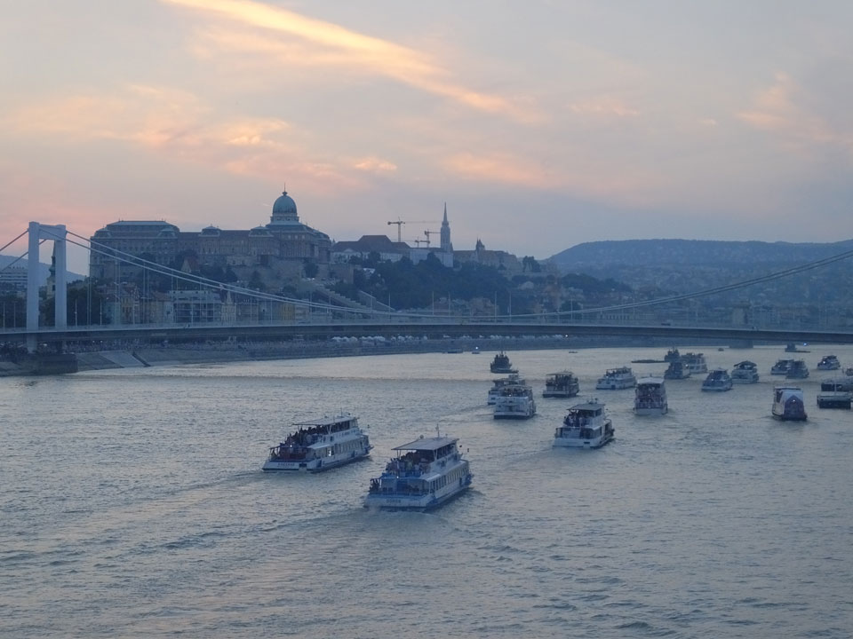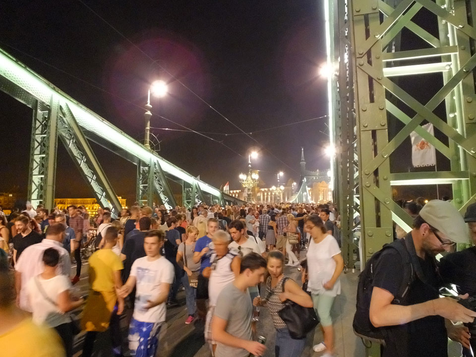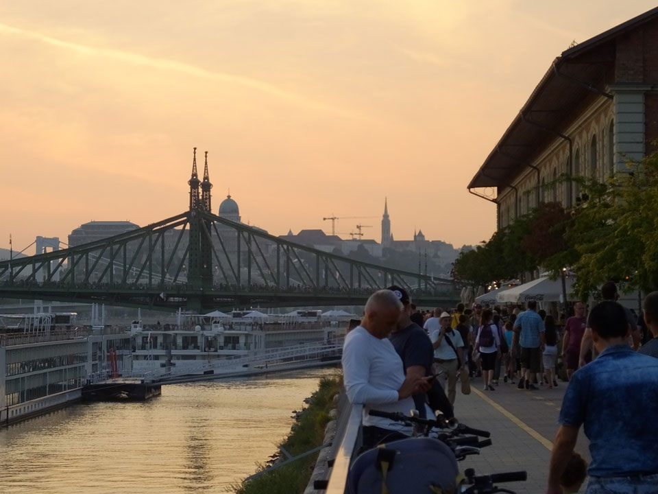 Es war St. Stephans Tag. Auf der grünen Brücke sammelten sich die Leute und erinnerte mich, dass ich etwas Werbung zu Boots-Touren am 20.8. sah. Die Donau war voller Ausflugsschiffe. Leute überall und auf der Brücke dann stand ich in der zweiten Reihe. Und stand.