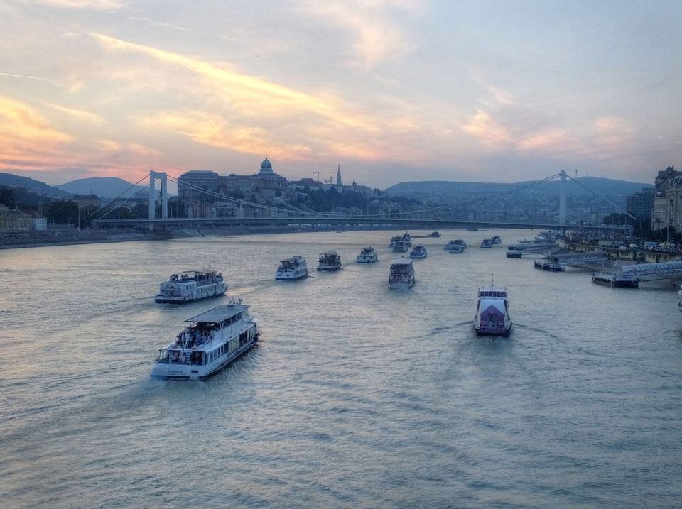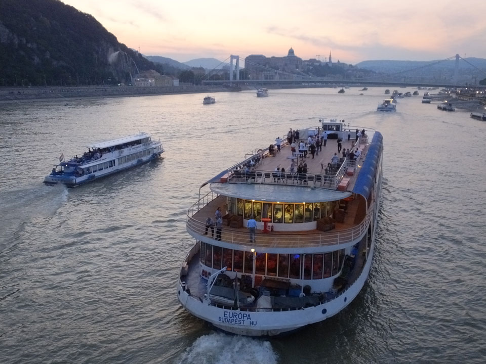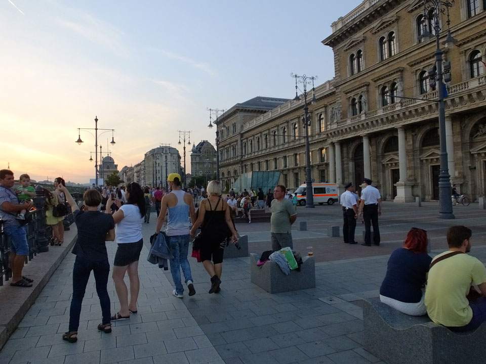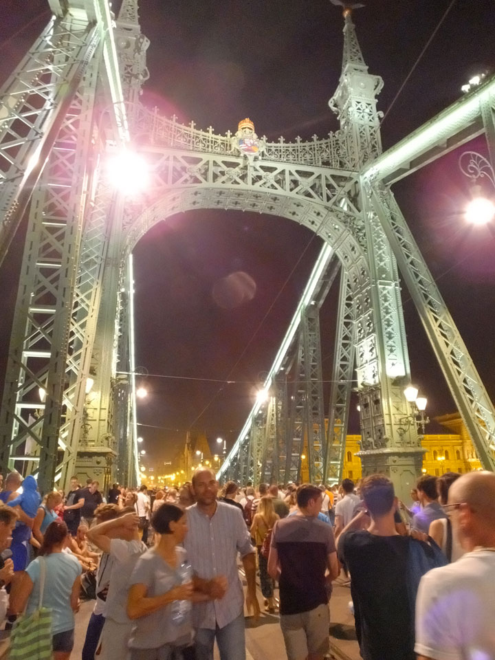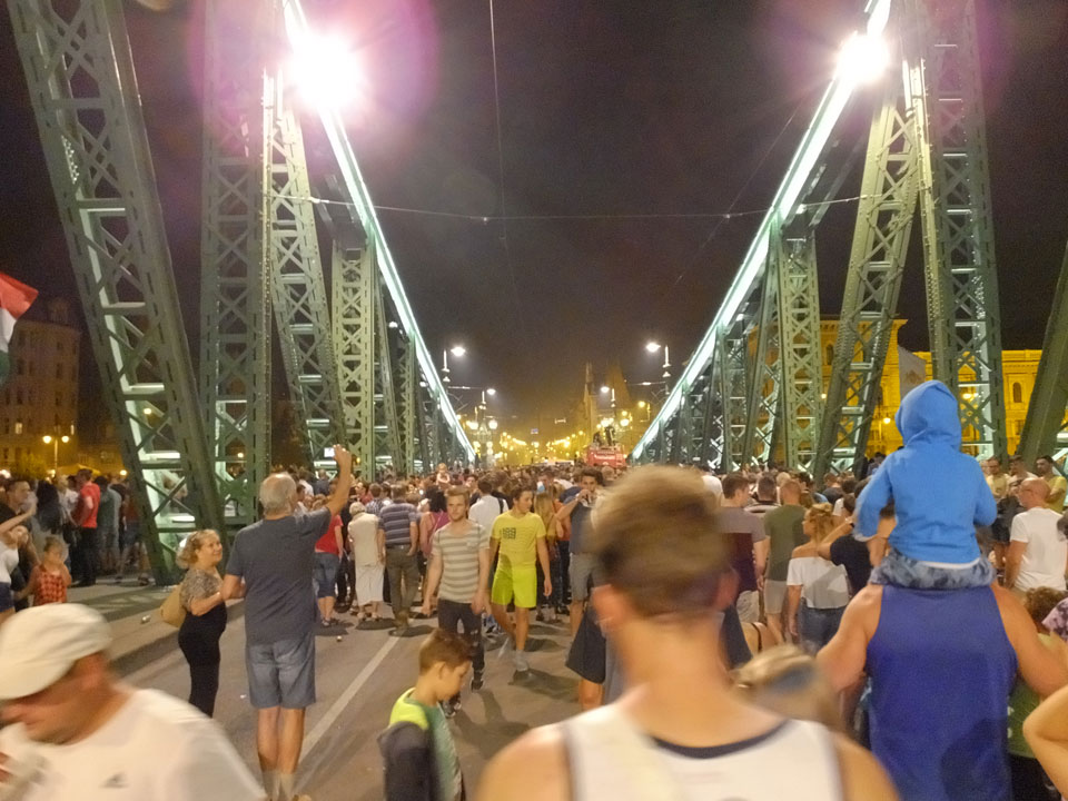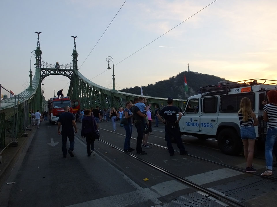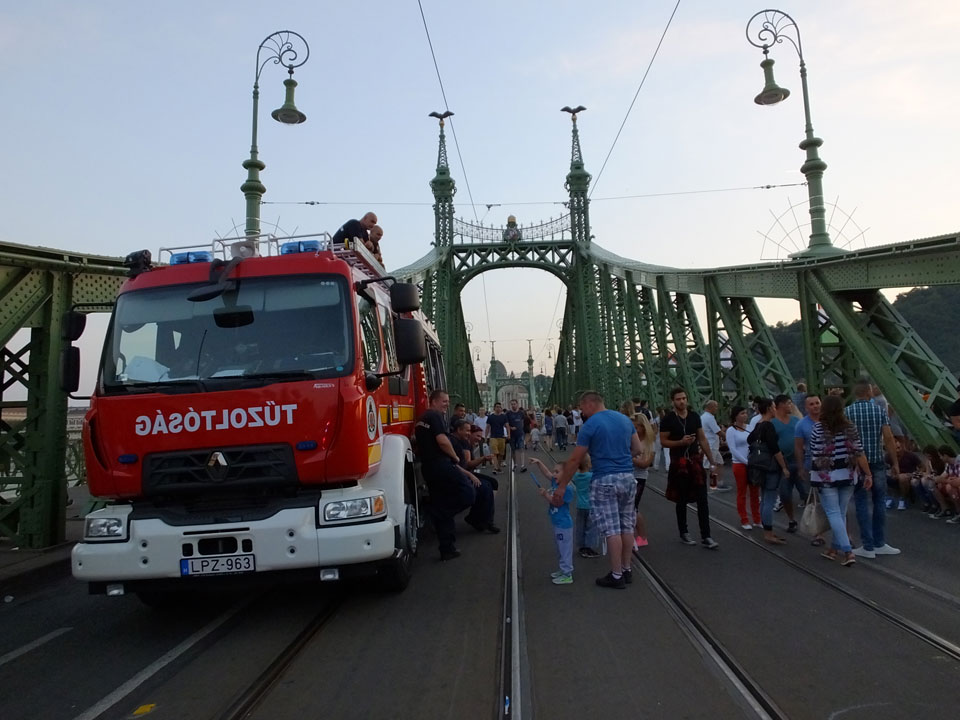 Es war St. Stephans Tag. Auf der grünen Brücke sammelten sich die Leute und erinnerte mich, dass ich etwas Werbung zu Boots-Touren am 20.8. sah. Die Donau war voller Ausflugsschiffe. Leute überall und auf der Brücke dann stand ich in der zweiten Reihe. Und stand.