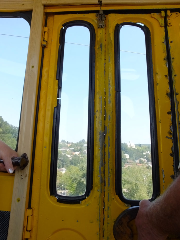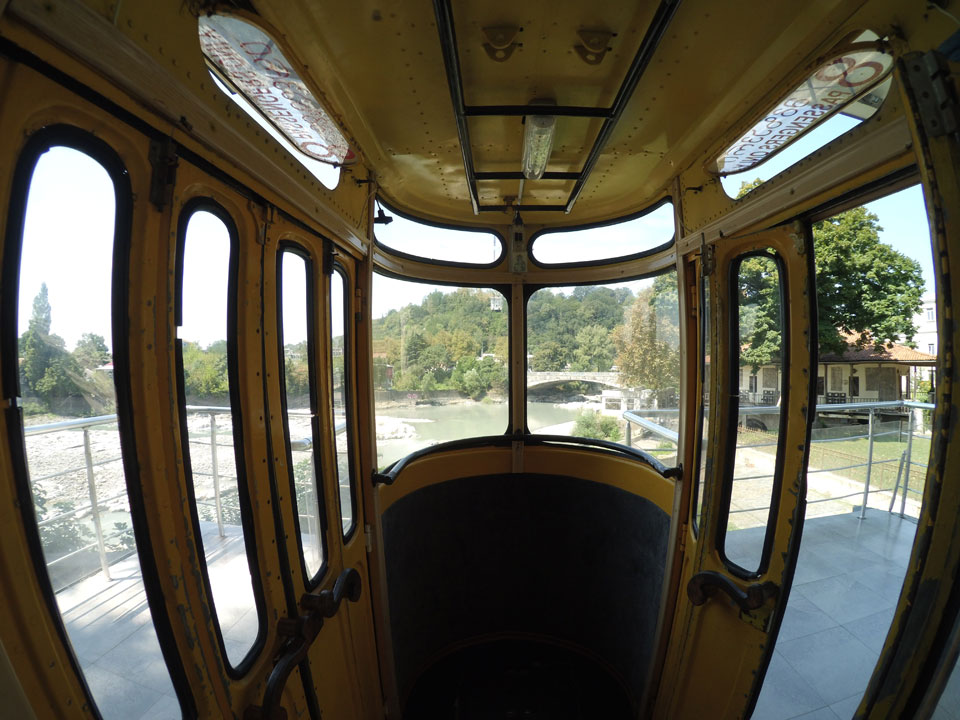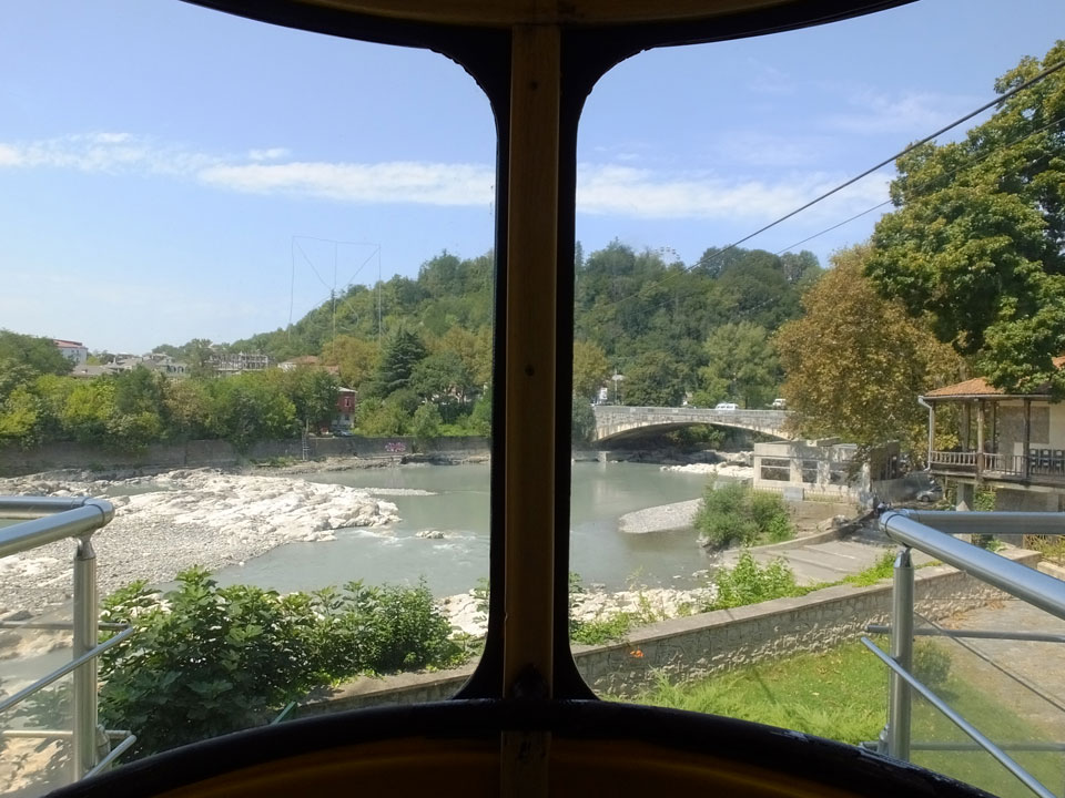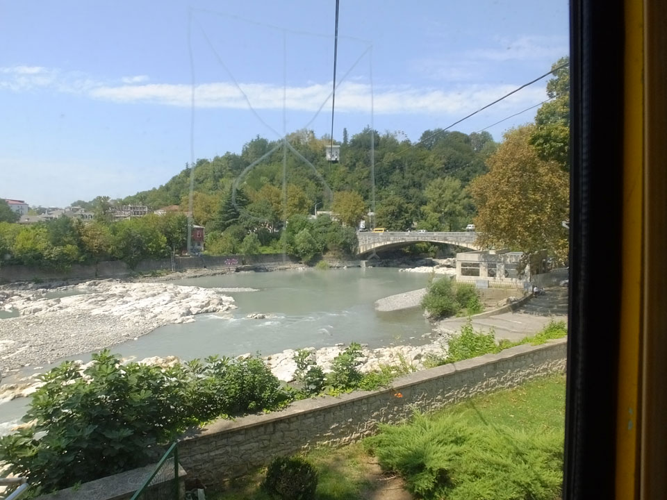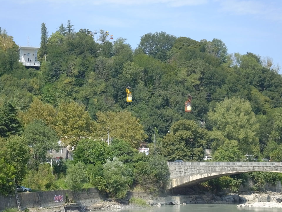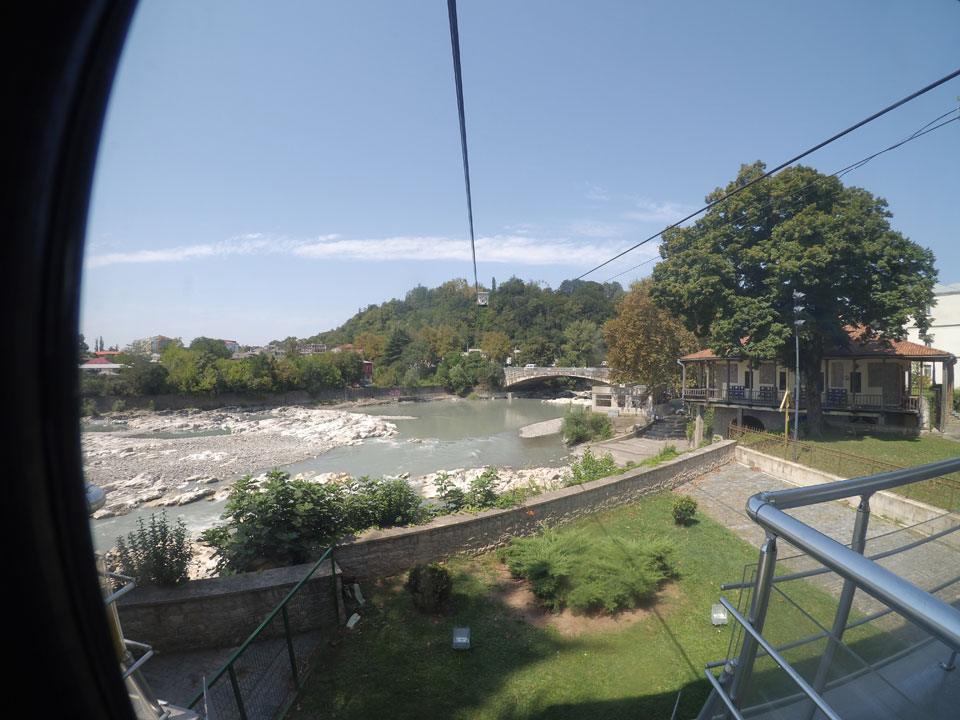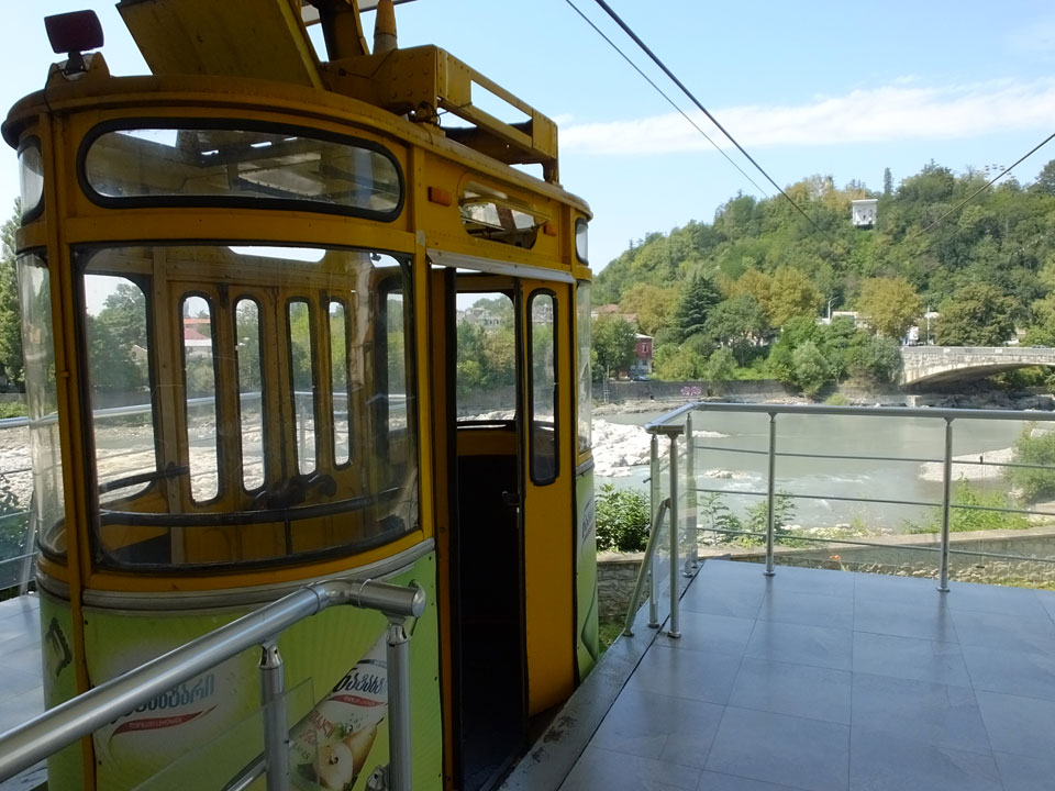 Meine Runde durch Kutaisi startete in der Altstadt. Als ich wieder an der Brücke ankam, sah ich kleine Kabinen einer Seilbahn. Ich fand den Eintritt und man wollte 1 GEL für den Roundtrip.