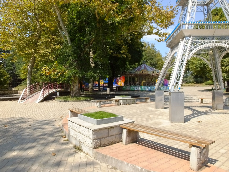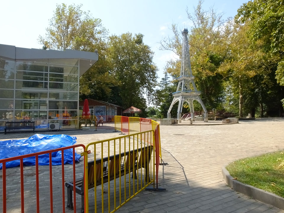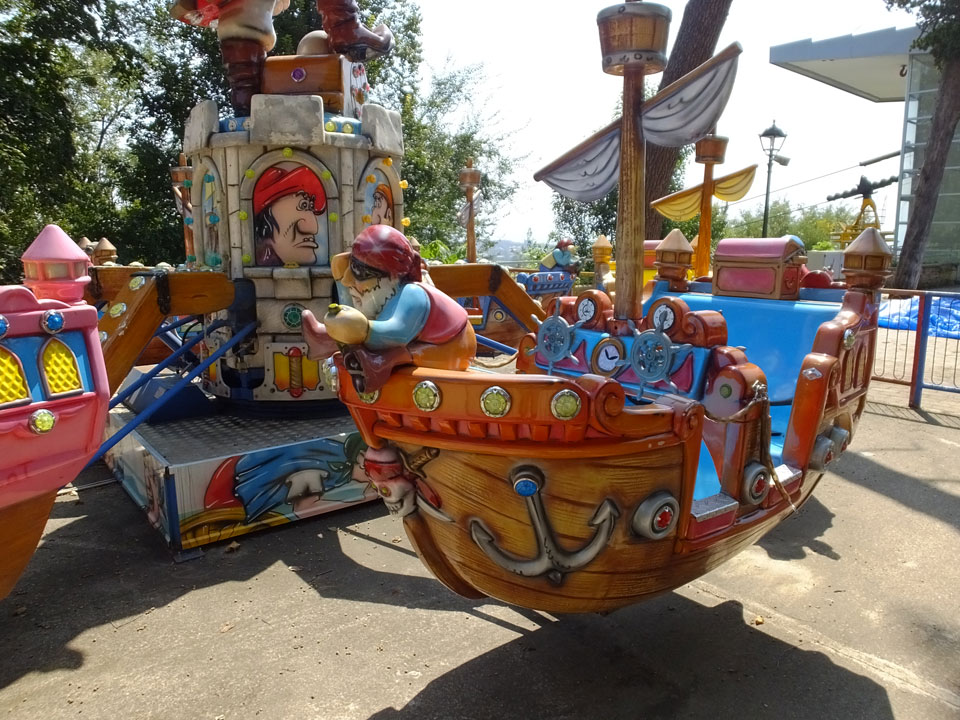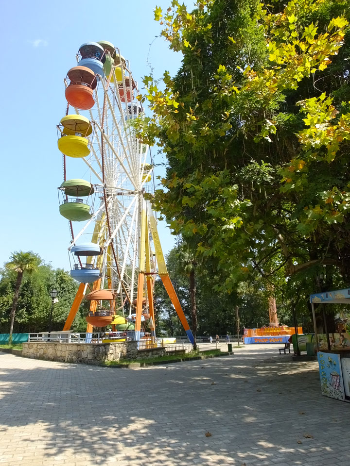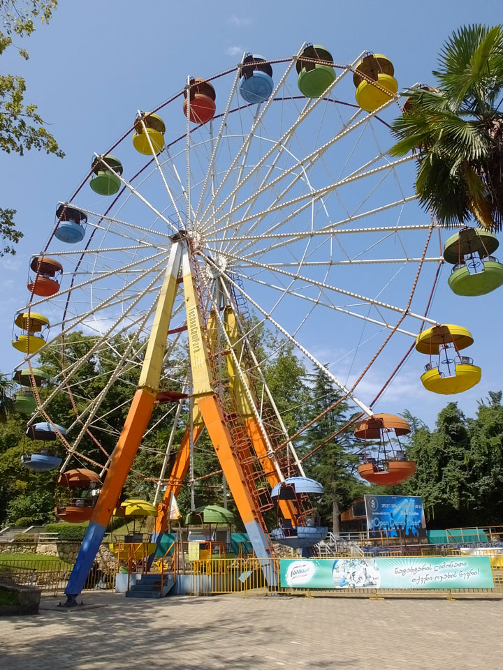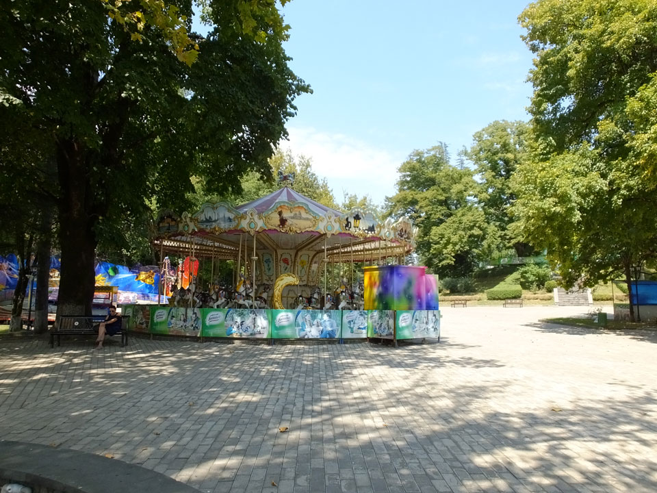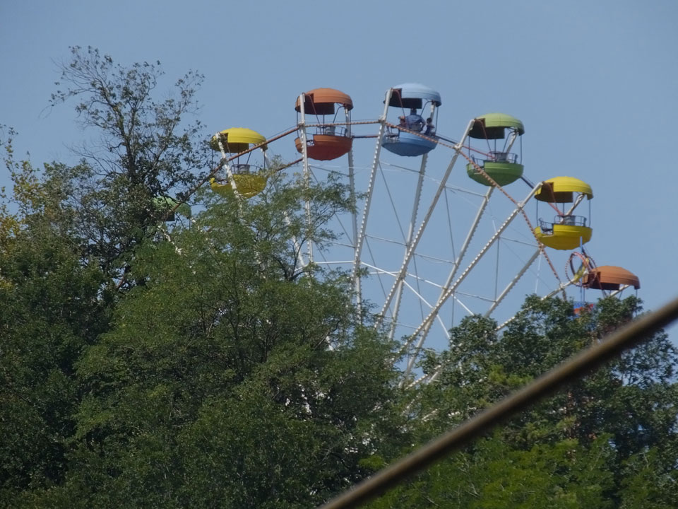 Witzige Fahrt – so eng und klein über den Fluss auf den Berg. Oben dann klopfte mir der Mann freundlich auf die Schulter. Touristen braucht das Land ein paar mehr. Da oben auf dem Hügel war ein Vergnügungspark – ohne Leute. Ganz im russischem Stil, wie in Orel bspw., gab’s viele Fahrgeschäfte, ein Riesenrad usw.. Die Leute fehlten. Nur ab und zu saß ein einzelnes Kind auf ’nem Karussell.