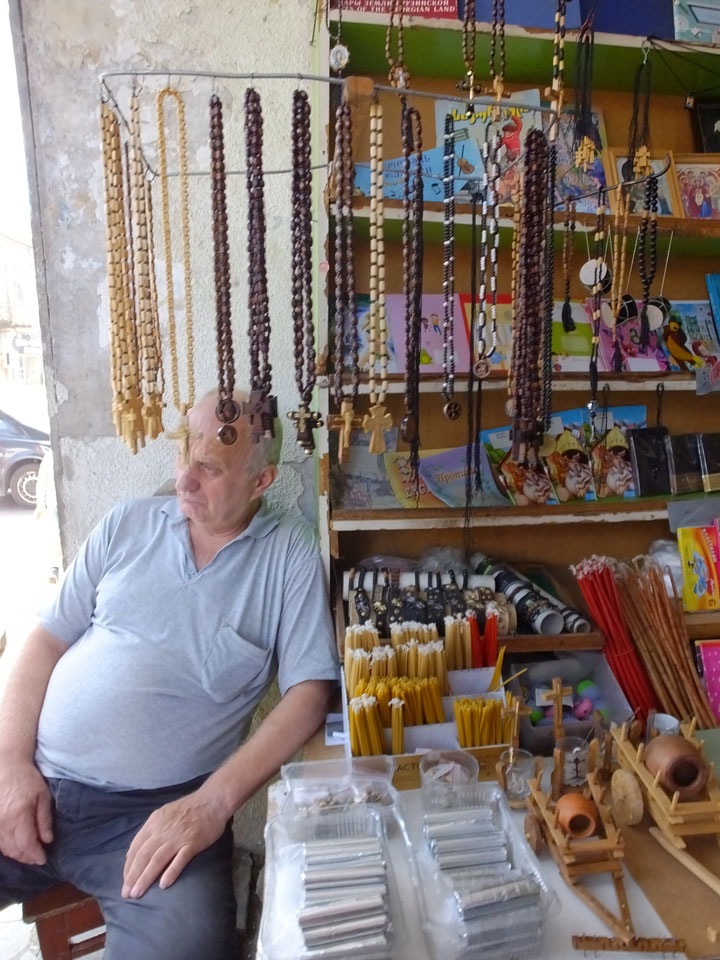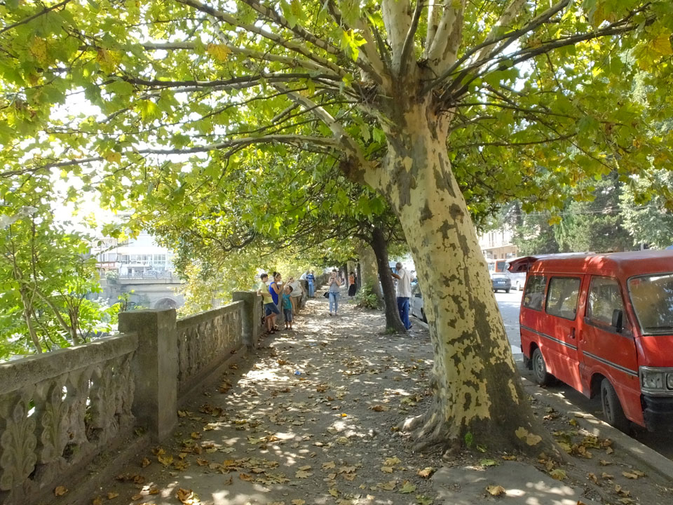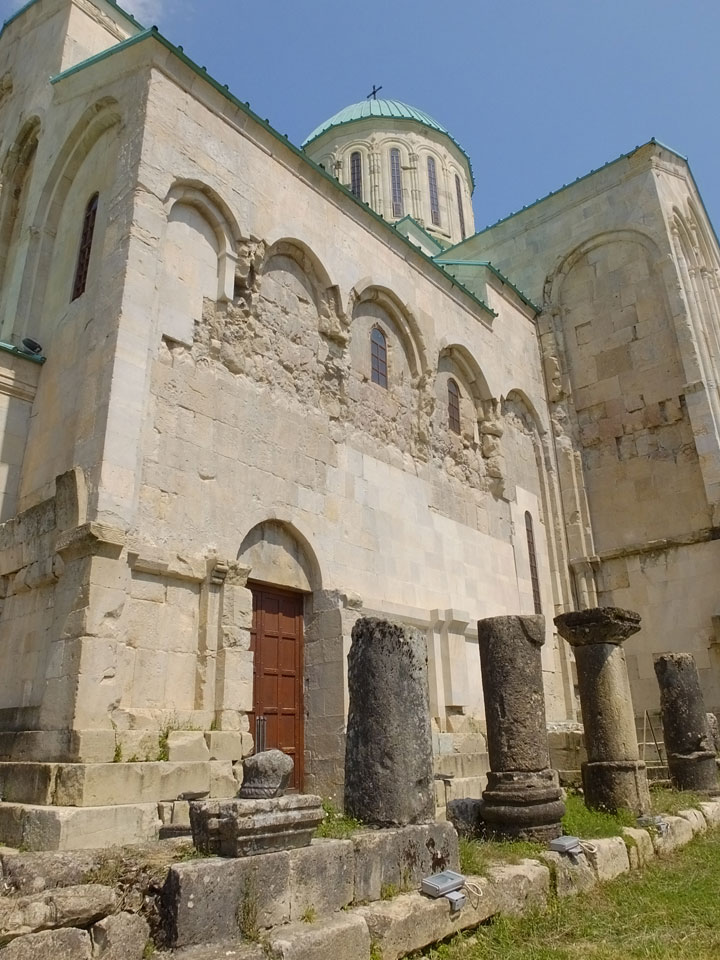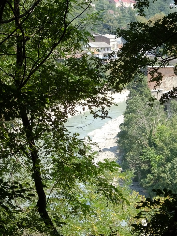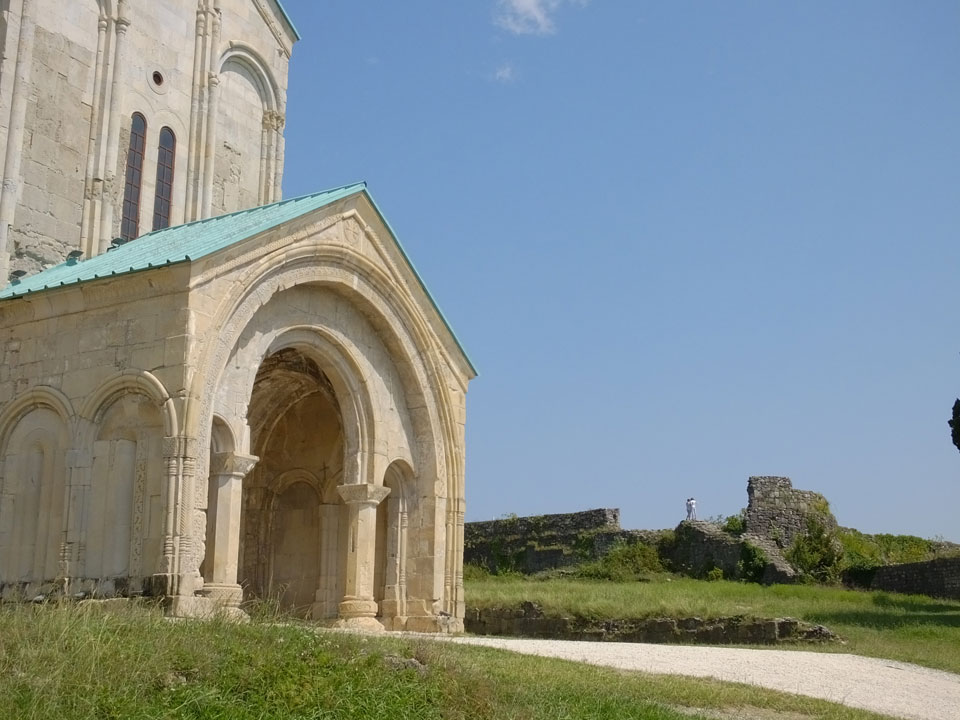Ein Eis und Wasser und weiter ging die Wanderung. Ich kam schließlich zu Gelati, knipste in der Gegend herum. Einen schönen Blick auf Kutaisi gibt von da oben. In der Kirche selbst gibt’s wenig zu bestaunen. Am Engang warteten Rentner auf milde Gaben. Den Rentnern scheint es hier insgesamt weniger gut zu gehen. An einigen anderen Stellen sah ich auch ältere Leute betteln.