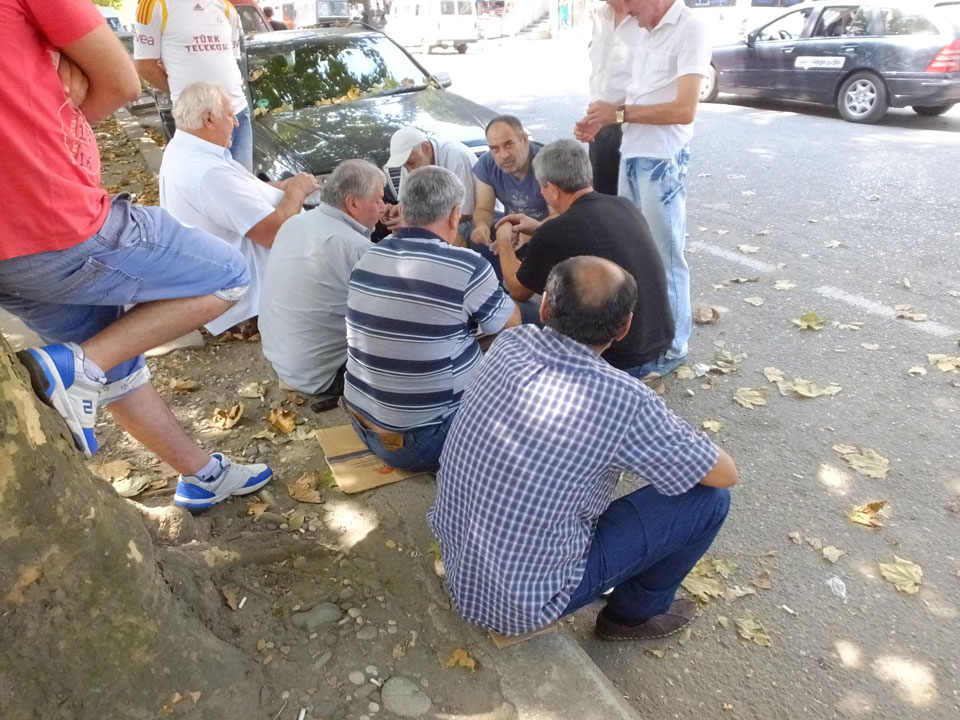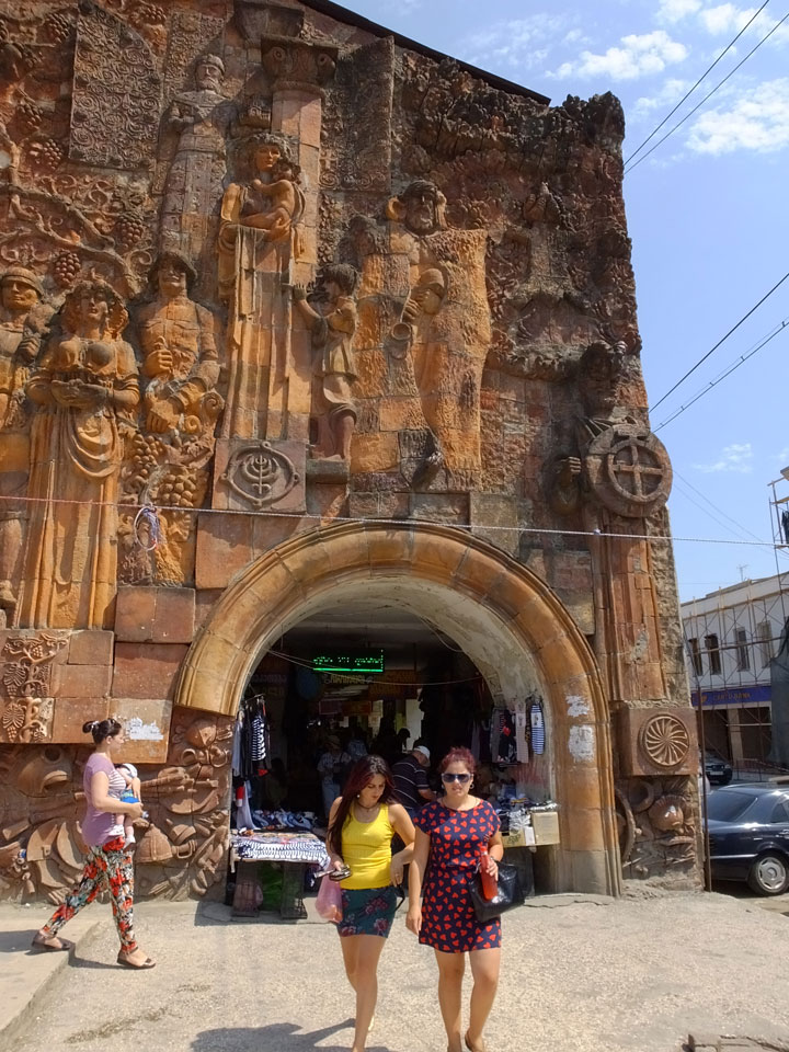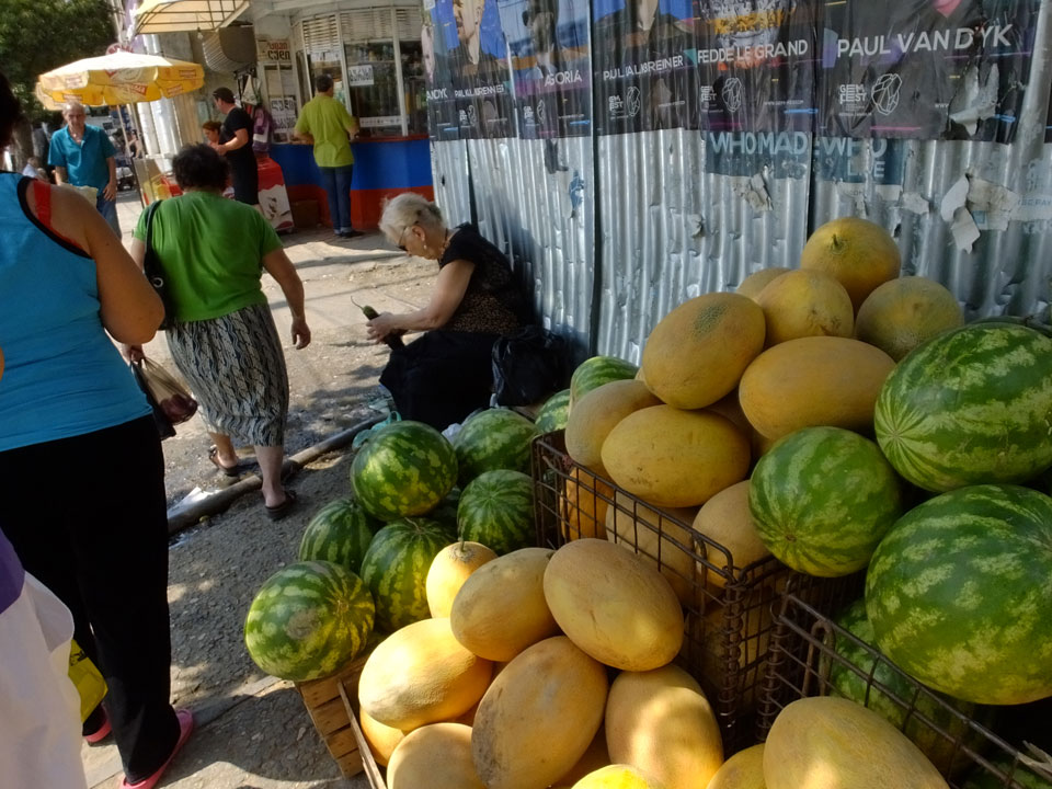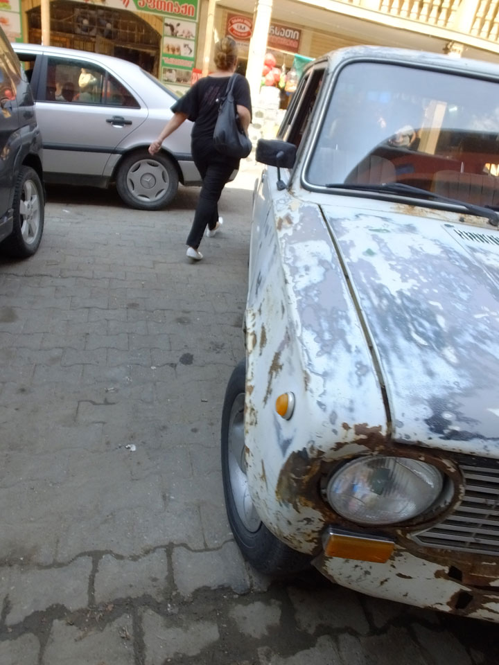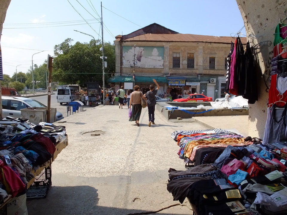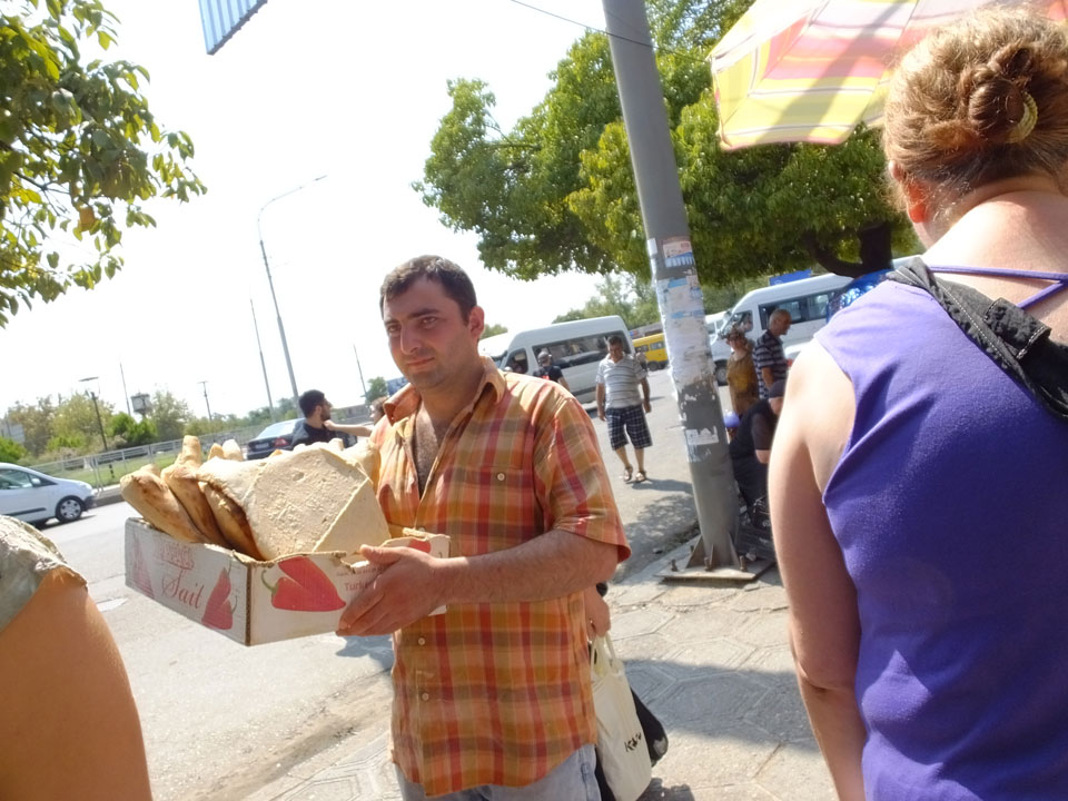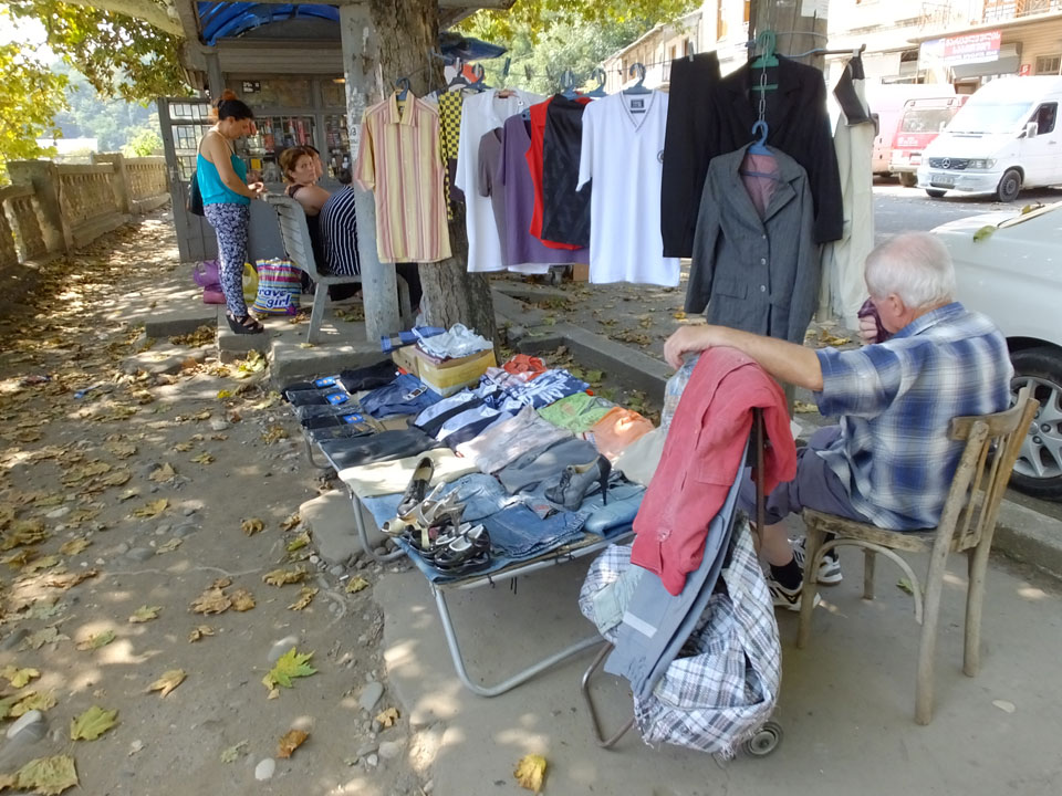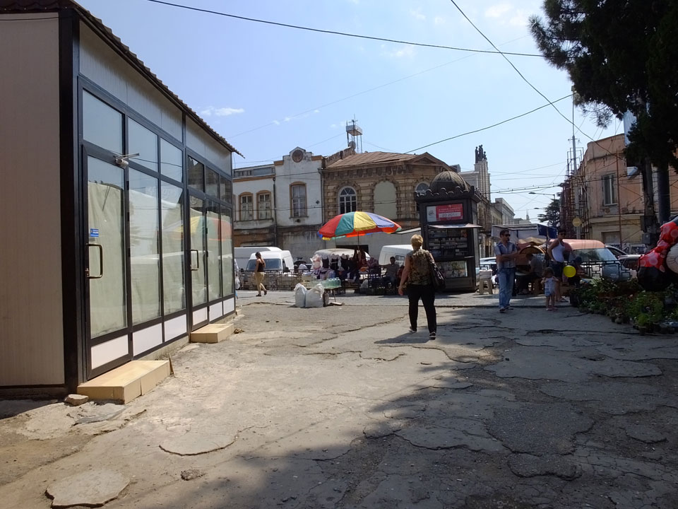 Runter dann wieer Richtung Stadt kam ich in belebte Teile Kutaisis. Eine Minibus-Bahnhof war da mit Markt und dann ein richtig großer Markt noch weiter wieder über der Brücke. Viel Käse, Gemüse und Fleisch. Ganz lokal, wobei hier kaum Leute mit großer Camera durch die Gegend stiefeln. Ich knipste locker aus der Hüfte und machte eher schnell. Die SD Karte voll und ich schließlich nach Hause.