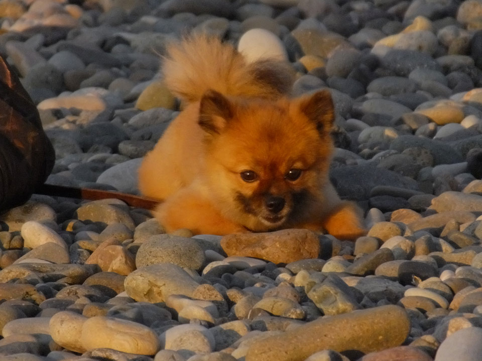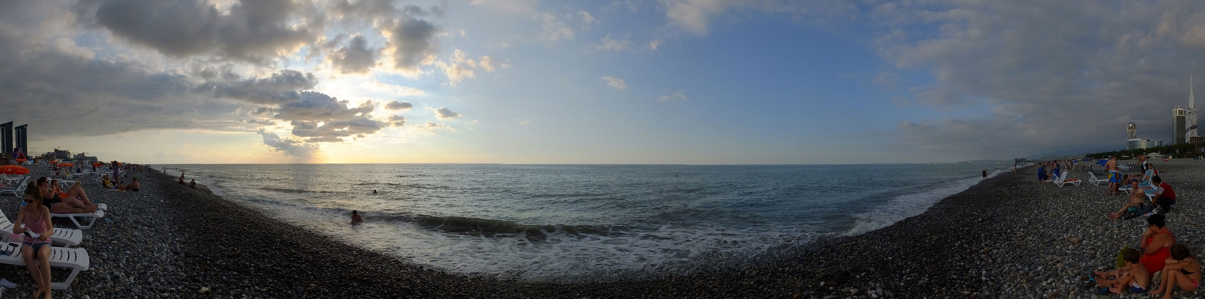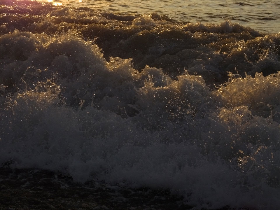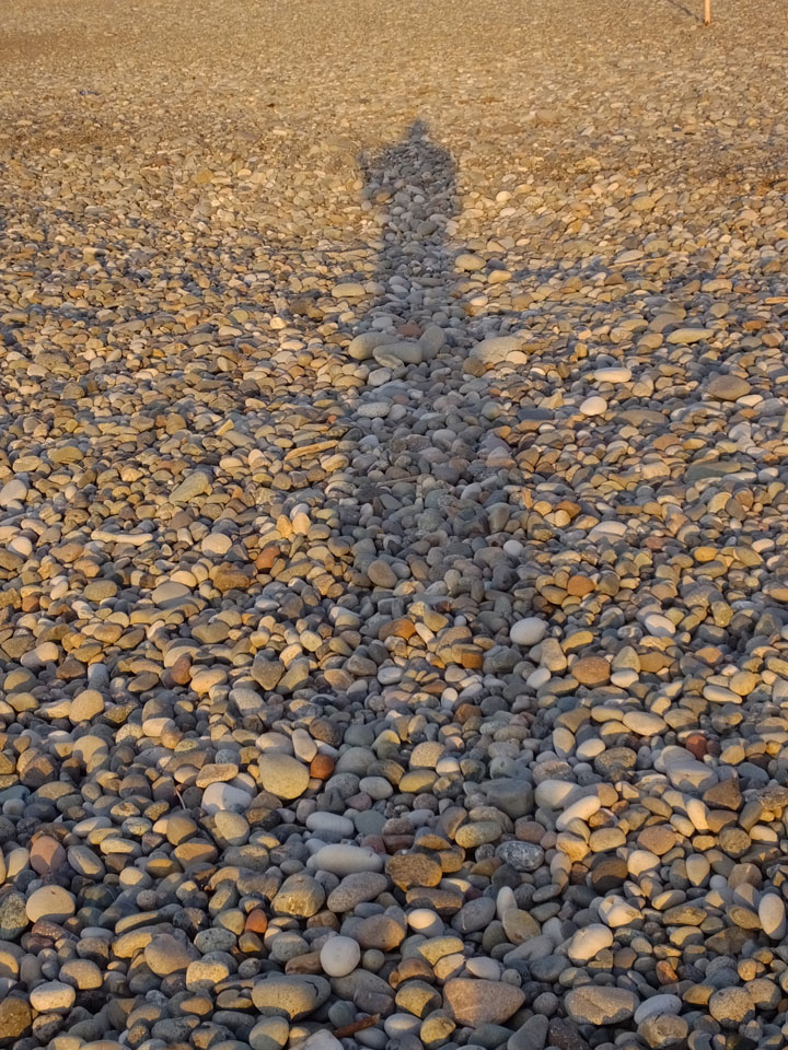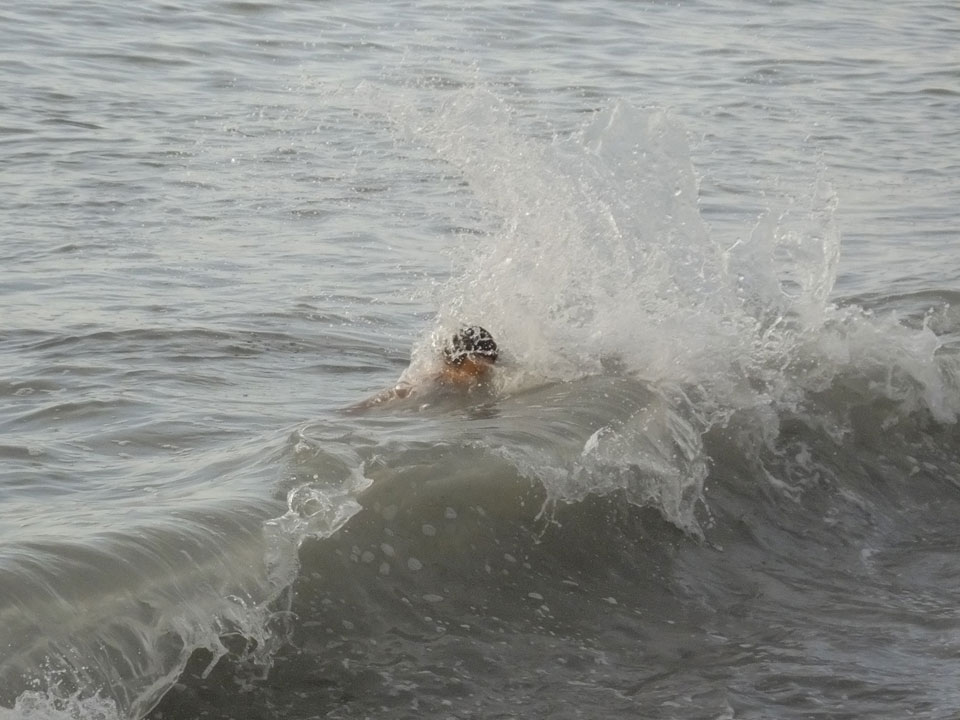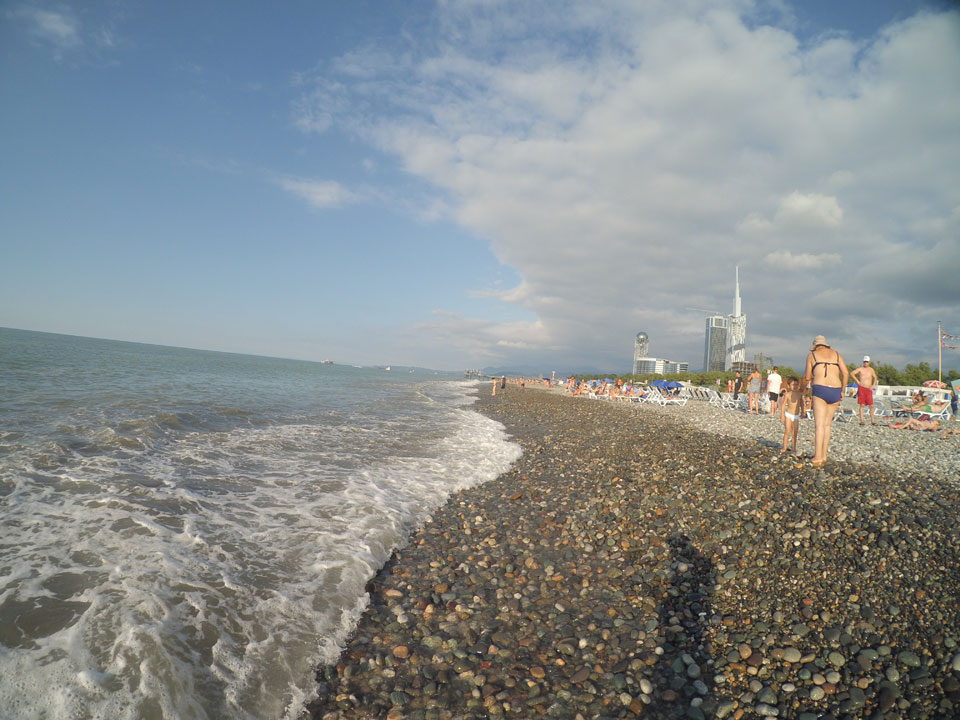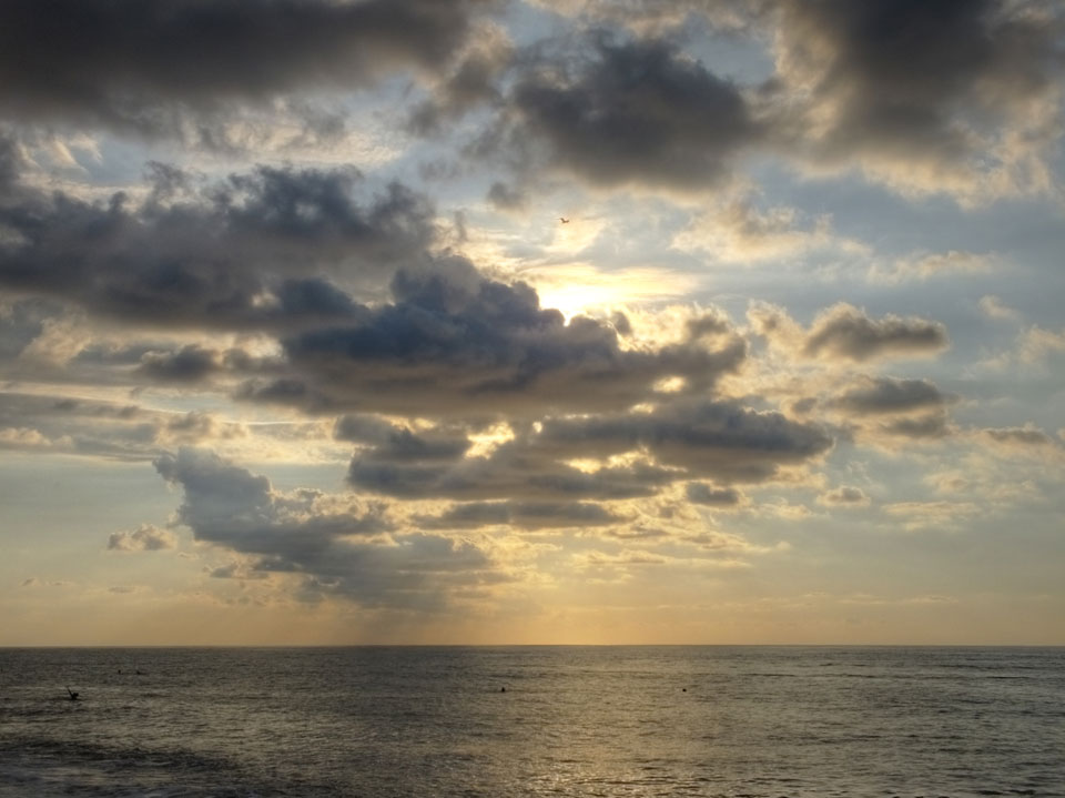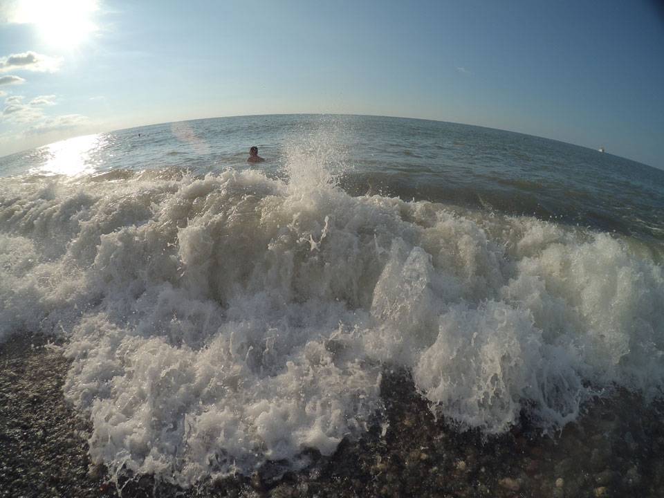 Nach etwas Video-Bearbeitung ging ich um 5 an den Strand. Die Steine sind hart und herumliegen entsprechend unbequem. Ich hüpfte zwei Mal in die Wellen und wartete bis zum Sonnenuntergang. Alles nett hier. Einige alte Frauen betteln, viele wandernde Händler verkaufen von Bananen bis Bier und Nüsse einiges. Schwimmschuhe wären hier was, ha!