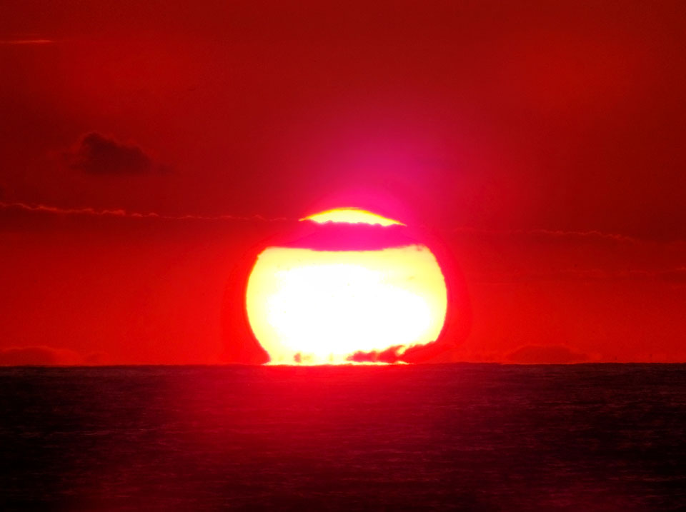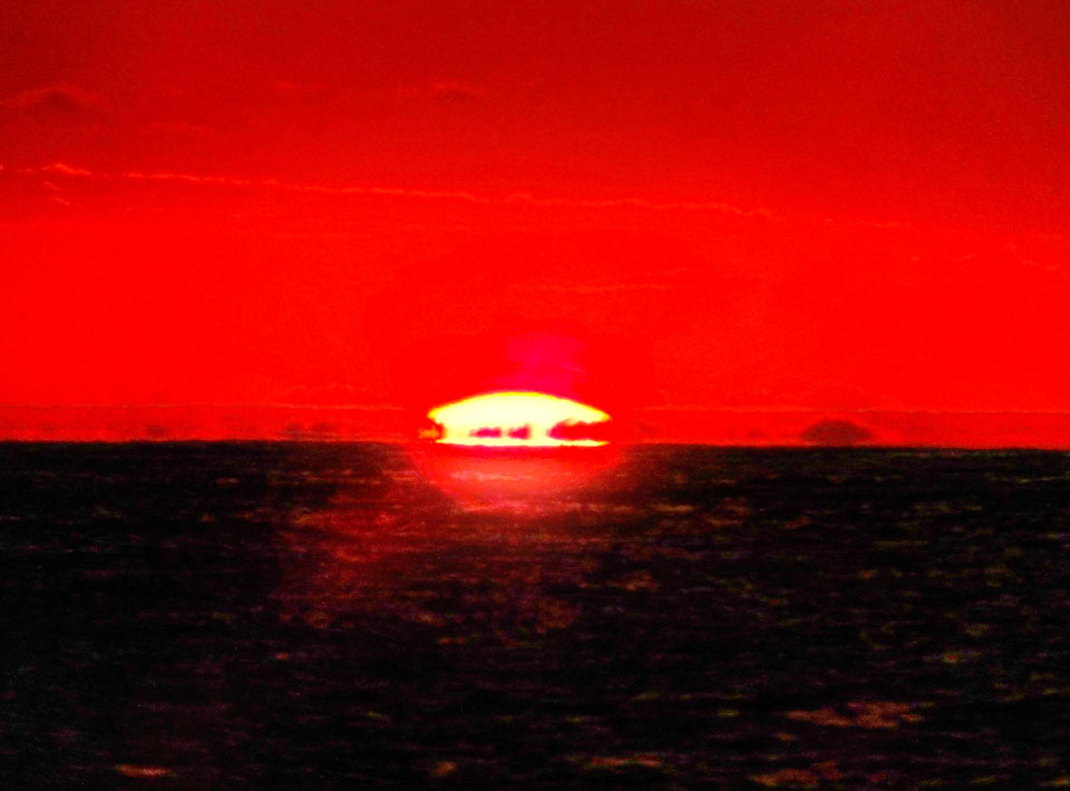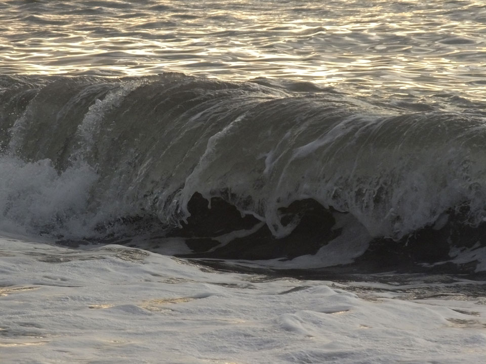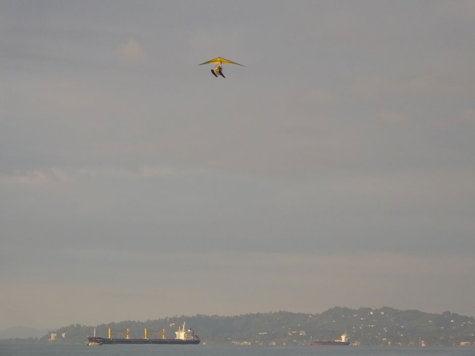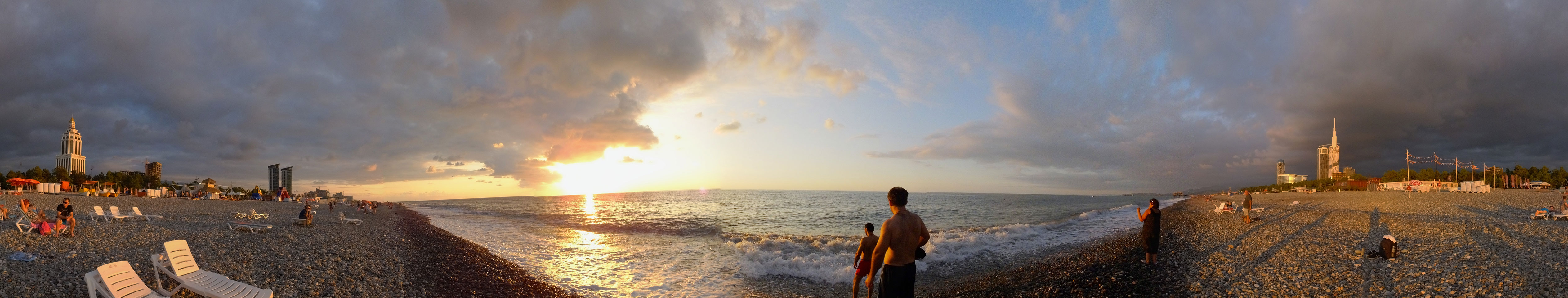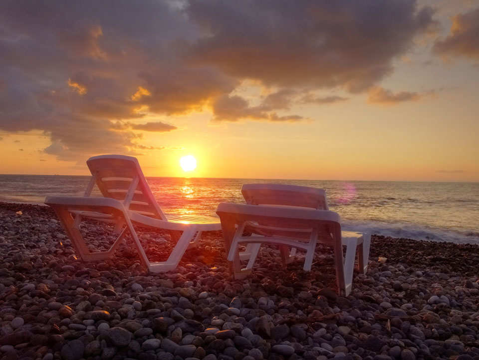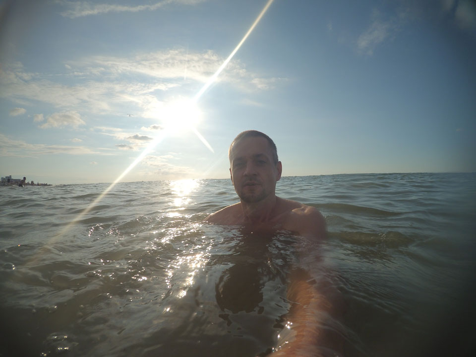 Nach etwas Video-Bearbeitung ging ich um 5 an den Strand. Die Steine sind hart und herumliegen entsprechend unbequem. Ich hüpfte zwei Mal in die Wellen und wartete bis zum Sonnenuntergang. Alles nett hier. Einige alte Frauen betteln, viele wandernde Händler verkaufen von Bananen bis Bier und Nüsse einiges. Schwimmschuhe wären hier was, ha!