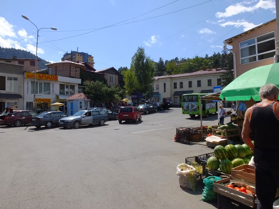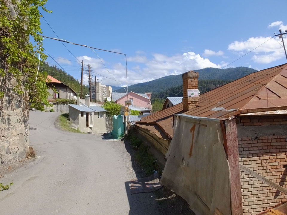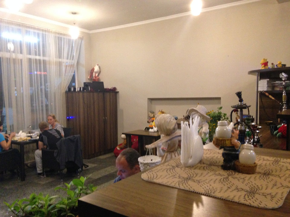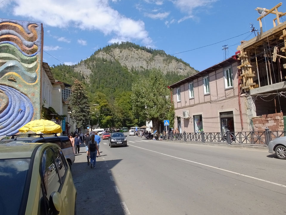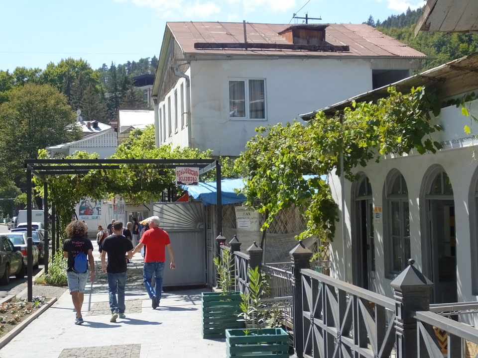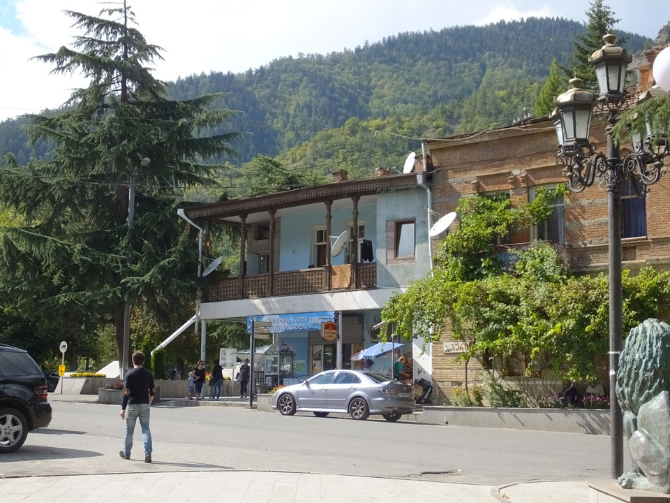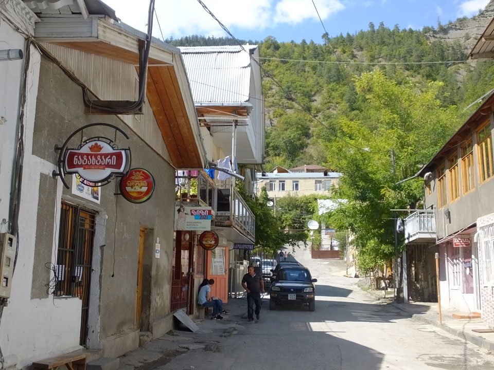 Um 9 runter was essen. Das „Bergi“ Restaurant ist gleich den Weg runter an der Ecke. War ein gutes Abendessen mit musikalischer Untermalung aus der zweiten Etage. Einige Russen hier, wohl eines der beliebtesten Orte. Einer fing an Pfeife zu rauchen, haha – „Stalin“ lachte der Kellner. Seine Freundin eher „Sherlock Holmes“. Stalin wurde in der Nähe von hier, in Gori geboren – liegt auch dem Weg nach Tbilisi.