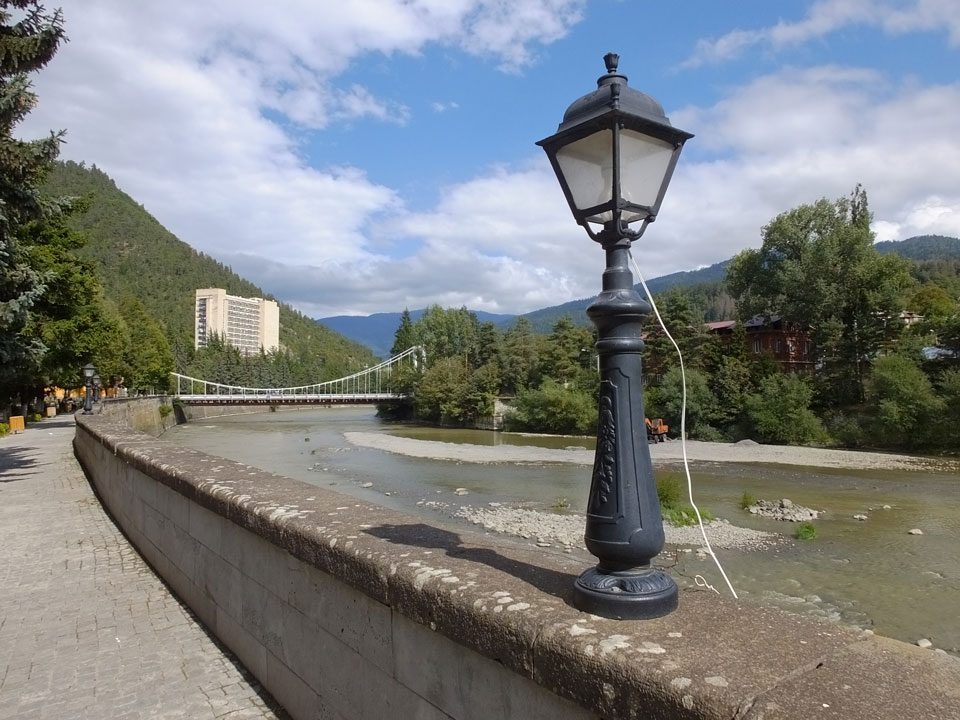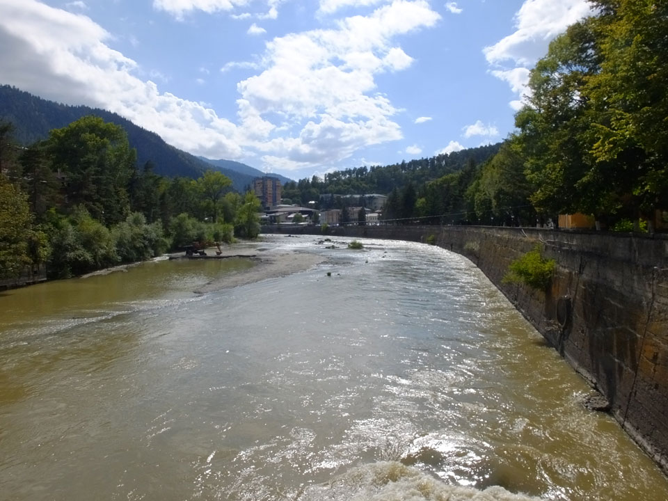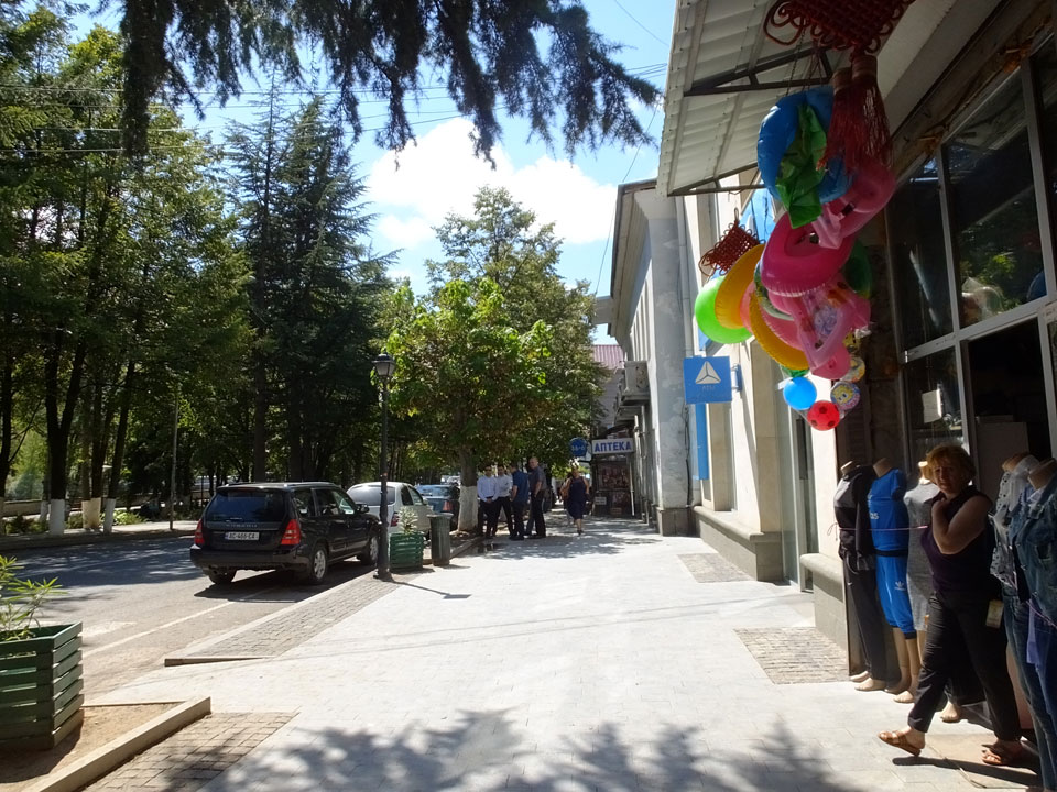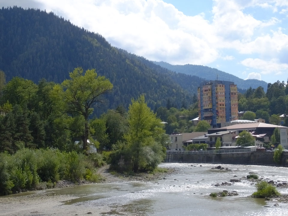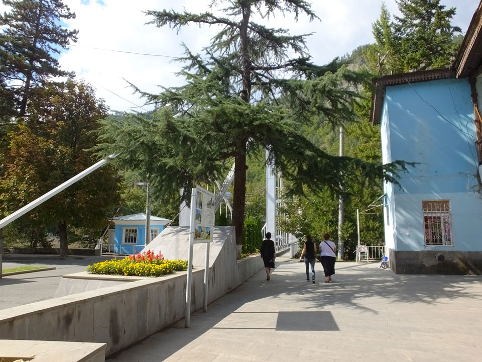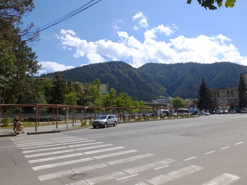 Um 9 runter was essen. Das „Bergi“ Restaurant ist gleich den Weg runter an der Ecke. War ein gutes Abendessen mit musikalischer Untermalung aus der zweiten Etage. Einige Russen hier, wohl eines der beliebtesten Orte. Einer fing an Pfeife zu rauchen, haha – „Stalin“ lachte der Kellner. Seine Freundin eher „Sherlock Holmes“. Stalin wurde in der Nähe von hier, in Gori geboren – liegt auch dem Weg nach Tbilisi.