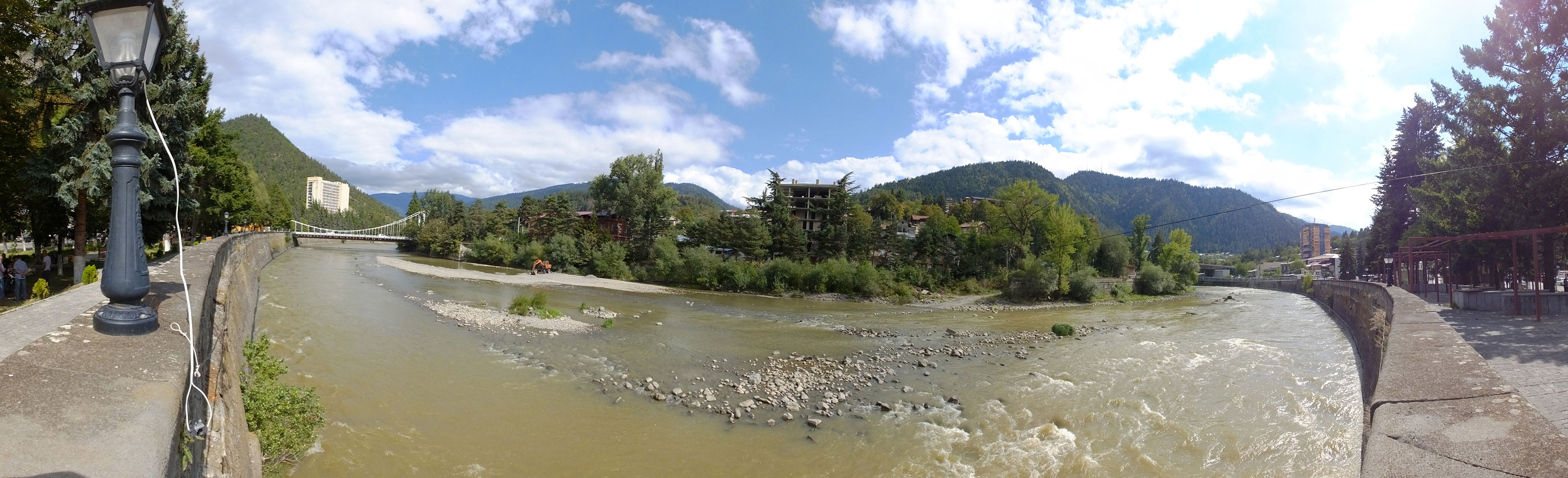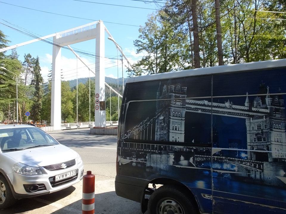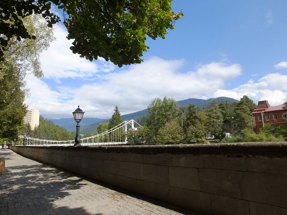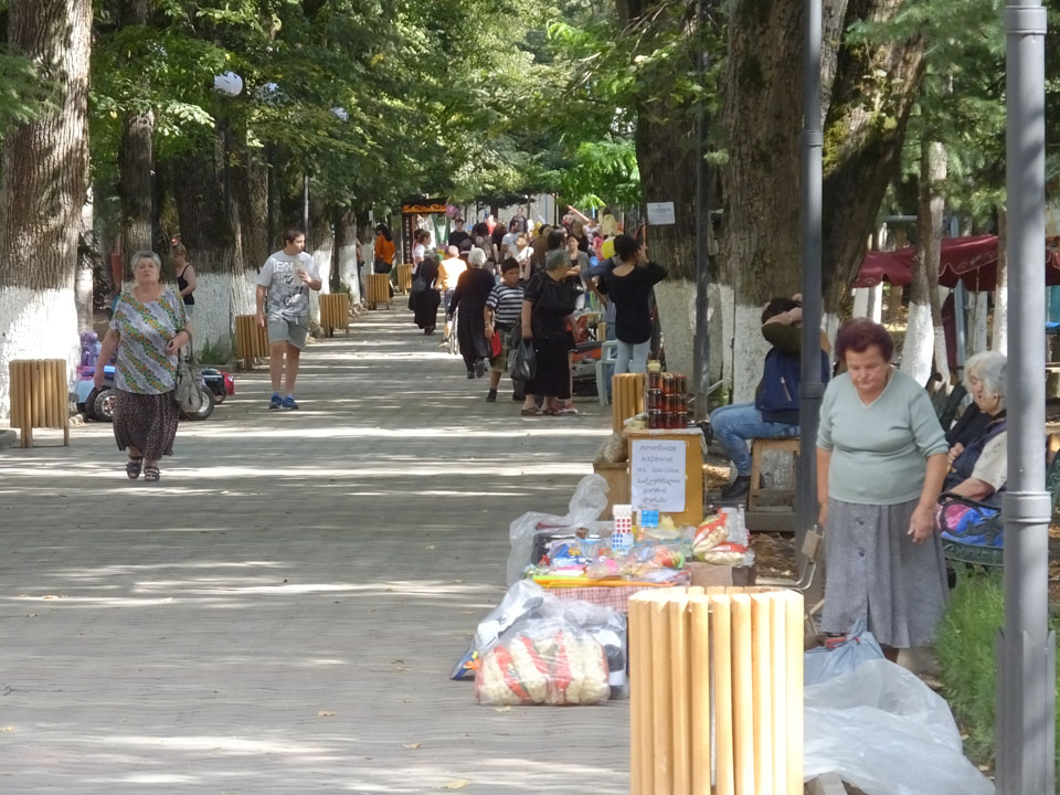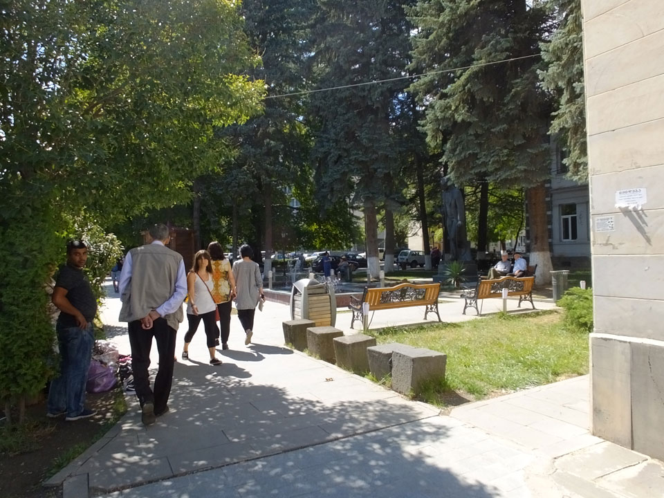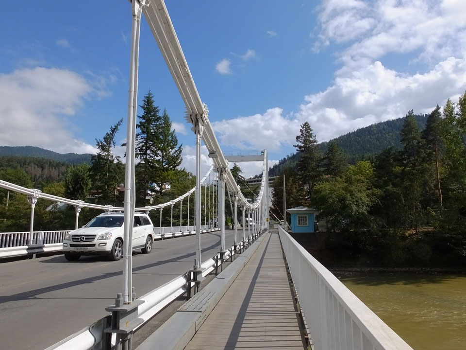 Um 9 runter was essen. Das „Bergi“ Restaurant ist gleich den Weg runter an der Ecke. War ein gutes Abendessen mit musikalischer Untermalung aus der zweiten Etage. Einige Russen hier, wohl eines der beliebtesten Orte. Einer fing an Pfeife zu rauchen, haha – „Stalin“ lachte der Kellner. Seine Freundin eher „Sherlock Holmes“. Stalin wurde in der Nähe von hier, in Gori geboren – liegt auch dem Weg nach Tbilisi.