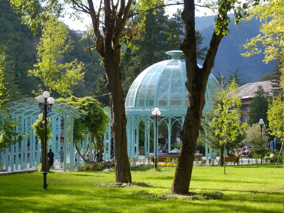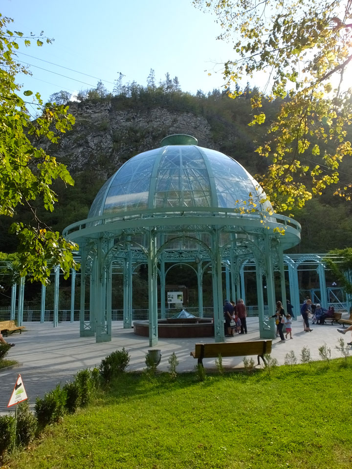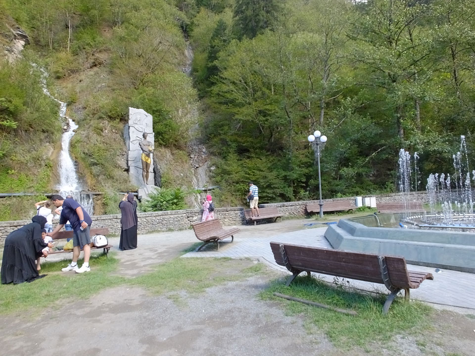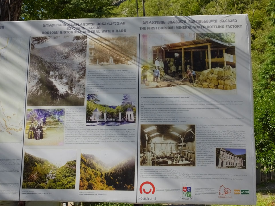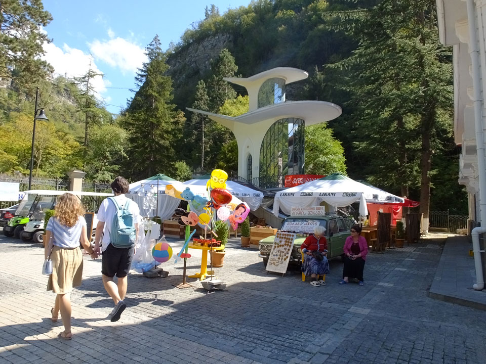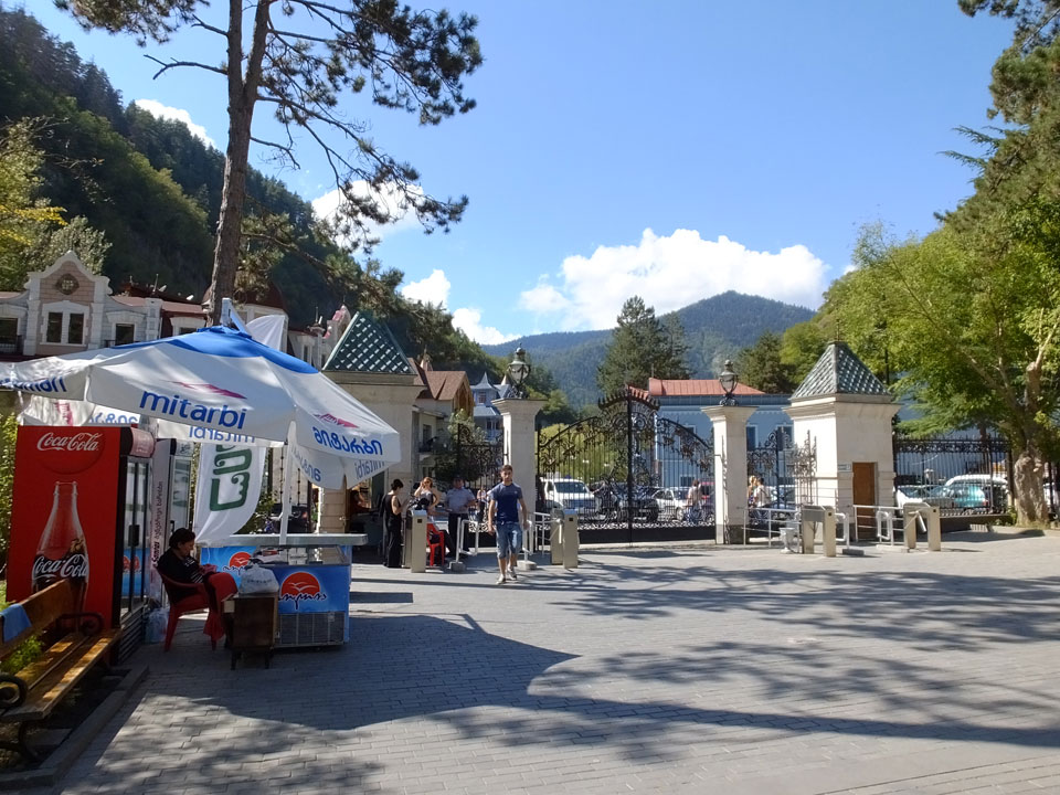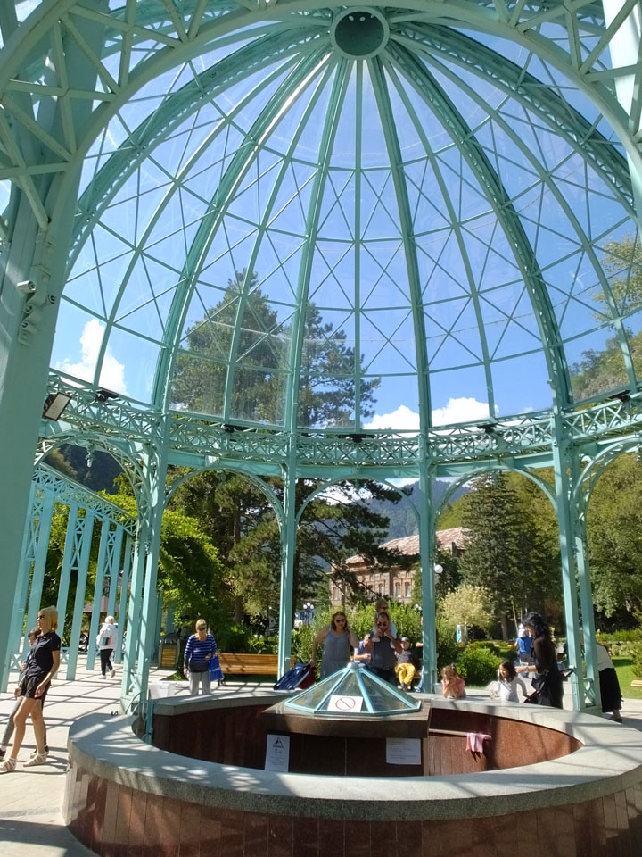 Das Wasser Borjomis ist weit bekannt. Hier konnte man es direkt von der Quelle trinken. Es kam lauwarm daher und schmeckte salzig und „gesund“. Auf der Straße wurden oft große leere Wasserkanister angeboten. An der zentralen Quelle wurde jedoch verboten, die da abzufüllen. Es blubberte auch nur wenig Wasser aus dem Hahn, den eine Angestellte dann bediente.