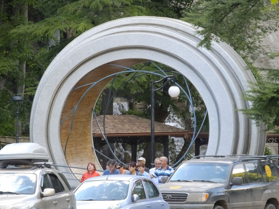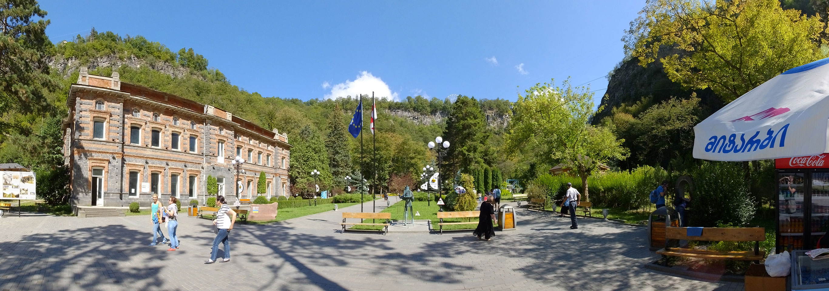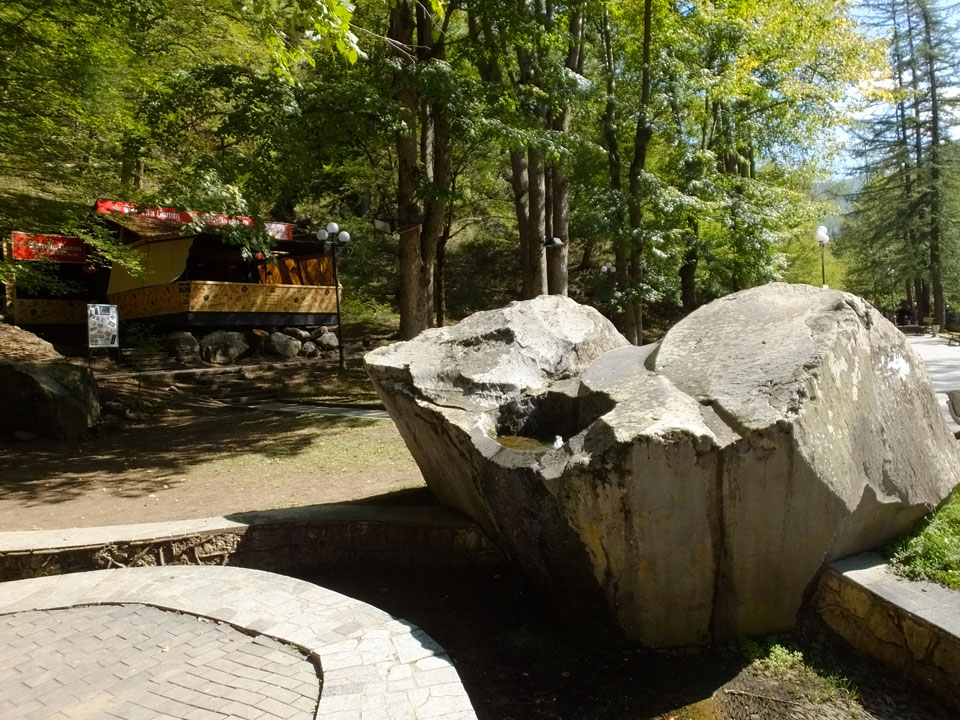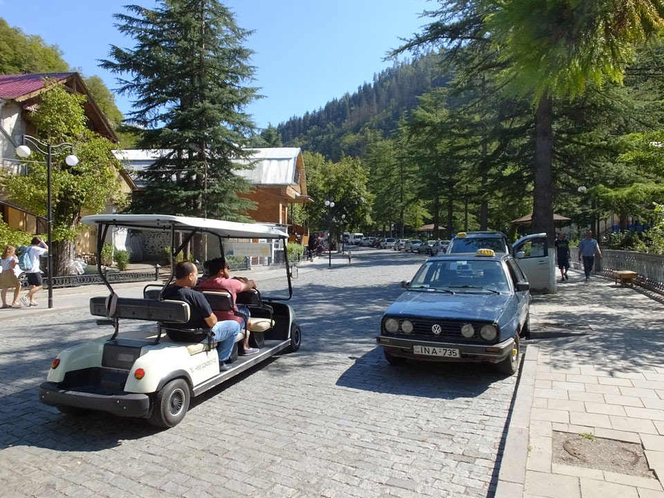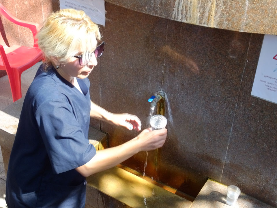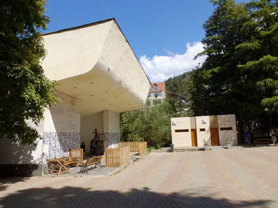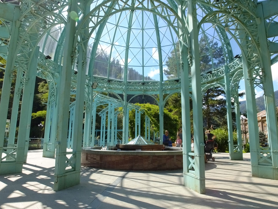 Das Wasser Borjomis ist weit bekannt. Hier konnte man es direkt von der Quelle trinken. Es kam lauwarm daher und schmeckte salzig und „gesund“. Auf der Straße wurden oft große leere Wasserkanister angeboten. An der zentralen Quelle wurde jedoch verboten, die da abzufüllen. Es blubberte auch nur wenig Wasser aus dem Hahn, den eine Angestellte dann bediente.