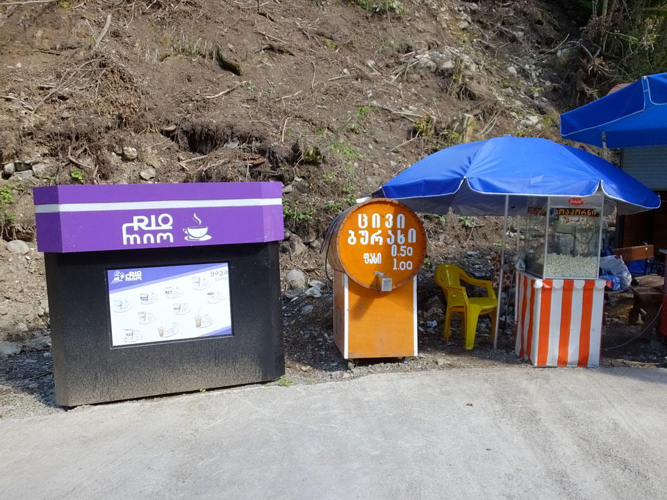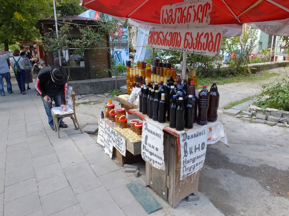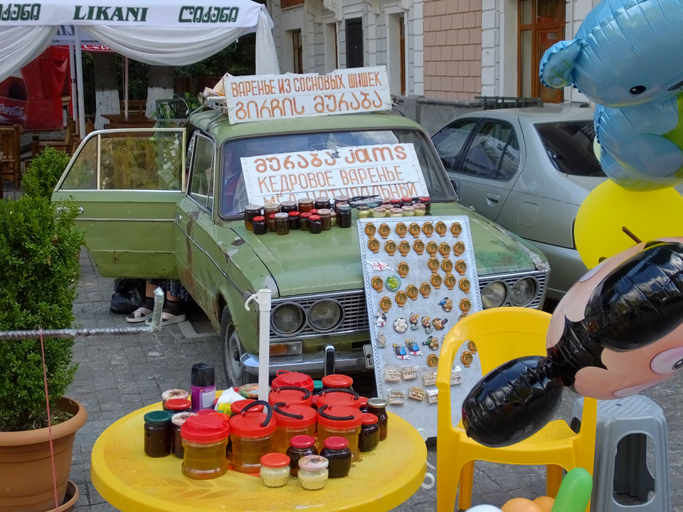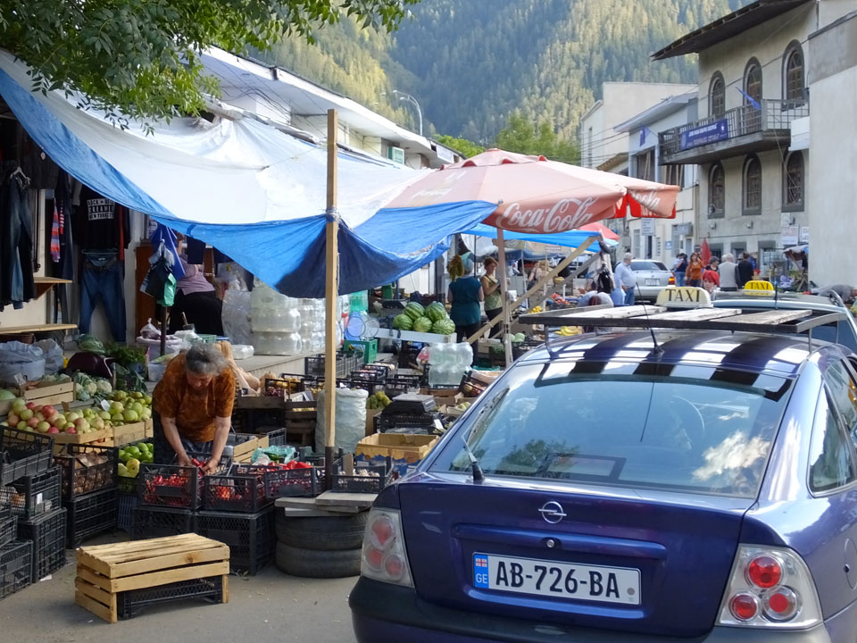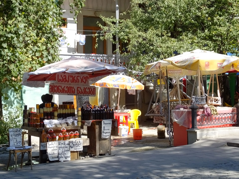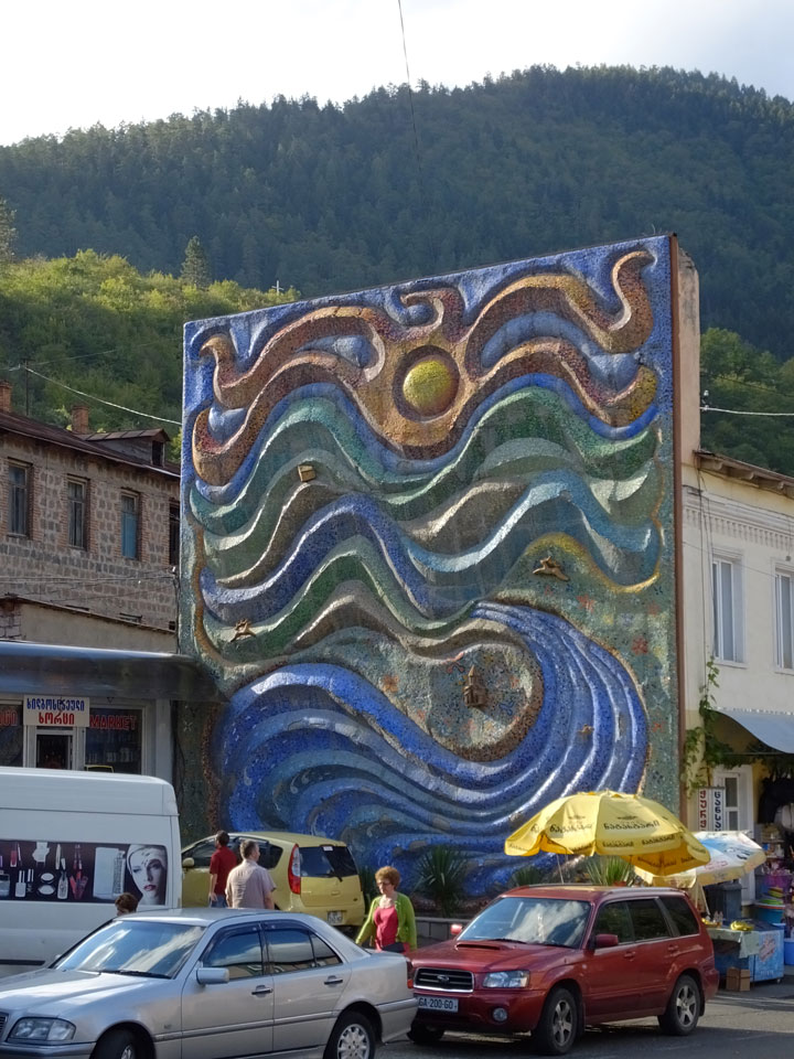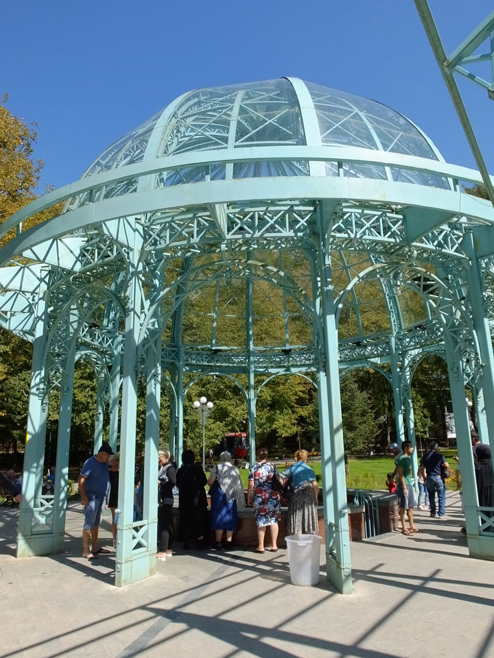 Das Wasser Borjomis ist weit bekannt. Hier konnte man es direkt von der Quelle trinken. Es kam lauwarm daher und schmeckte salzig und „gesund“. Auf der Straße wurden oft große leere Wasserkanister angeboten. An der zentralen Quelle wurde jedoch verboten, die da abzufüllen. Es blubberte auch nur wenig Wasser aus dem Hahn, den eine Angestellte dann bediente.
