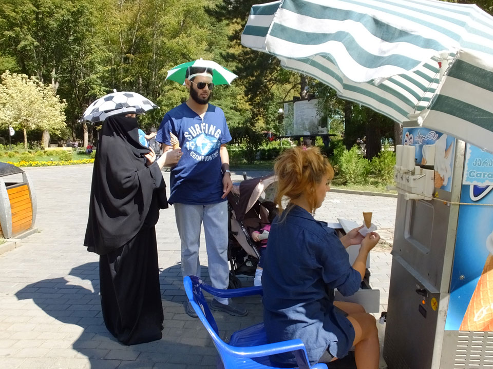 Dort war’s schön. Sauber und voller Touristen. Der arabische Raum war stark vertreten. Bei der Hitze mit Burka…