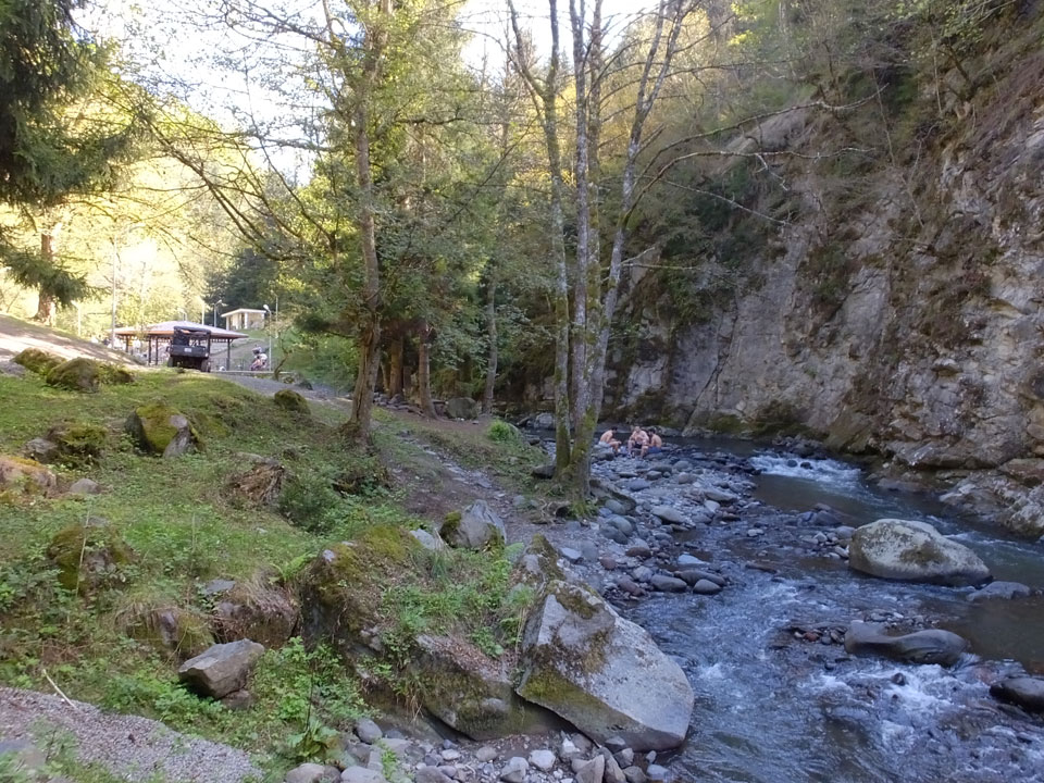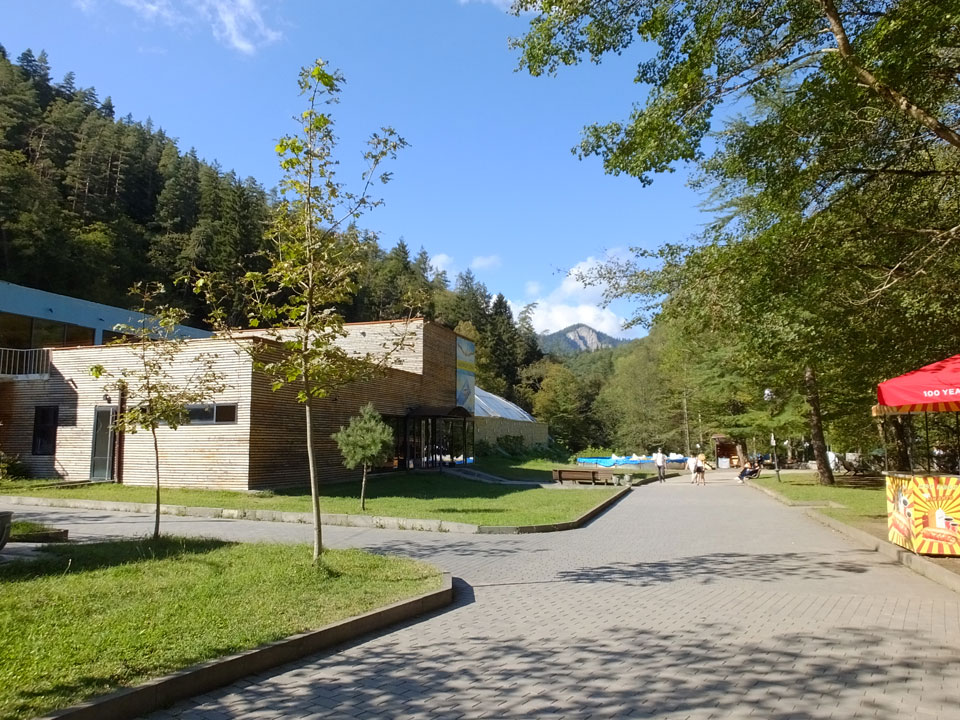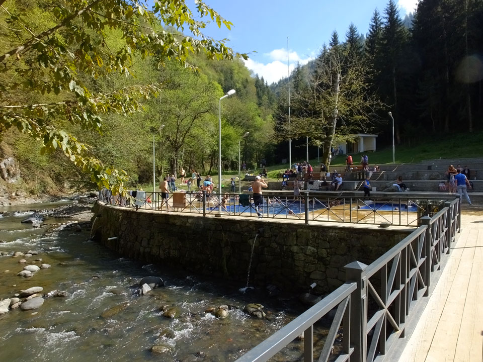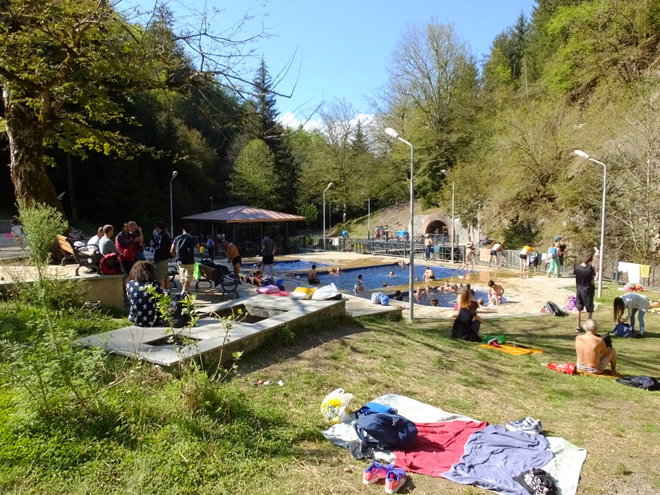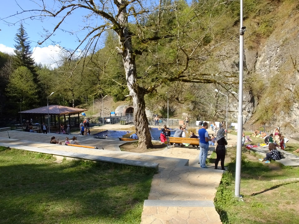 Weiter in den Wald. Von dort kamen auch Leute also ging ich am Bach entlang immer weiter. Ein paar Quads rasten aufd em Waldweg auf und ab. Man konnte die wohl mieten oder als Taxiservice nutzen. Dann sah ich ein Schild und kam an – zu den Zaren-Pools. Am Ende des Weges waren gut ausgebaute Termalbäder. Klein und fein. Leider hatte ich keine Badehose mit. Darüber ärgerte ich mich, hatte ich doch wage von den Bädern gelesen.
