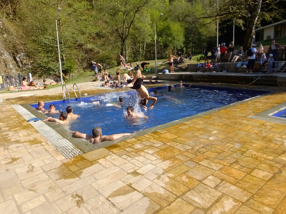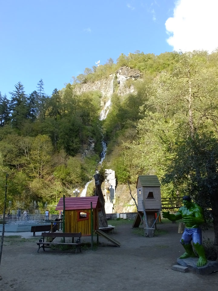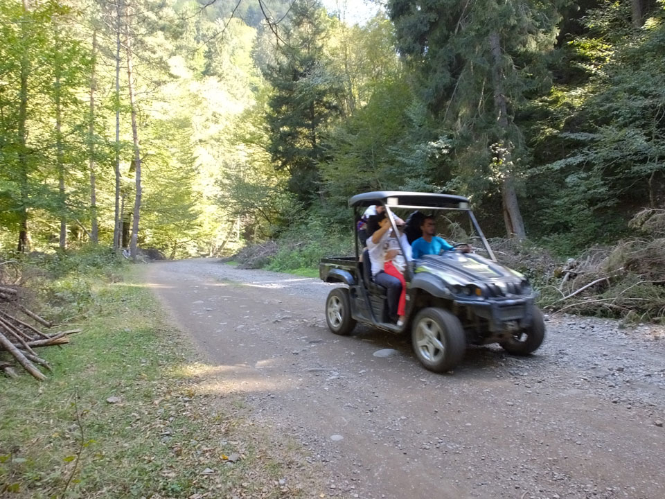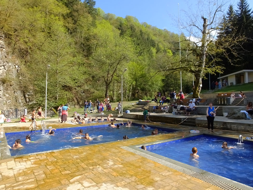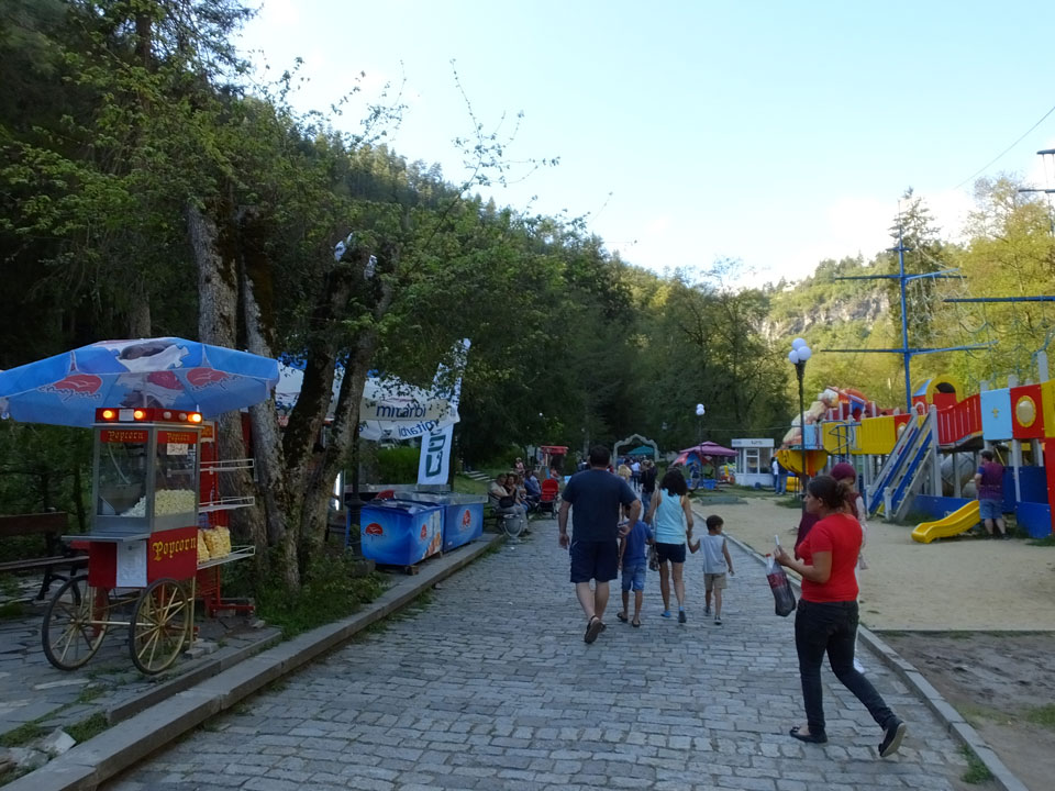 Weiter in den Wald. Von dort kamen auch Leute also ging ich am Bach entlang immer weiter. Ein paar Quads rasten aufd em Waldweg auf und ab. Man konnte die wohl mieten oder als Taxiservice nutzen. Dann sah ich ein Schild und kam an – zu den Zaren-Pools. Am Ende des Weges waren gut ausgebaute Termalbäder. Klein und fein. Leider hatte ich keine Badehose mit. Darüber ärgerte ich mich, hatte ich doch wage von den Bädern gelesen.